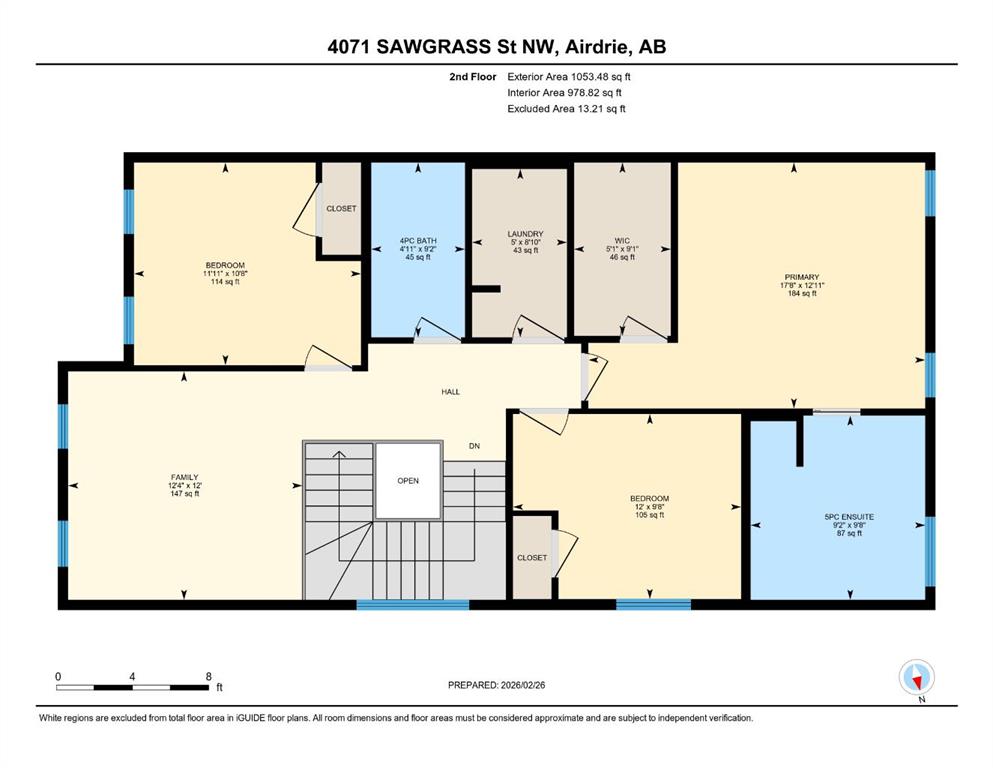 | 5pc Ensuite bath | 9`2" x 9`8" | Upper |