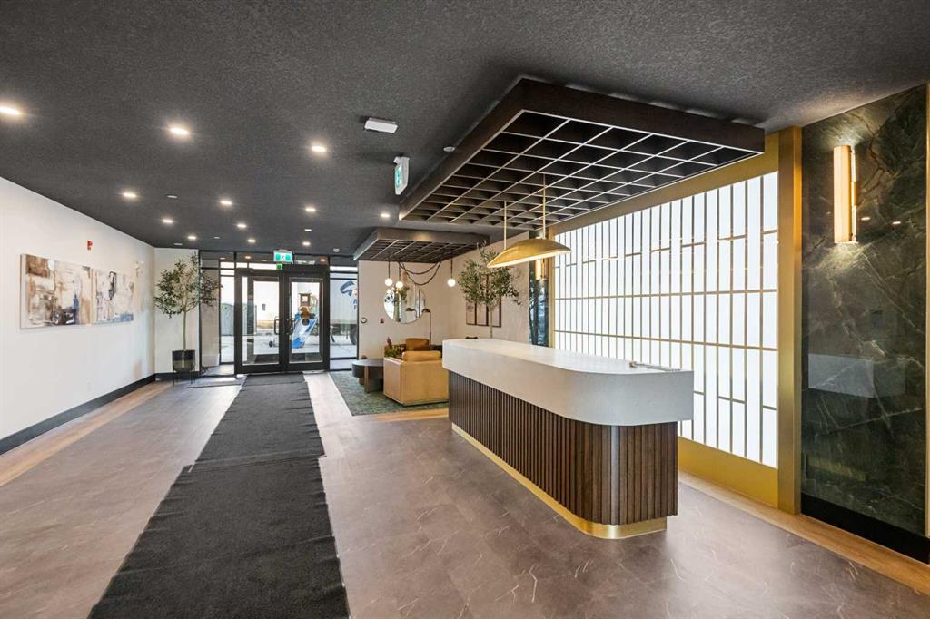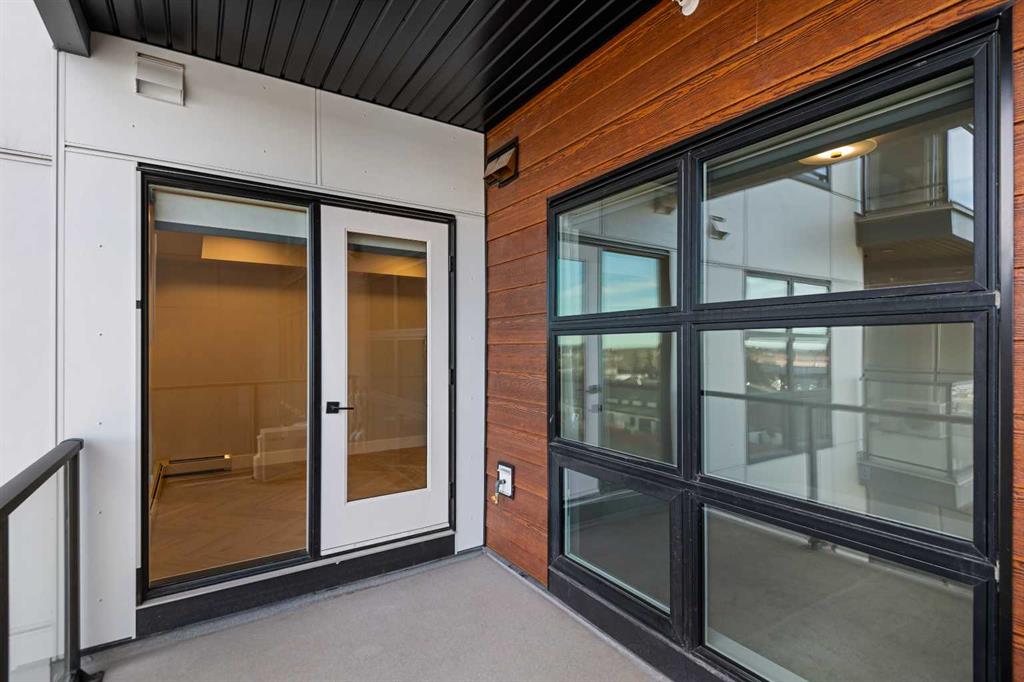 Welcome to the “Azzuro” floorplan by Rohit Homes Calgary, a thoughtfully designed 1-bedroom + den, 1-bathroom residence that blends timeless style with modern functionality. Located on the 4th floor of the highly sought-after Quesnay at Currie Barracks, this south-facing unit enjoys excellent natural light throughout the day and offers the added convenience of being situated near the elevator—ideal for everyday ease and accessibility. Finished in the elegant Neoclassical design palette, the Azzuro delivers a refined aesthetic with warm tones, clean lines, and elevated detailing. This smart layout features 9’ ceilings, quartz countertops with a waterfall edge, a coordinating quartz backsplash, full-height cabinetry, stainless steel appliances, designer lighting, and window coverings. The open-concept kitchen, dining, and living areas flow seamlessly together, creating a welcoming and efficient space for both relaxing and entertaining. The primary bedroom provides a comfortable retreat, while the versatile den is perfect for a home office, study, or additional storage—one of the most sought-after features of this floorplan. The spa-inspired bathroom includes fully tiled walls, polished finishes, and a tub/shower combination for a hotel-like feel. Step out onto your private south-facing balcony to enjoy sunshine and courtyard views. This pet-friendly and AIRBNB-friendly building includes titled heated underground parking and ample visitor parking. Ideally located just minutes from downtown Calgary, Mount Royal University, and the vibrant shops and restaurants of 17th Ave and Marda Loop, this home offers both convenience and lifestyle. The Azzuro is a popular and well-loved floorplan - Don’t miss your opportunity to own in one of Calgary’s most exciting inner-city communities.