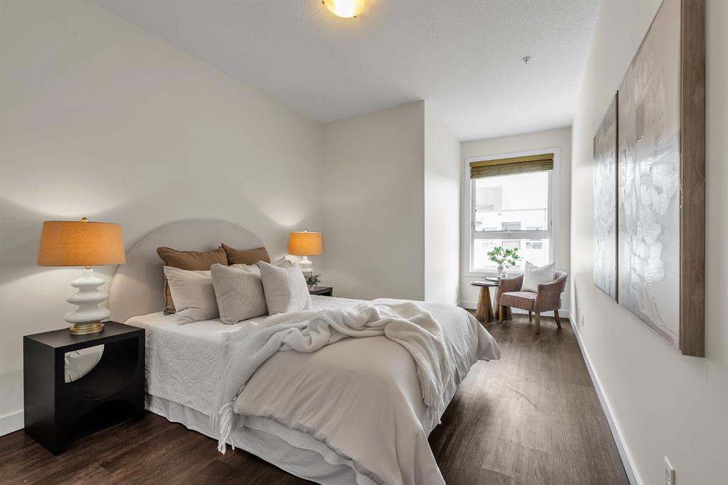 Welcome to Bella Lusso, home to one of the most desirable open-concept floorplans in the building. This freshly painted 2 bedroom, 2 full bathroom condo offers a bright, spacious layout overlooking a serene, landscaped courtyard. Meticulously maintained, the pride of ownership is evident throughout. Step inside to find newer luxury vinyl plank flooring, 9-foot ceilings, flat panel interior doors, and modern chrome hardware, all contributing to a clean, contemporary feel. The oversized primary bedroom provides a comfortable retreat, while the functional layout is ideal for both everyday living and entertaining. The kitchen is well-appointed with granite countertops, stainless steel appliances, and flows seamlessly into the living area, complete with a cozy gas fireplace. Additional features include a soaker tub, in-suite laundry, and a gas line for BBQ on the private covered patio. Enjoy peaceful courtyard views from your covered outdoor space, perfectly positioned in the heart of the complex. The underground heated parkade includes a car wash bay, bike storage, and secured storage for added convenience. This pet-friendly building allows up to two animals (14 kg weight restriction). Ideally located in the heart of Bridgeland, this home offers unmatched walkability. Situated just steps from parks, community tennis and pickleball courts, the area blends green space with vibrant urban living. Known for its rich history and evolving culinary scene, Bridgeland features some of Calgary’s best local restaurants, cafes, and boutiques, all within walking distance. The C-Train station is just 250 metres away, providing quick access to downtown, SAIT, and the University of Calgary. With easy access to Memorial Drive, Edmonton Trail, and Deerfoot Trail, commuting is effortless. The Bow River and Calgary’s extensive pathway system are just three blocks away, offering year-round recreation. Additional highlights include underground heated visitor parking and ample permitted street parking!