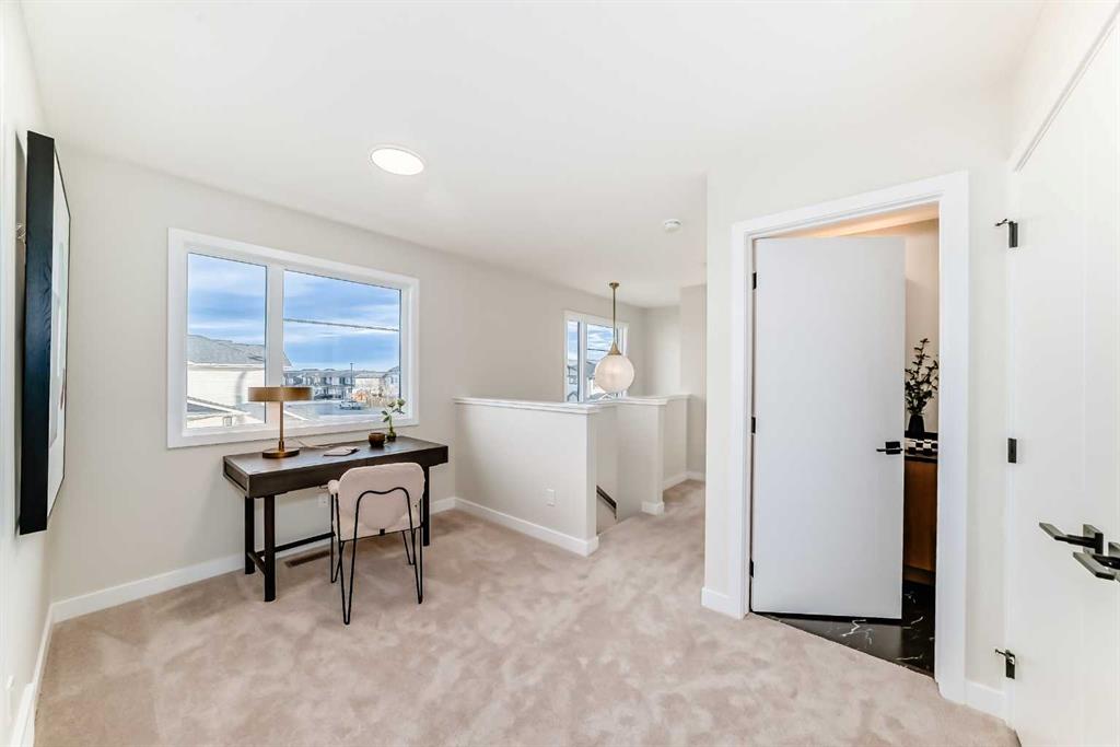 ** Open House at showhome - 120 Clydesdale Ave, Cochrane - November 26th 4-6pm, November 27th 1-4pm, November 29th 12-3pm, November 30th 12-4pm and December 2nd 2-5pm ** Welcome to this beautifully crafted semi-detached Talo model by Rohit Homes, situated in the vibrant and rapidly growing community of Heartland in Cochrane. This home is an excellent fit for families, first-time buyers, or anyone looking to right-size without compromising on style or versatility. Offering 3 bedrooms, 2.5 bathrooms, and 1,520 sq. ft. of well-designed living space, this brand-new home features a bright, open-concept main floor with 9' ceilings and a seamless connection between the kitchen, dining, and living areas—ideal for both daily living and entertaining. The contemporary kitchen serves as the focal point, complete with quartz countertops, a central island, and modern cabinetry that blend practicality with sophisticated design. At the rear, a double detached parking pad provides convenient parking and extra storage while preserving the home’s inviting curb appeal. Upstairs, the spacious primary suite includes a private ensuite and generous closet space, complemented by two additional bedrooms and a full bathroom—ideal for kids, guests, or a home office. A convenient upper-floor laundry room adds to the everyday ease of living. Set in the dynamic community of Heartland, you'll enjoy quick access to parks, schools, scenic pathways, local amenities, and major routes—making commuting to Calgary or weekend escapes to the mountains a breeze. Don’t miss your chance to live in this stylish and functional duplex in one of Cochrane’s most desirable new neighborhoods—schedule your private showing today! Please