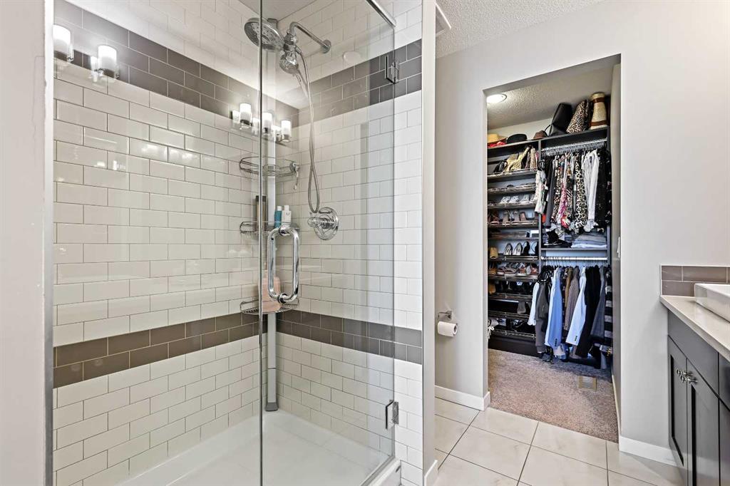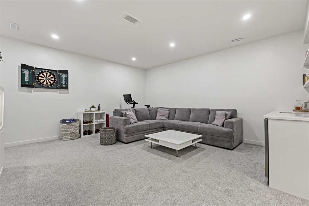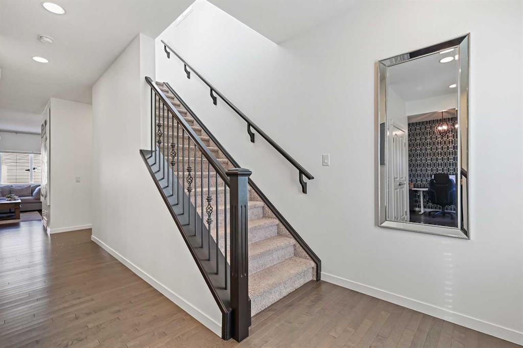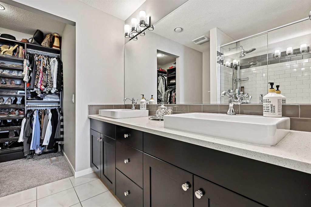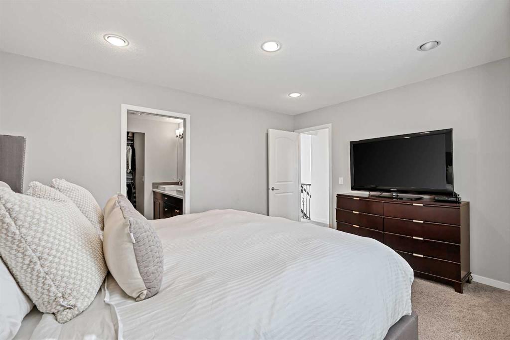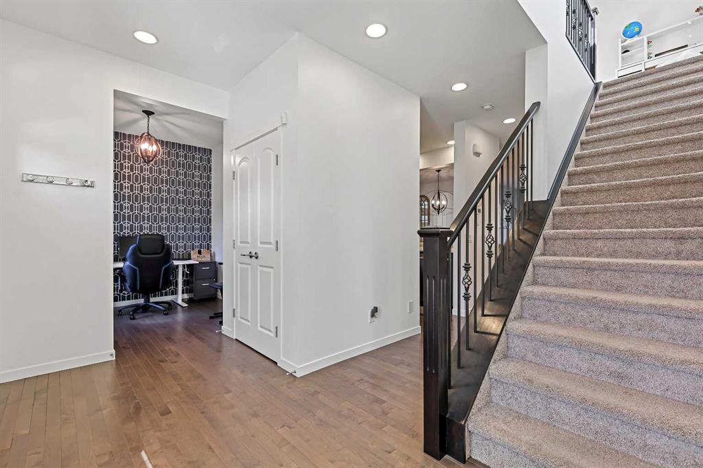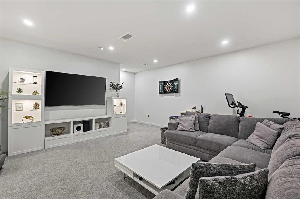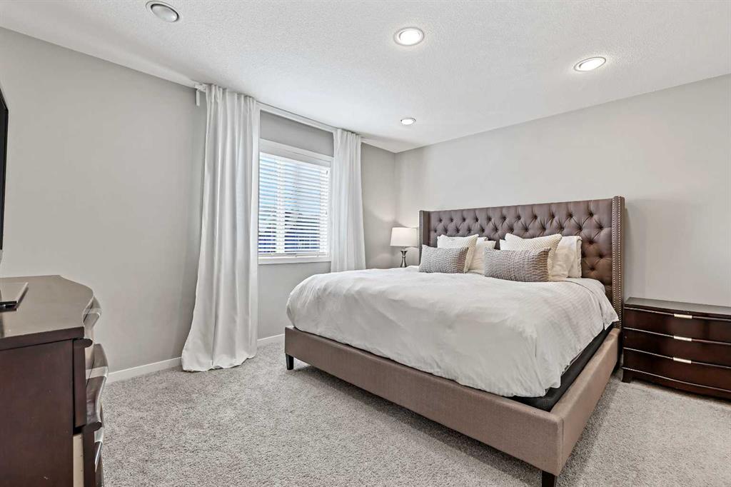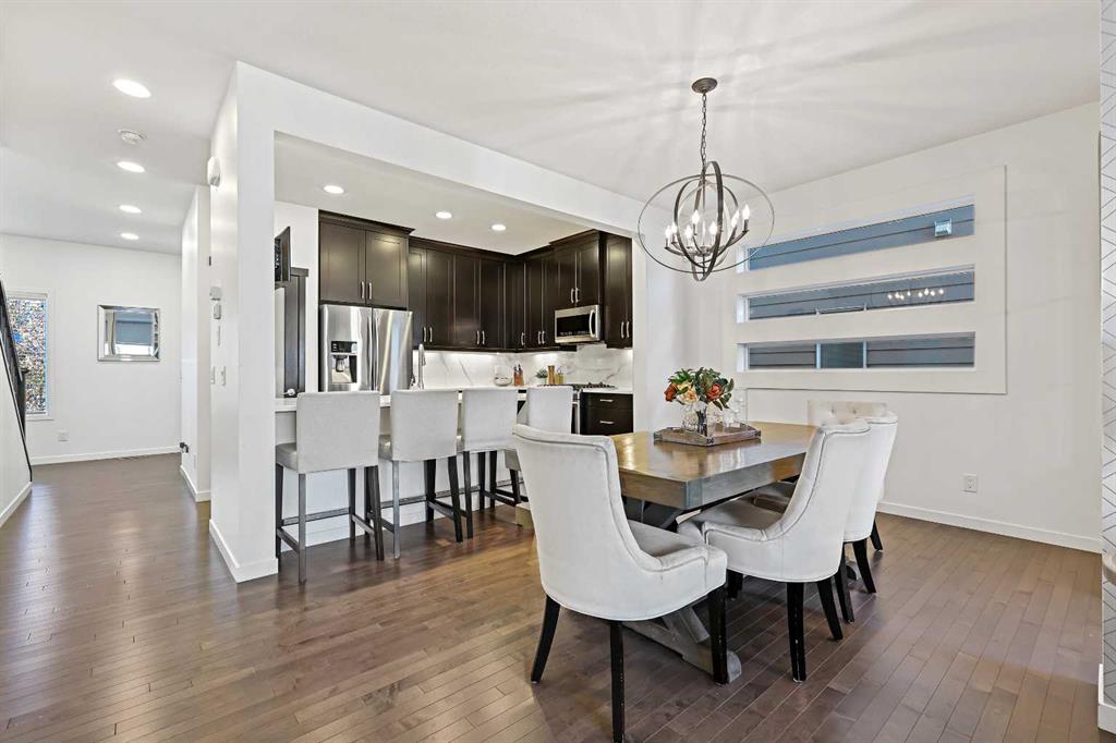 You’ll absolutely fall in love with this immaculately maintained and thoughtfully upgraded 2-storey home located on one of Mahogany’s most beloved family-friendly streets—where neighbours know your name, block parties are a tradition, and community truly thrives. From the moment you arrive, this home will have you at hello with its charming stucco and stone exterior, welcoming front porch, and undeniable curb appeal. Inside, discover nearly 2,500 sq. ft. of beautifully developed living space designed with both comfort and style in mind. The main floor flows effortlessly from the inviting front office or den into a bright open-concept living area. The chef’s kitchen impresses with quartz countertops, marble-inspired full tile backsplash, extended flush island, and ceiling-height cabinetry—complete with a mounted TV to catch the morning news or your favourite cooking show. Enjoy sleek stainless steel appliances, including a gas stove, and a spacious pantry for all your culinary essentials. The adjoining dining area easily accommodates family gatherings, while the cozy living room centers around a beautiful gas fireplace framed by floating shelves, built-in storage, and a stylish mantle. Rich hardwood floors and tasteful feature walls add warmth and sophistication throughout. Upstairs, you’ll find three generous bedrooms, including a luxurious primary suite with a 5-piece ensuite featuring dual vanities, an oversized glass shower with floor-to-ceiling tile, and a custom walk-in closet with built-in organization. The upper floor also offers a bright laundry room with cabinetry and counter space, and another full bath with designer finishes. The fully finished lower level (completed in 2024) is an entertainer’s dream, featuring a modern wet bar with sink, bar fridge, and floating shelves, a spacious recreation area for movie nights, and a fourth bedroom with walk-in closet—perfect for guests or teens. The full bath on this level is a showstopper, with a walk-in rain shower, LED mirror, and full tile surround with built-in niche. Step outside to your two-tiered, maintenance-free deck, offering both a dining and lounging area, ideal for summer evenings under the stars. The oversized double detached garage (nearly 10 ft ceiling height) provides ample storage and space for vehicles or hobbies. All of this is tucked within Mahogany’s established, mature pocket—away from new construction, yet steps from schools, the lake, walking paths, and local amenities. Enjoy tree-lined streets, friendly neighbours, and the serenity of Calgary’s most desirable four-season lake community. This is more than a home—it’s a lifestyle. Welcome to Mahogany, where memories are made by the lake.