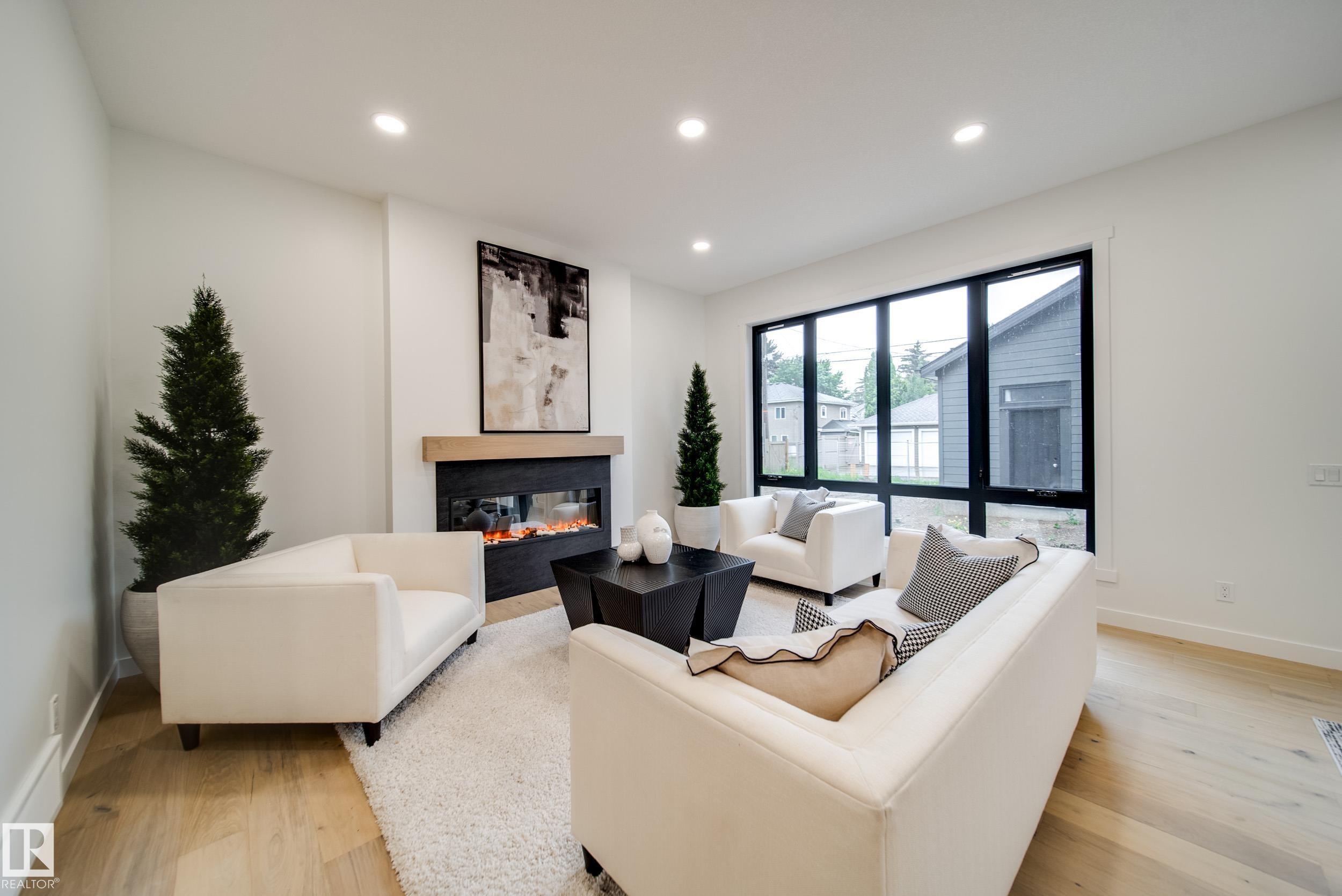 A rare opportunity built by Crimson Cove Homes, in one of Edmonton’s most prestigious areas just off Valleyview Drive! This nearly 2,500 sq ft 4 bed, 3.5 bath home sits on a 31.8x124’ lot just steps from iconic River Valley views. Inside, 10' main floor ceilings create a grand feel, w/ dbl doors to your office & a stylish 2pc bath featuring marbled Dekton counters. The chef-inspired kitchen boasts local "Redl" cabinetry, Frigidaire Professional appliances incl. induction cooktop, oversized fridge/freezer, & butler’s pantry w/Blanco sink. The dreamy primary suite offers vaulted ceilings, a "speakeasy" walk-in closet, & spa-like 5pc ensuite. Upstairs: 2 more large beds, 5pc bath & Electrolux laundry w/a sink. The finished basement adds a wet bar w/bev fridge + dishwasher, huge bedroom, & WIC. Extras: heated dbl garage, Hardie board, composite two-tiered deck, pot filler, triple-pane All Weather windows, Dekton/Silestone finishes, and a cozy fireplace. Landscaping is underway and is included in the price!