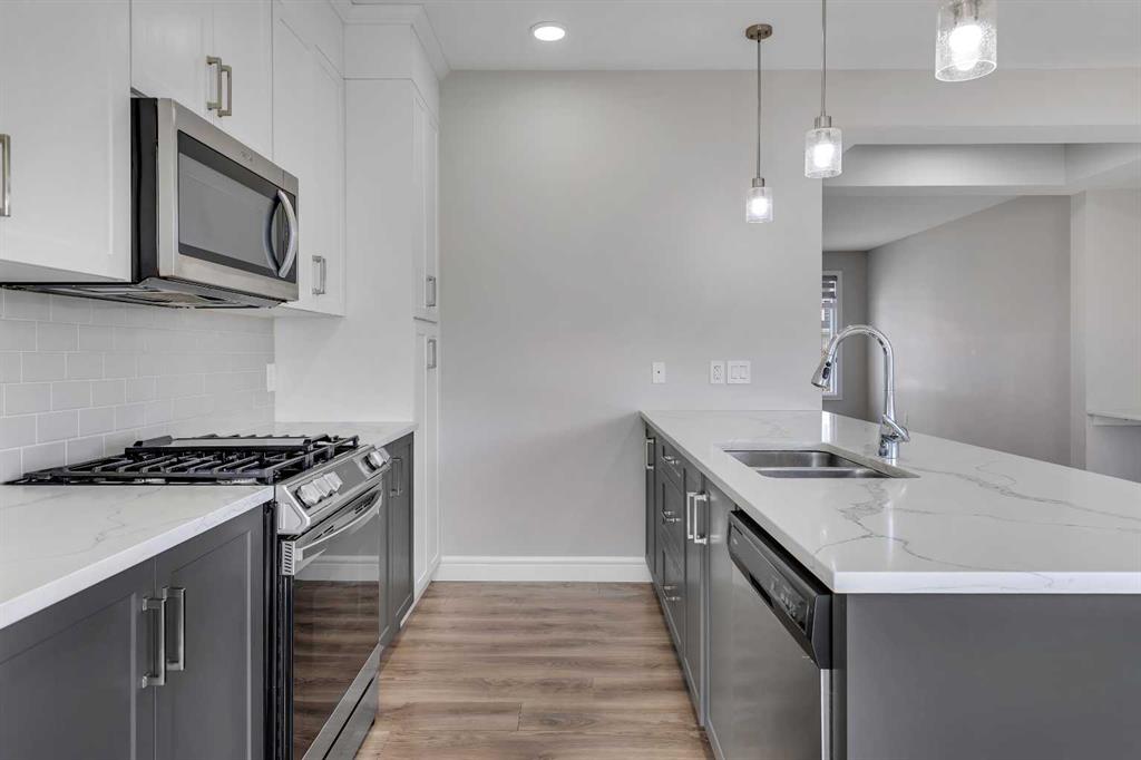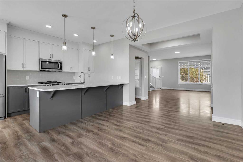 Welcome to 41 Sunrise Heights, Cochrane! This stunning family home is a must-see, offering a bright and cheerful atmosphere with thoughtfully chosen finishes throughout. From the moment you walk in, you’ll feel the warmth and comfort this home provides. At the heart of the home is the stylish kitchen, featuring quartz countertops, tall white upper cabinets paired with modern grey lowers, and a large flat island that blends beautifully into the overall design. The kitchen opens to a spacious dining room and a cozy breakfast nook—perfect for everyday family meals or entertaining guests. It’s the ideal gathering space, whether for quick weekday breakfasts or relaxed dinners with loved ones. The main floor is designed with family living in mind. A generous living room provides the perfect place to unwind, while the dining area includes a built-in desk—an ideal spot for kids to finish homework or for a convenient home office setup. Upstairs, you’ll find three well-appointed bedrooms. The primary suite is a true retreat, complete with a private ensuite that includes quartz counters, double sinks, a luxurious soaker tub, and a separate shower. The additional bedrooms are generously sized, making them perfect for children, guests, or flexible use such as a playroom or study. Step outside to discover a backyard that’s ready to be enjoyed. An oversized double detached garage offers secure parking, plenty of storage, and extra space for hobbies or a workshop. The outdoor area provides lots of room for kids to play, gardening, or hosting summer barbecues. Located just a few blocks from parks, walking paths, and biking trails, this home is ideally situated for families who love both comfort and an active lifestyle.