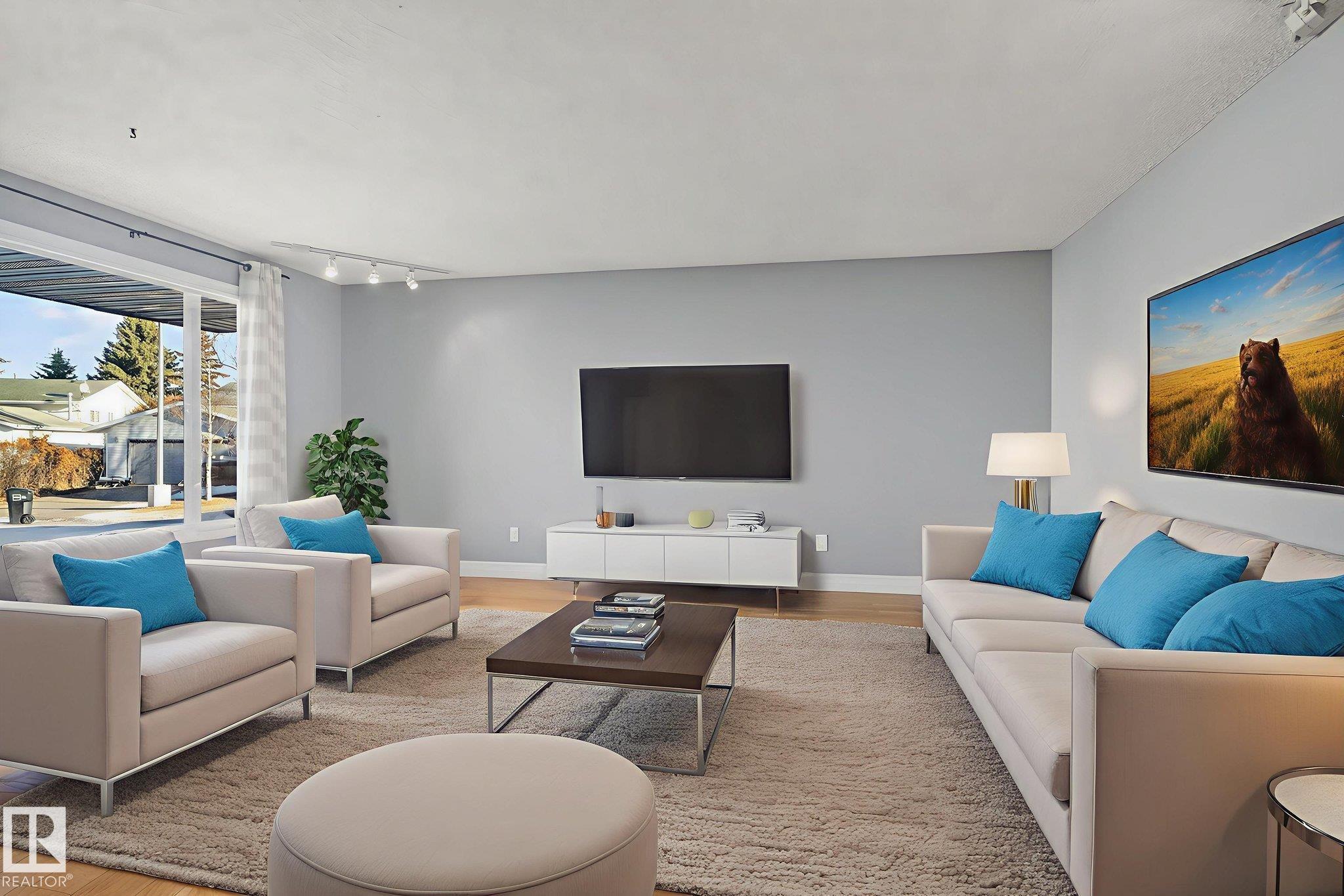 Welcome to this beautifully updated 4-level split tucked away on a quiet CUL-DE-SAC in Bisset! With the perfect blend of comfort, space, and convenience - this move-in ready home offers 4 total Bedrooms + 1 Den. Also on the main floor, is a warm and inviting living area, a bright dining room, and a functional kitchen designed for everyday ease. Fresh paint throughout and new LVP flooring in the Basement make the home feel modern, clean, and welcoming from the moment you step inside. The finished lower levels provide flexible space with a family room, 1 extra Bedroom and 1 Den for your home office, play area, or guest retreat. Sitting on a huge pie-shaped lot, the private backyard offers endless possibilities, complemented by an oversized double garage for vehicles, storage, or hobbies. Enjoy exceptional walkability, just steps from Grocery stores,Temples, Gurdwara, Schools, Parks, and Local Amenities. A rare opportunity in Mill Woods to enjoy space, comfort, and community living all in one inviting home!