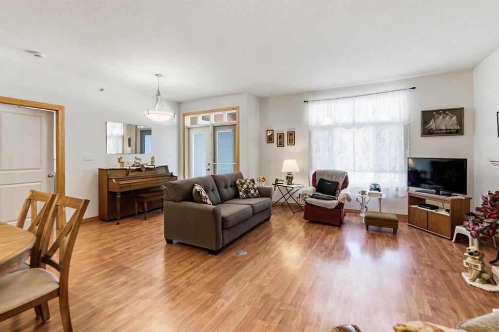 Simplify Your Life in Style – Luxury Adult Living in Red Deer! Welcome to one of the most luxurious/ Elite condo residences in Red Deer, offering the ultimate lock-and-leave lifestyle for downsizers, professionals and snowbirds seeking freedom without compromise. Located on the 4th floor, this beautifully appointed 2-bedroom, 2-bathroom condo delivers upscale comfort, security and stunning north-west views. Step inside and experience a bright, open-concept floor plan designed for effortless living and entertaining. The spacious living and dining areas flow seamlessly into a fantastic kitchen featuring a functional island, sleek appliances, large walk in pantry and a built-in display that adds both charm and practicality. Whether hosting friends or enjoying a quiet evening at home, this layout offers the perfect balance of style and function. The thoughtful design includes two generously sized bedrooms. The private Primary Suite features a large walk-in closet and a luxurious 4-piece ensuite, creating a peaceful retreat at the end of the day. The second bedroom is ideal for guests, a home office, or hobby space, conveniently located near the second 4-piece bathroom. In-unit laundry/storage adds everyday convenience. Step outside onto your north west facing balcony cool in the hot summer days - generously sized and finished with clear glass panels to preserve your beautiful views while allowing natural light to pour in. It’s the perfect place for morning coffee or evening relaxation. This secure, adult-only building offers exceptional amenities including:• Elevator access• Fitness centre (gym)• Party room• Guest suite for visiting family and friends• Entertaining nooks• Beautiful courtyard• Secure entry and mail area• Visitor parking at the front Enjoy absolute peace of mind with titled underground parking and a separate storage room - valued at approximately $11,000 - providing additional space for seasonal items and added long-term value. Travel often and worry never, knowing your vehicle and belongings are safe and protected. Comprehensive condo fees simplify your budgeting by covering heat, water, sewer, garbage, professional management and all exterior maintenance. No more snow shoveling or lawn care - just effortless upscale living. Located in North Red Deer, you’re just minutes from shopping, medical services, banking and everyday essentials, making this an incredibly convenient and desirable location. As an added bonus, the seller is willing to include the piano and select pieces of furniture if the buyer wishes - making this move-in ready opportunity even more attractive. If you’re looking to downsize without sacrificing luxury, security, or lifestyle, this 4th-floor condo with titled underground parking, 2 bedrooms, 2 bathrooms and premium amenities is truly a rare find. $5000 was deducted of the price for flooring. Effortless. Secure. Upscale.Welcome home.