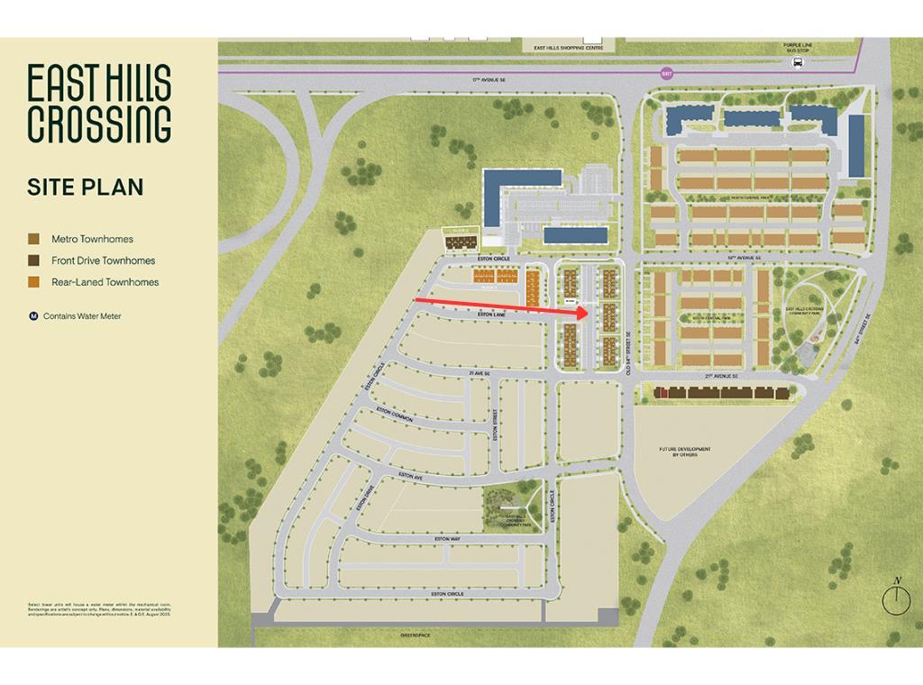 NEW BUILD | LOW CONDO FEES | 2 BED / 1.5 BATH / 1000 SQ FT TOTAL LIVING SPACE | TITLED PARKING STALL | EST. Q1 2027 POSSESSION – Welcome to the Link model at Metro Townhomes by Minto Communities, an award-winning Canadian builder with over 70 years of experience, located in East Hills Crossing, one of southeast Calgary’s fastest-growing and most convenient communities. These thoughtfully designed stacked townhomes offer modern finishes, functional layouts, and long-term value in a location that truly stands out. This lower-level unit features a smart and efficient floor plan designed for everyday comfort. The main level welcomes you with a spacious foyer that flows into a functional kitchen complete with stainless steel appliances, a central island, and ample storage space. Just off the kitchen is a massive living room, perfect for relaxing or entertaining. A convenient half bath is also located on this level, with the option to upgrade to a full 3-piece bathroom with a shower for added flexibility. Downstairs, you’ll find two well-sized bedrooms, a full bathroom, laundry, and plenty of storage space, creating a private and practical lower level ideal for homeowners or investors alike. The home includes a titled parking stall and low condo fees, adding to the overall value and affordability. Ideally situated directly across from East Hills Crossing Shopping Centre and Costco, this location offers unmatched convenience with shopping, dining, and services just steps away. Public transit is nearby, providing a quick and easy commute to downtown Calgary in minutes. East Hills is a vibrant, well-connected southeast community known for its thoughtful planning, green spaces, pathways, and easy access to major roadways and 17 Ave SE. Combining modern design, a functional floor plan, and an unbeatable location, this is an excellent opportunity to secure a brand-new home in East Hills with estimated completion in Q1 2027. Don’t miss your chance to be part of this exciting community! Book your visit at the presentation centre today for more details! *Photos are representative*