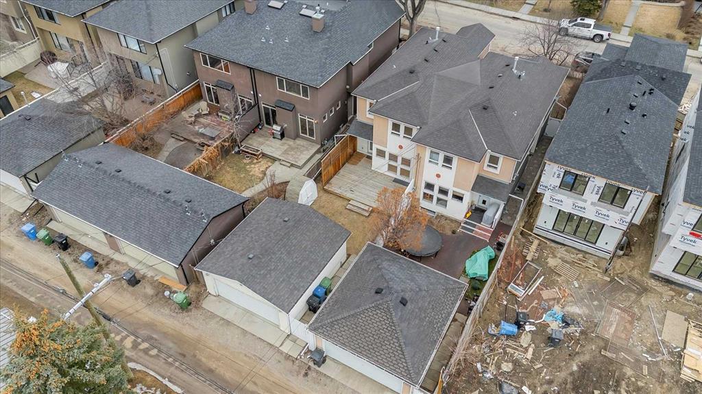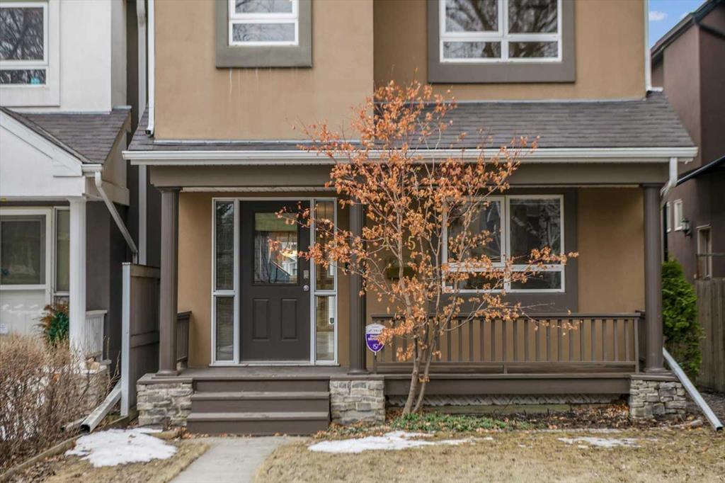 Tucked on one of Mount Pleasant's most signature streets, where a magnificent canopy of mature trees arches overhead and a warm sense of community spirit fills the air, this charming and thoughtfully designed semi-detached home blends warmth, character, and everyday practicality across three fully developed floors. With over 2,575 square feet of meticulously maintained and air-conditioned living space, this 2-storey home welcomes you through a gracious foyer with architectural nooks ideal for a bench or a handsome antique buffet. The main floor flows beautifully from a bright and private home office with French doors, perfect for focused work or creative pursuits, through a well-appointed powder room, and into a stunning kitchen with flat panel maple cabinetry, under-cabinet lighting, a large island, two generous pantries, Corian countertops, and premium stainless appliances including a KitchenAid gas range, new Bosch dishwasher, LG fridge, and hood fan. Main level hardwood floors were re-finished (2026). The open living and dining area is bathed in natural light through a wall of windows and anchored by a beautiful two-sided gas fireplace with a display shelf above, creating a warm and inviting space made for evenings with family and friends. A laundry and mud room with a third pantry leads seamlessly to the spectacular outdoor living space beyond. Upstairs, three bedrooms and two full baths offer wonderful comfort. The primary suite impresses with a walk-in closet, a second large closet, and a luxurious 5-piece ensuite with double sinks, a jetted tub, walk-in shower, and in-floor heating. A delightful library and sitting area overlook the tree-canopied street below, a lovely perch for morning coffee or an evening read. Carpets replaced (2026). The fully developed lower level adds two more bedrooms with walk-in closets, a 3-piece bath with walk-in shower, generous under-stair storage, and a flexible bonus room wired for home theatre and equally suited as a gym, hobby space, or office. Quality finishes include hardwood floors, plush new carpet, 4.5-inch baseboards, interiors freshly painted and colors influenced by an interior designer, 50-year Malarkey shingles (2011), and a high-end Telus security system with smartphone app. Six-inch insulated walls and an insulated ceiling keep utility costs impressively low year-round. Outside, a large deck with a privacy louvre wall and barbecue overhang overlooks a sunny, south-facing yard bursting with perennials, leading to an oversized double garage. The front verandah is your front-row seat to one of the finest streets in the community. This is the Mount Pleasant lifestyle at its best: walk to Confederation Park, the restaurants and cafes of Centre Street and 4th Street, the shops of 16th Avenue, and downtown Calgary in minutes. Great neighbours, street parties, and walkable, safe streets complete the extraordinary lifestyle that Mount Pleasant and this lovely home has to offer!