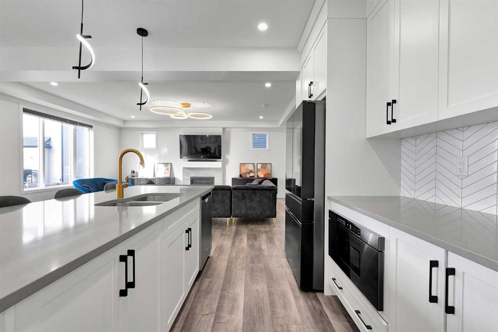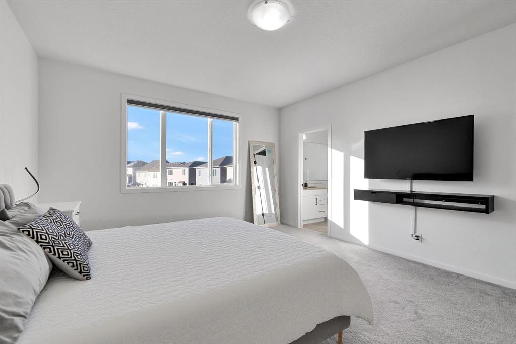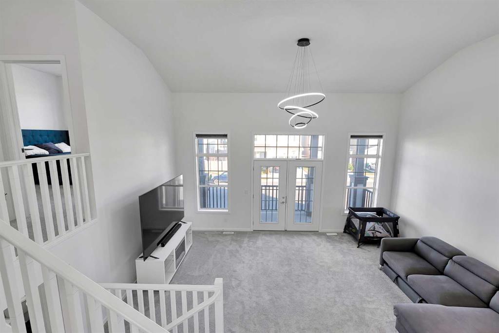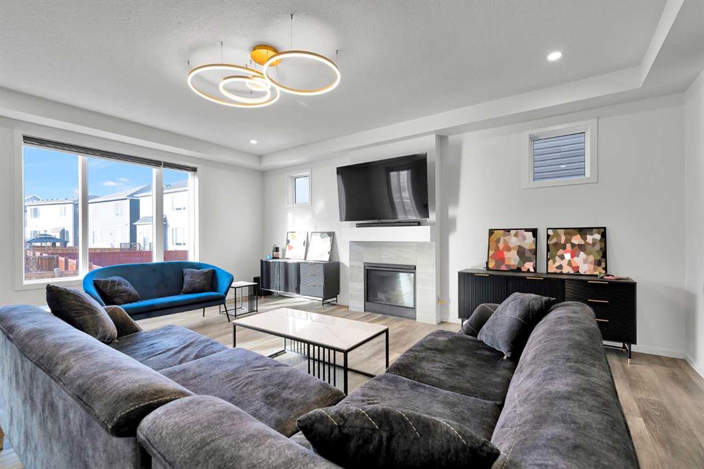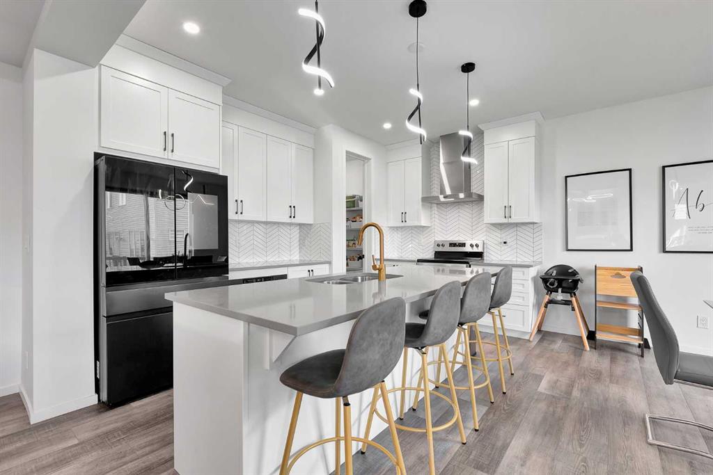 ***Open House Satuday 25 November 2pm to 4pm*** MODERN FAMILY HOME IN SOUGHT-AFTER SOUTHWINDS! BUILT IN 2021 | WEST-FACING BACKYARD | AIR-CONDITIONING | STEPS TO PARKS, SCHOOLS & SHOPPING Welcome to this MODERN DETACHED HOME offering 2,409 SQ.FT. of beautifully finished living space plus a 777 SQ.FT. unfinished basement, ready for your personal touch! Designed with today’s family in mind, this home combines style, comfort, and convenience in one of Airdrie’s most popular communities. Step inside and be greeted by a bright, open-concept main floor featuring 9FT CEILINGS and VINYL PLANK FLOORING. The stunning kitchen impresses with QUARTZ COUNTERTOPS, a HERRINGBONE TILE BACKSPLASH, BLACK STAINLESS STEEL SMART FRIDGE, WALK-IN PANTRY, and a large ISLAND WITH SEATING—perfect for casual dining. The spacious living room with TRAY CEILING centers around a TILED GAS FIREPLACE WITH A MODERN MANTEL, while the adjacent dining area features PATIO DOORS TO THE DECK -ideal for BBQs and A SUNNY WEST-FACING BACKYARD. Upstairs, the BONUS ROOM with 14FT VAULTED CEILINGS and FRENCH DOORS TO A PRIVATE BALCONY offers the perfect space for family movie nights or kids play area. The PRIMARY SUITE is a true retreat with a WALK-IN CLOSET and a SPA-INSPIRED ENSUITE featuring a SOAKER TUB, DOUBLE VANITY, and OVERSIZED SHOWER. Two additional spacious bedrooms, a full family bathroom, and a large linen closet complete the upper level. The UNFINISHED BASEMENT (insulated, with egress windows and bathroom rough-in) provides endless potential for future development. Additional highlights include CENTRAL AIR-CONDITIONING and an ATTACHED DOUBLE GARAGE. Located in the FAMILY-FRIENDLY COMMUNITY OF SOUTHWINDS, this home is within walking distance to PARKS, PATHWAYS, SHOPPING, AND TRANSIT. The PICKLEBALL COURTS & PUMP TRACK are just minutes away. And the NEW SOUTH WINDSONG K–9 SCHOOL is opening Fall 2027. With easy access to Calgary and only 10 minutes to Stoney Trail, this location truly has it all! Don’t miss your chance to own this MODERN, MOVE-IN READY HOME IN A PRIME LOCATION — book your showing today and see why this could be the smart move for you!