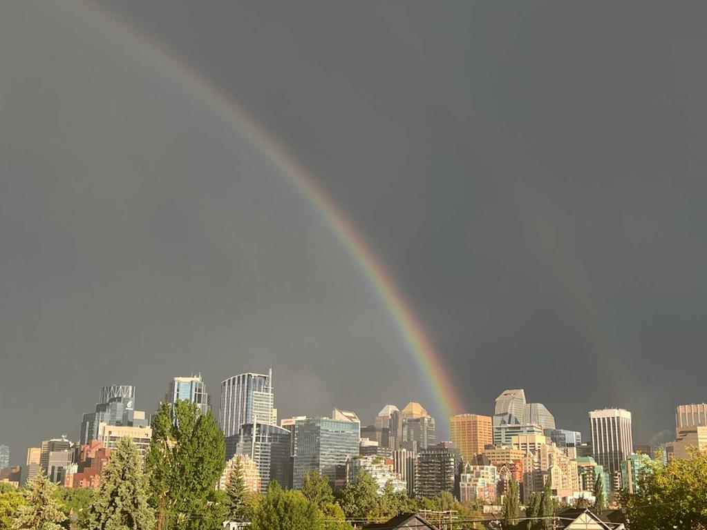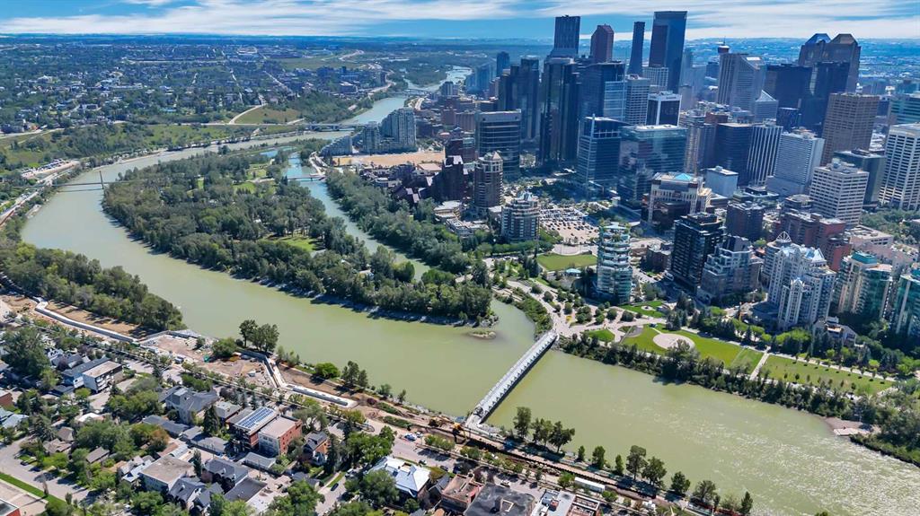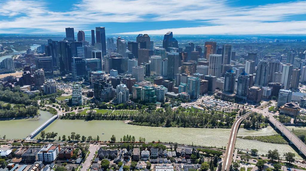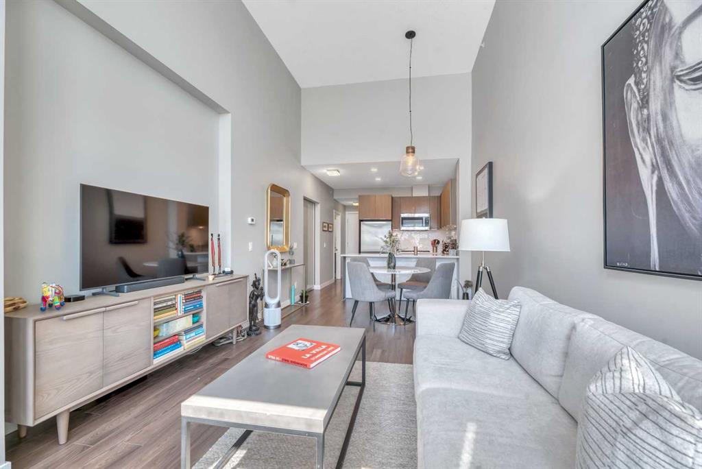 Welcome to PENTHOUSE life at The Ven, where contemporary style meets an unbeatable inner-city location in the heart of vibrant Sunnyside. This stunning sunny SE facing, top-floor condo with 14' VAULTED ceilings offers two bedrooms, two full bathrooms, and 741 square feet of beautifully designed living space—all framed by breathtaking, unobstructed views of Calgary’s downtown skyline. Inside, you’ll find a bright and airy open-concept layout featuring soaring 14-foot ceilings, oversized windows that flood the space with natural light, and high-end modern finishes that elevate everyday living. The kitchen is sleek and functional with quartz countertops, stainless steel appliances, and a large island that seamlessly connects to the living and dining areas—ideal for entertaining or simply enjoying your morning coffee with a view. The two bedrooms are thoughtfully separated for added privacy. The spacious primary suite offers a walk-through closet and a stylish four-piece ensuite, while the second bedroom and additional full bathroom are perfect for guests, roommates, or a dedicated home office. Living in The Ven means you're just steps from Kensington’s trendy cafés, restaurants, and boutiques, as well as scenic river pathways, the Sunnyside LRT, and iconic destinations like Prince’s Island Park. You're also only minutes from downtown, SAIT, the University of Calgary, and Foothills Hospital—placing everything you need right at your doorstep. This home also includes in-suite laundry, underground titled parking, secure storage, and the peace of mind that comes with quality concrete construction. The building is pet-friendly (with board approval), and the attention to detail throughout speaks to a lifestyle of ease, elegance, and city sophistication. If you’ve been searching for a rare blend of luxury, location, and lifestyle, this penthouse is the one you’ve been waiting for. Opportunities like this don’t last long—schedule your private viewing today.