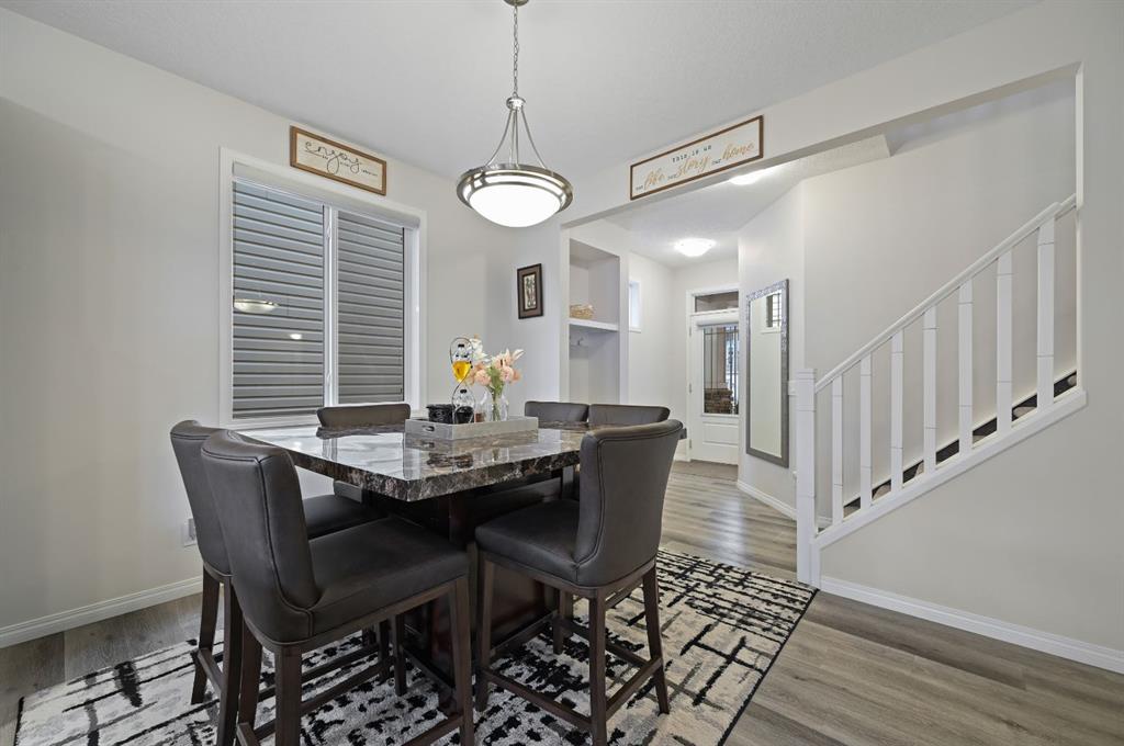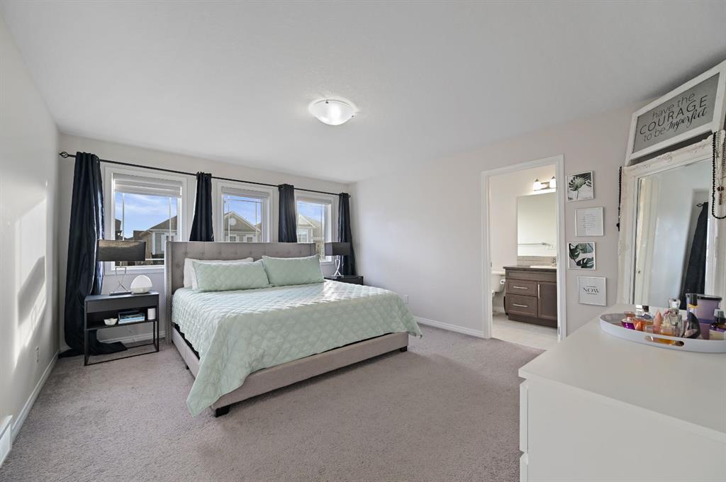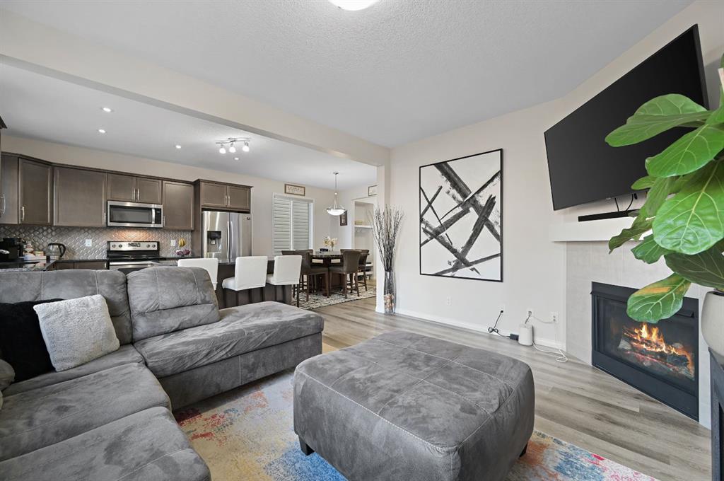 Located in desirable South Windsong, this 2018-built 2-storey home offers 2,419 sq. ft. of living space, a double attached garage, a brand-new air conditioner, and a fully fenced lot - a perfect blend of modern comfort and everyday convenience. The main floor features 9-foot ceilings, enhancing the sense of space throughout the open-concept layout. Natural light highlights the LVP flooring, while the kitchen offers quartz countertops, stainless steel appliances, ample cabinets, and a large pantry making it a perfect setup for cooking and gathering. The dining area transitions smoothly into the living room, highlighted by a corner gas fireplace and classic mantle. Just beyond the kitchen, a brand-new composite deck invites you to extend your living outdoors. A convenient half bathroom finishes off this well-planned main level. On the upper level, you’ll find three well-sized bedrooms, each offering comfort and versatility, while the bonus room provides flexibility and opportunities for entertainment, creativity, or a quiet workspace. The primary bedroom offers a serene escape, complemented by a 4-piece ensuite with a deep soaker tub, separate shower, and a walk-in closet that keeps everything in order. Also on this level one will find a shared full bathroom and a separate laundry room to ensure the upper floor remains both practical and well-organized. Venture downstairs to a fully unfinished lower level with rough-in plumbing, offering a blank canvas ready for your vision - be it a home gym, theatre room, or added living space. Located just minutes from local shops, schools, and parks, this home blends everyday convenience with a sense of comfort. And for those who prefer a quieter commute, nearby back roads offer a smooth way to bypass the city’s busy traffic. Thoughtfully designed. Effortlessly livable. Perfectly positioned for what comes next.