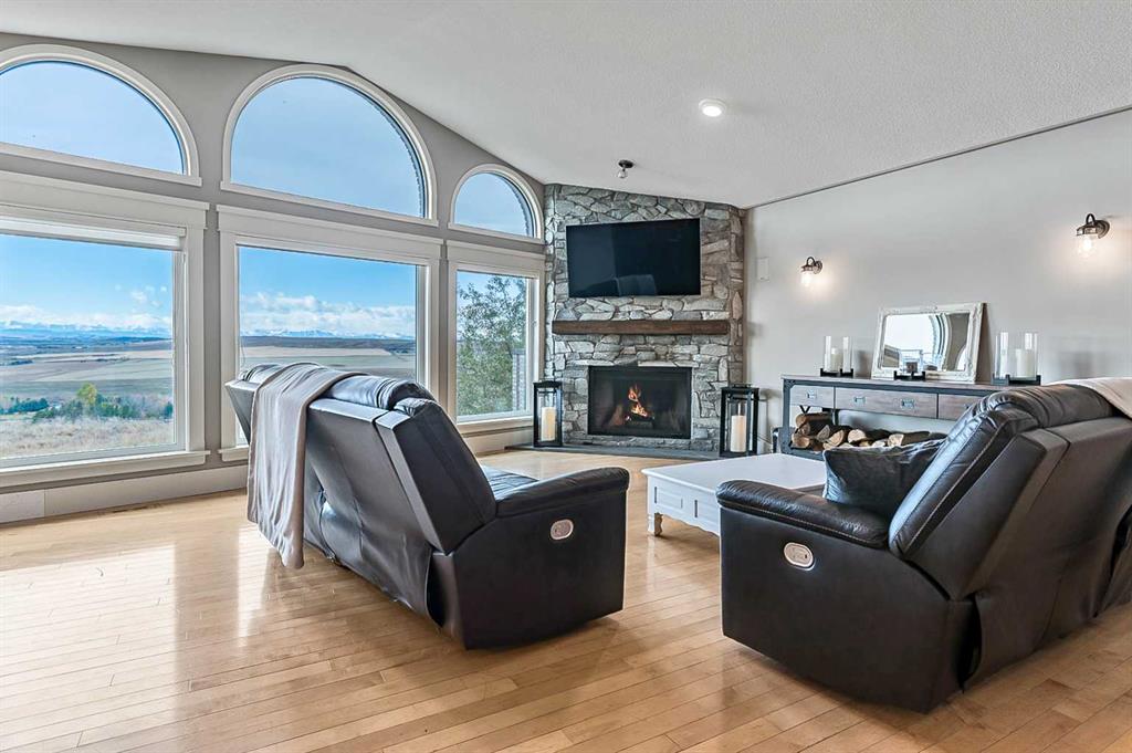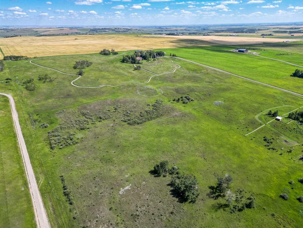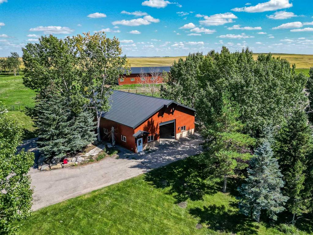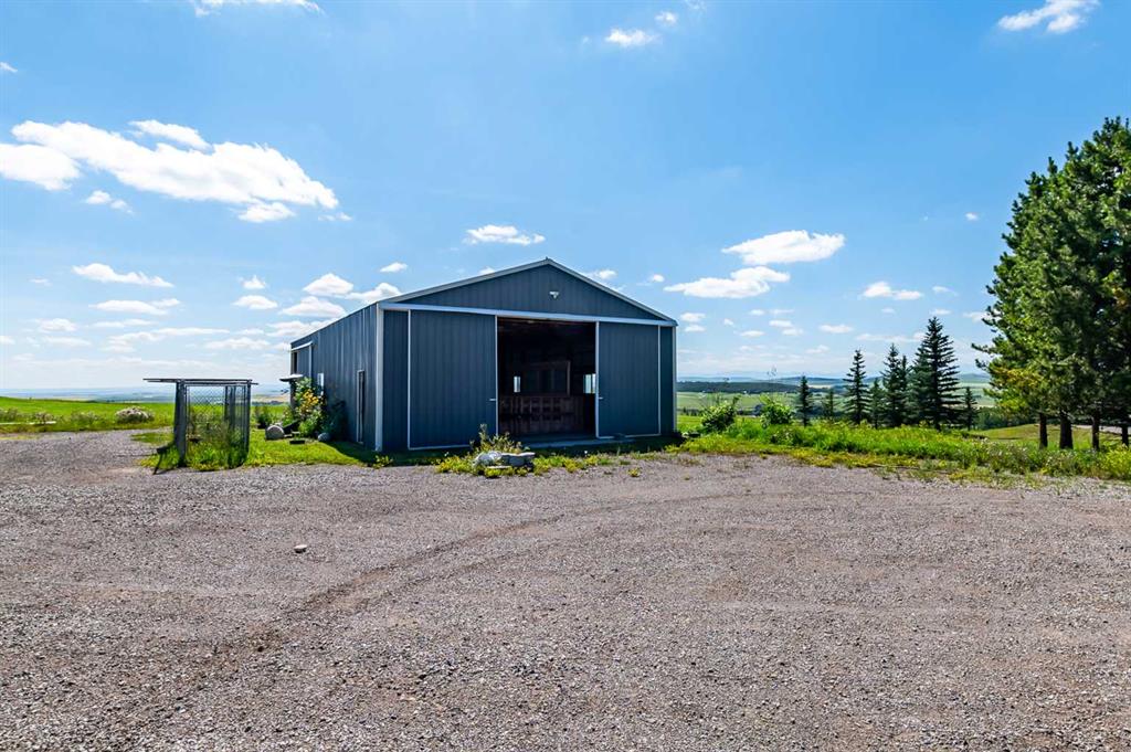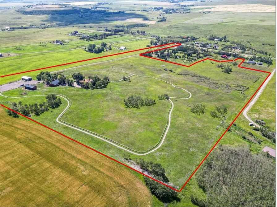 Imagine waking up to breathtaking panoramic views of the Rocky Mountains and rolling valleys, where the sun dips dramatically behind snow-capped peaks each evening—right from your west-facing windows. Nestled on over 55 acres of prime agricultural land in Rural Foothills County, this exceptional walk-out bungalow delivers 2,450 sq. ft. on the main level plus a fully developed basement, totaling 4,700 sq. ft. of luxurious living space. With 4 bedrooms, 4 bathrooms, office air conditioning, and thoughtful features like a large open kitchen, all-season sunroom/dining room flowing to expansive decks, vaulted living room with a stunning newer stone wood-burning fireplace, and premium hardwood, slate, and cork flooring throughout. The lower level boasts a family room with wet bar and wine cellar, dedicated media room, gym, abundant storage, and cozy lower deck access. Plus, an oversized attached double garage for all your needs. But this isn't just a home—it's a powerhouse property primed for smart investment. Unlock immediate equity through a potential subdivision opportunity! Owner recently submitted a land use redesignation application in order to start the process to potentially split off 13.7 acres of buildable bare land—pending Foothills County approvals—act now before this potentially elevates options and competition! Elevate your lifestyle with unmatched water security: Two excellent water wells —perfect for light irrigation, livestock, or self-sufficiency. The top field is fenced with new 7-strand high-tensile electric fence system, metal gates, and plank accents, plus a paved walking path for serene exploration or convenient at home fitness. Three versatile outbuildings await your vision: A 42' x 84' insulated metal barn with concrete floor, 110/220 power, and water (ideal for expansion); a 36' x 72' metal shop and a 24' x 72' animal shelter. An oversized gravel compound handles equipment, parking, and storage effortlessly. Tucked peacefully off Highway 7 under Alberta's vast blue skies, with mountain and city views blending into the horizon—this is serenity meets opportunity. Don't miss your shot to own this versatile gem before the potential subdivision greenlight changes everything. Schedule your viewing today and step into endless Alberta horizons!