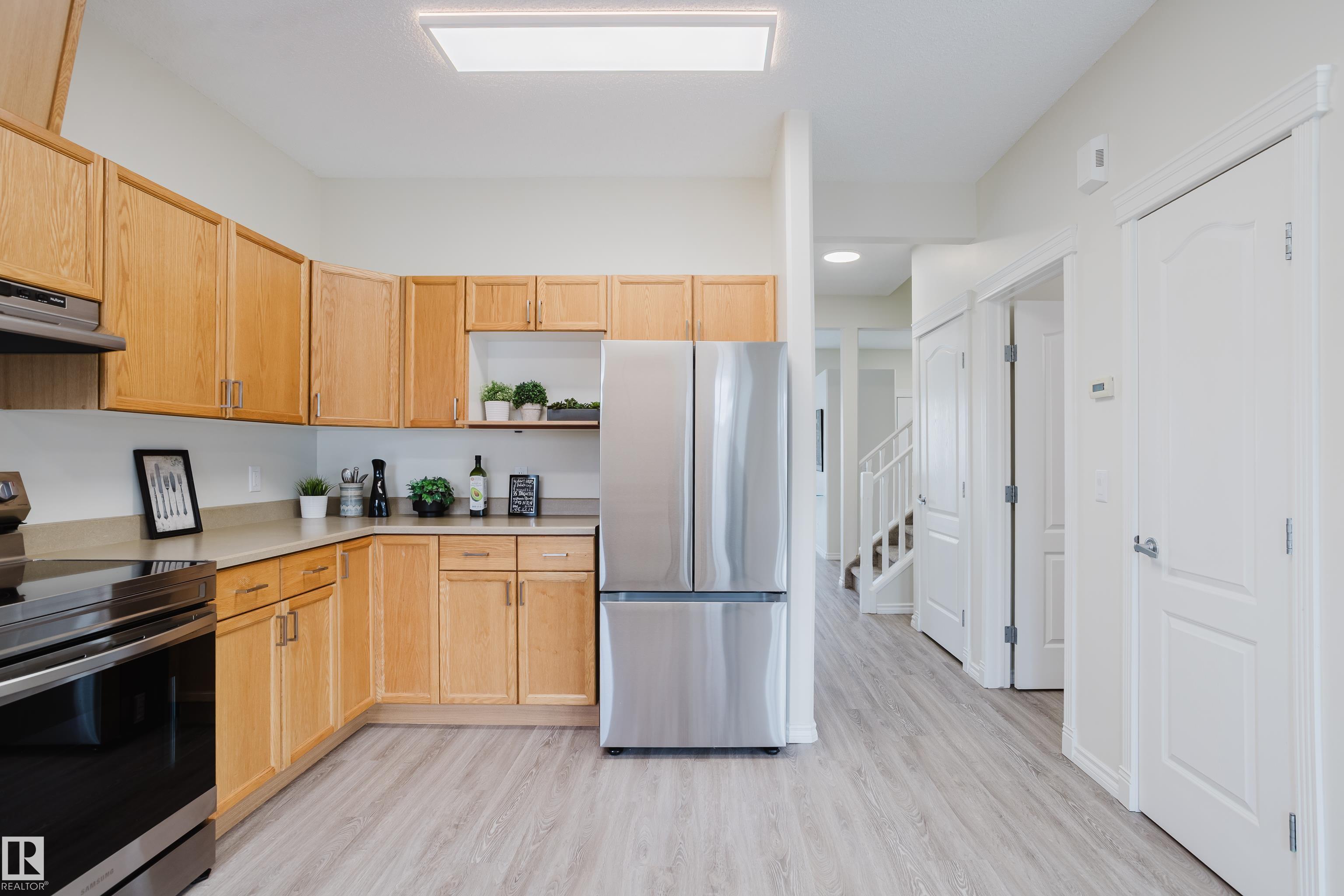 RENOVATED AND MOVE IN READY! In the desired community of Glastonbury, this OUTSTANDING 3+1 bedroom townhome with a finished basement provideds almost 2,000 sf of coveted family living. The main floor features 9' ceilings, a Large Living Room/Dining Room, a HUGE Kitchen with lots of cabinets, BRAND NEW APPLIANCES, plus a spacious eating nook with a patio door to the deck. The upper level is highlighted by a GENEROUS Master Bedroom that includes a 3-piece bath with a walk-in shower! The lower level provides the 4th Bedroom, a Rec. Room and is roughed-in & framed for another bathroom. This home was just PROFESSIONALLY painted from top to bottom, the NEW LVP flooring IS UPPER END, AND THE NEW CARPETS & UNDERLAY ARE HIGH QUALITY (NOT BUILDER GRADE)! Other recent upgrades include NEW TAPS in the Kitchen & ALL Vanites, 2 NEW toilets, NEW light fixtures with NEW plugs/switches, a New Sump Pump was installed & the deck was cleaned & brightened. With 2 parking stalls in front, and LOW condo fees...this is the ONE!