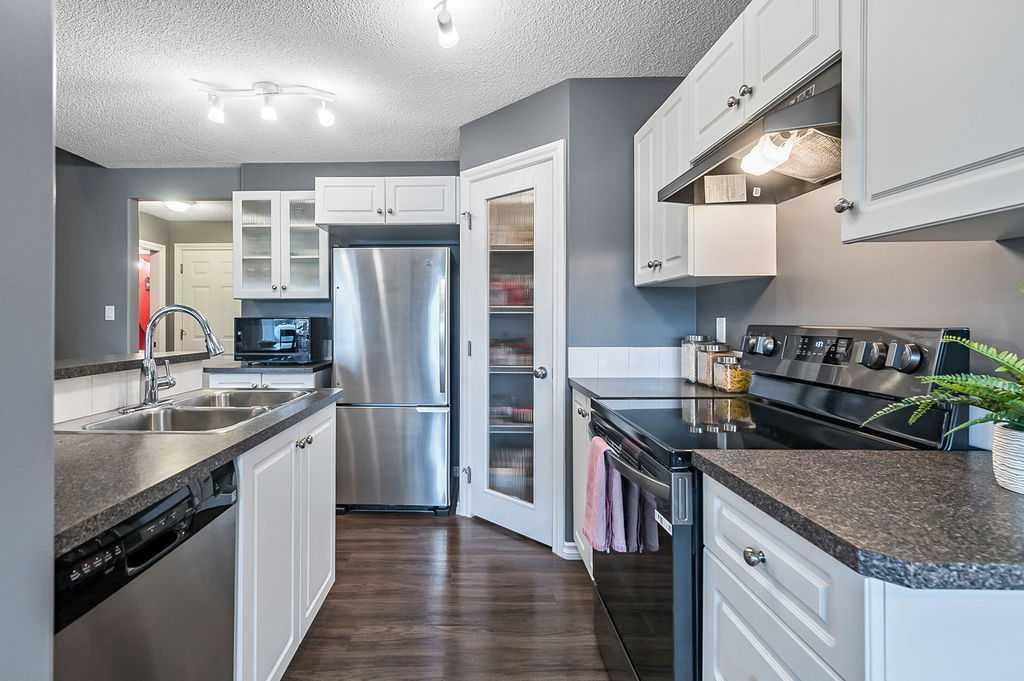 Welcome to this beautifully maintained 2-storey corner unit townhome in The Outlook at Royal Oak, offering over 1,800 sq. ft. of total living space. This charming home features a private, fully fenced backyard that backs onto a peaceful greenspace complete with a gazebo and play area. A single attached garage and inviting front porch add to the home’s curb appeal. Inside, the main floor boasts a bright open-concept layout with a cozy gas fireplace anchoring the living room, dining area, and a well-designed kitchen featuring a corner pantry, breakfast bar and new stove & microwave (2025). Upstairs, you’ll find three generously sized bedrooms, including a primary suite with a 4-piece ensuite, along with an additional 4-piece main bathroom. The fully finished lower level expands your living options with a large flex space, an additional bedroom, a full 4-piece bathroom, and a spacious laundry area with newer washer & dryer (2019). The furnace and hot water tank was replaced in 2023 and serviced annually. Ideally located just steps from Royal Oak Shopping Centre, top-rated schools, restaurants, medical clinics, and the YMCA. Walking distance to the new Rocky Ridge Athletic Complex (due for completion later this year) and close to walking/bike pathways as part of the Rotary/Mattamy Greenway. Tuscany Train station is close by, with a bus stop right by the complex entrance. With quick and easy access to Stoney Trail, parks by the west side of the City is easily accessible. This home offers an exceptional blend of comfort, convenience, and value within a quiet, family-friendly complex.