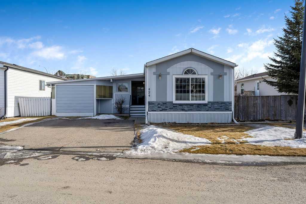 Unique opportunity to own a beautifully situated 1,034 sq. ft. single-wide mobile home set on a generously sized lot. The property offers outstanding outdoor functionality, including two large exterior sheds—ideal for storing motorcycles, snowmobiles, 4-wheelers, and other outdoor toys or seasonal equipment. There’s also a large paved driveway accommodating two vehicles, plus the bonus of an attached 2 vehicle carport. The cozy interior features vaulted ceilings and a skylight that floods the main living area with natural light, creating a bright, open, and welcoming atmosphere. You’ll also appreciate the abundance of cabinetry and generous counter space—perfect for everyday living. The thoughtful layout includes 2 bedrooms and 2 bathrooms, both generously sized with a huge covered deck attached. Enjoy living right in the heart of Okotoks, just steps from parks, pathways, historic downtown, the recreation centre, and shopping. Lot fees of $1,270/month include water, sewer, garbage, compost, recycling, and snow removal. Buyer approval is required by Cove Communities (see member remarks for additional details). Don’t miss this rare opportunity to enjoy tons of outdoor space, open concept living, storage, natural light , and the quaint lifestyle of Okotoks.