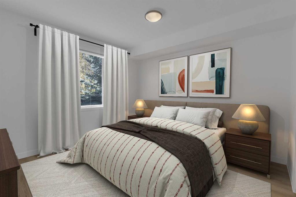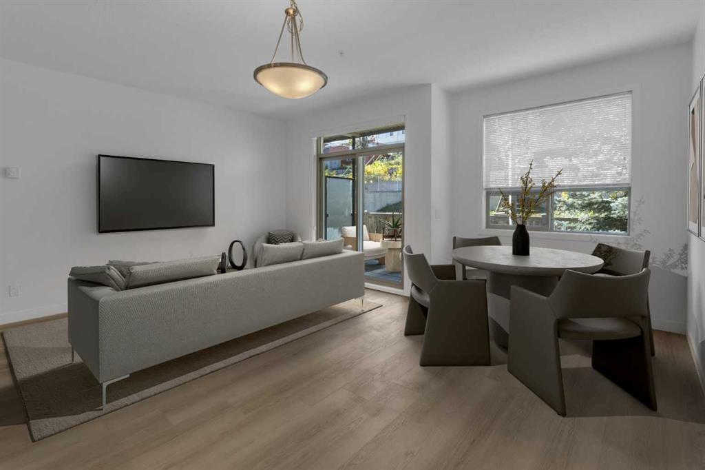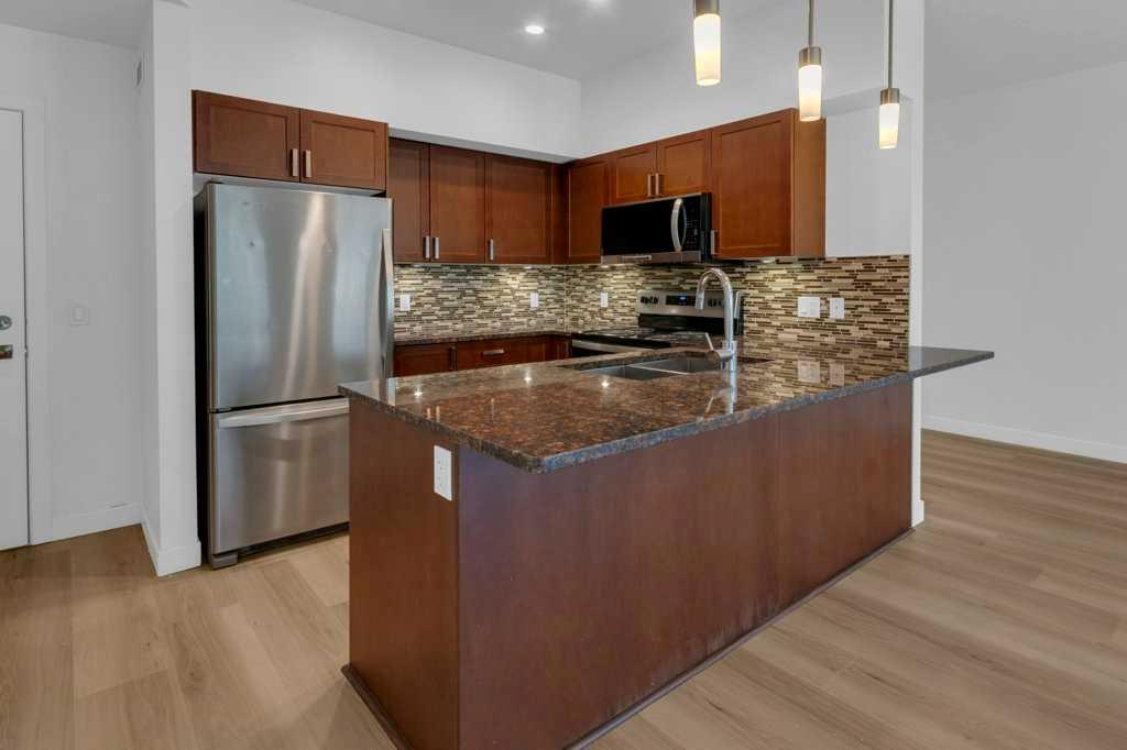 Spacious bright renovated apartment done in tasteful modern finishes. The neutral palette and open concept will work for whatever your personal design style is. This 1-bedroom apartment features beautiful new flooring, a patio door to the balcony off the living room, pendant and recessed lighting, stacked washer and dryer, and a beautiful tiled 4-piece bathroom with granite countertop. You will be delighted with the kitchen that features 4 stainless steel appliances, brand new stove, a tiled backsplash with under cabinet lighting and granite counter tops. Pendant lights hang above the kitchen peninsula that is complete with a breakfast bar. The dining room is setback with a large west facing window adjacent and open to the living room. The living room has patio door sliders that lead to the large sunny west facing balcony. Perfectly Set Up! A Home that you will love coming home to and be proud to entertain. This apartment is located in Highland Park minutes to downtown and via Centre Street and Edmonton Trail with excellent access to regional bike pathways, Confederation Park and Nose Hill Park. Close to Shopping, Restaurants, Coffee Shops and Schools. Ideal starter home easy no fuss move in and enjoy.