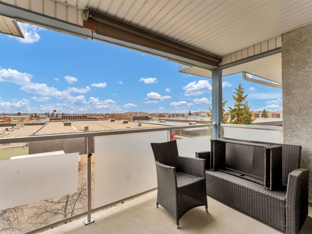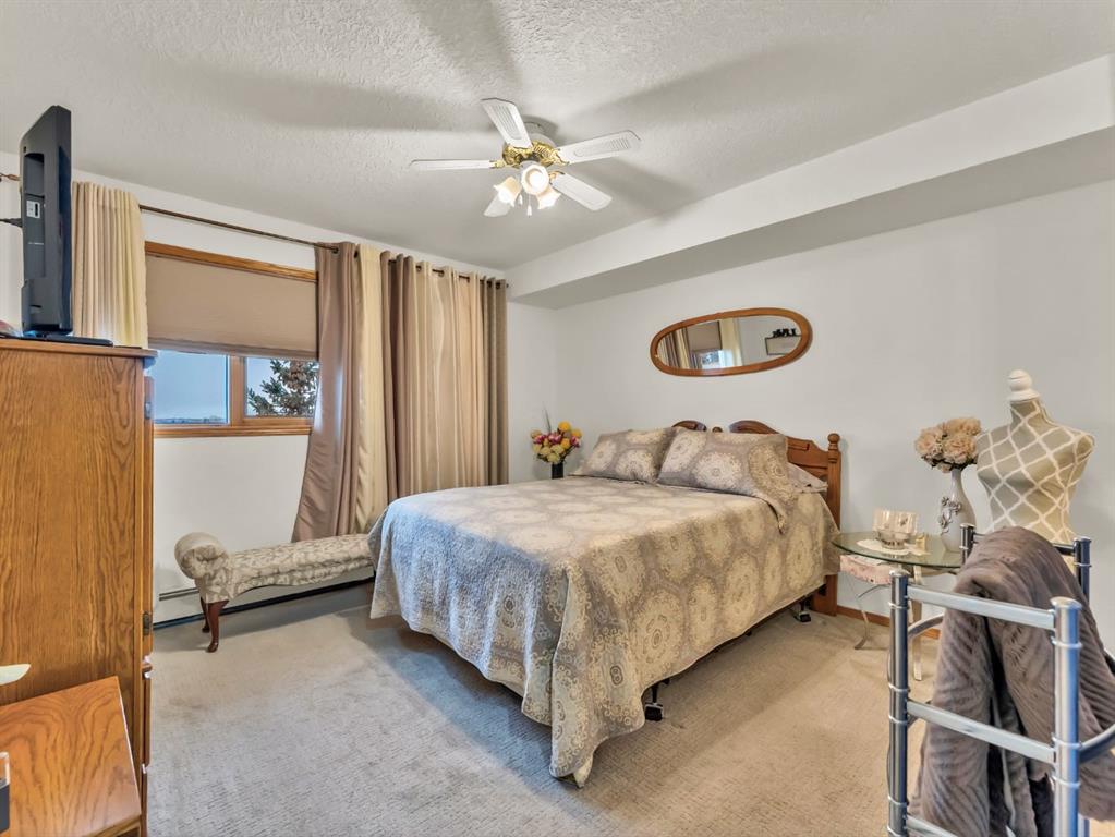 Welcome to Grandview Village — one of Medicine Hat’s most desirable 55+ condo communities. Step into this immaculate 4th-floor, 2-bed, 2-bath unit, proudly offered for sale. Lightly lived in and beautifully updated, this home is ideal for anyone looking to downsize without compromising on space, comfort, or lifestyle. The bright, open floor plan features a spacious kitchen with an updated fridge, crisp white cabinetry, generous counter space, and a convenient moveable island. The dining and living areas flow seamlessly to a large, private deck where fourth-floor views stretch all the way to the edge of the city — the perfect spot to enjoy morning coffee or evening sunsets. This unit has seen considerable updates including, paint, vinyl plank flooring, carpet in living room, black out blinds throughout, new washer + dryer. Inside, the suite is equipped with two air conditioners for exceptional summer comfort. Just steps from the elevator, and only a few more to your underground parking stall and storage, convenience is built right into daily living. Grandview Village is known for its thoughtful design with two elevators and multiple entryways, including a side/back door for quick, easy access. But what truly sets Grandview Village apart is its incredible amenities and the warm, welcoming community that thrives here. Residents enjoy a beautifully maintained indoor pool and hot tub, fitness room, billiards room, party and coffee rooms, guest suites, and a gorgeous outdoor patio for socializing or relaxing. The underground parkade features a car wash and a woodworking shop, making hobbies and upkeep a breeze. The building is ideally located close to shopping, restaurants, and everyday amenities — yet it feels peaceful, secure, and wonderfully cared for. Grandview Village is known for its friendly, like-minded residents who create a genuine sense of belonging. Whether you’re looking for connection, comfort, or convenience, you’ll find it here. This is more than a condo — it’s a lifestyle. Come experience the beauty and community of Grandview Village for yourself.