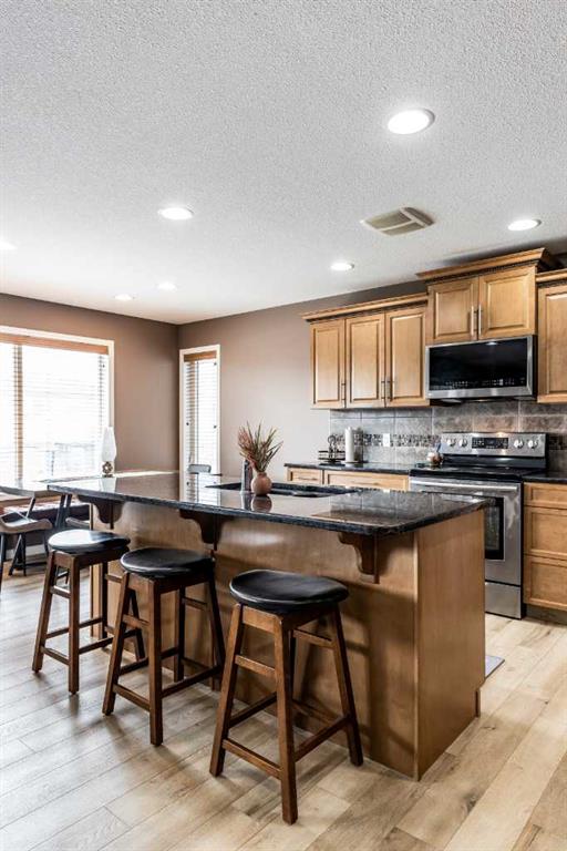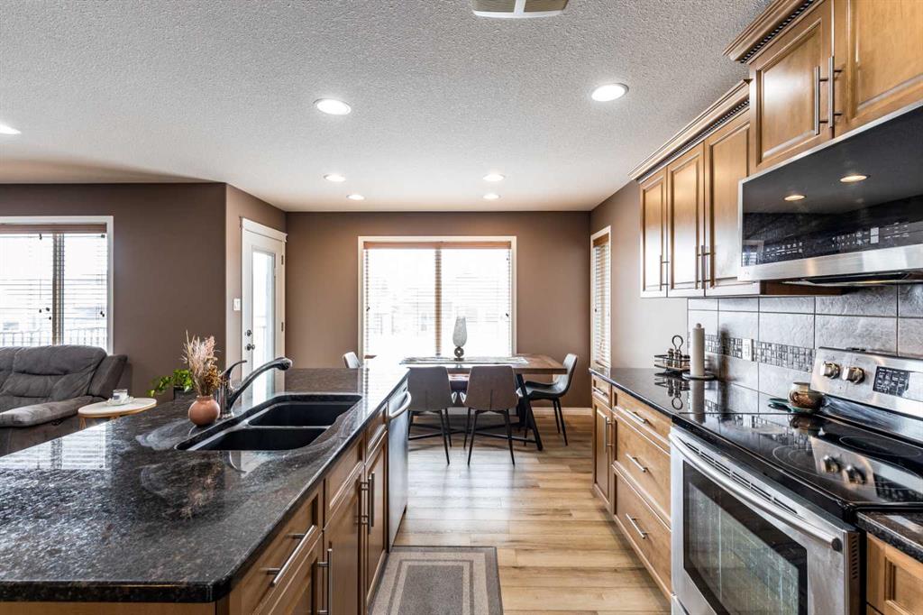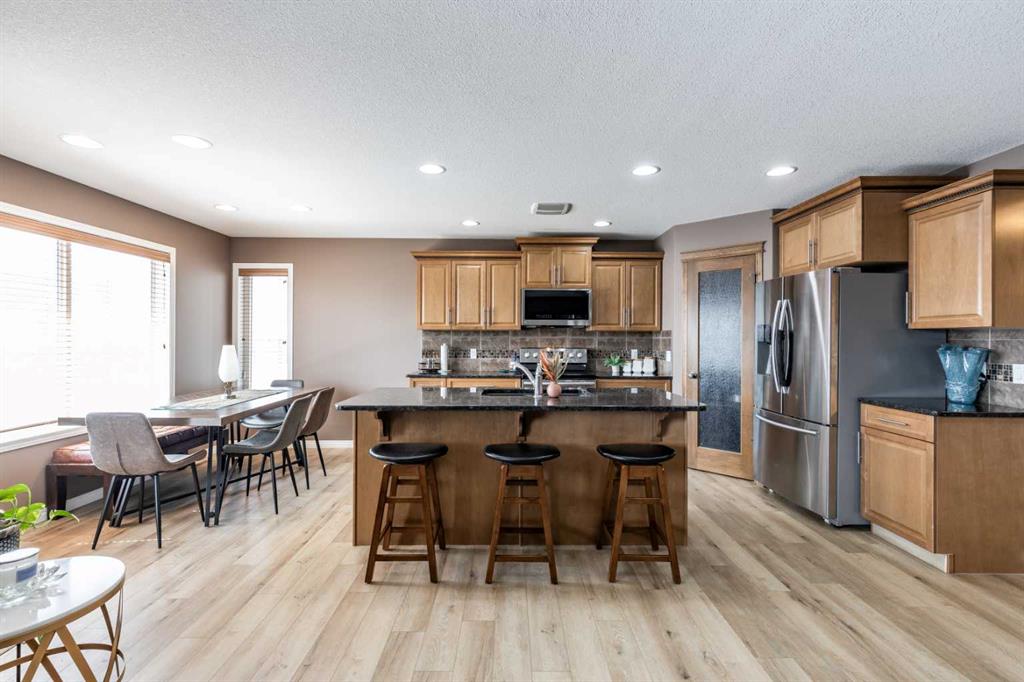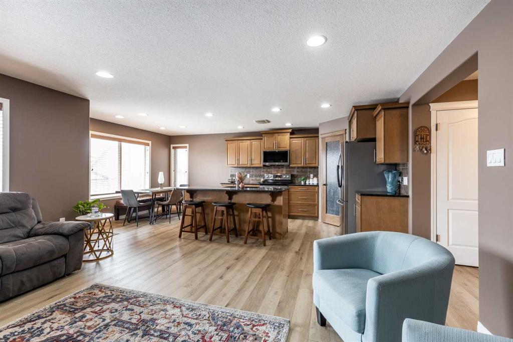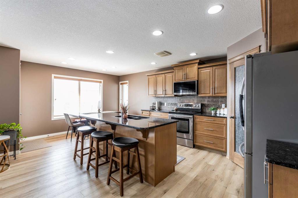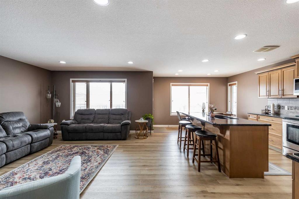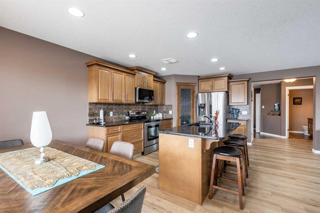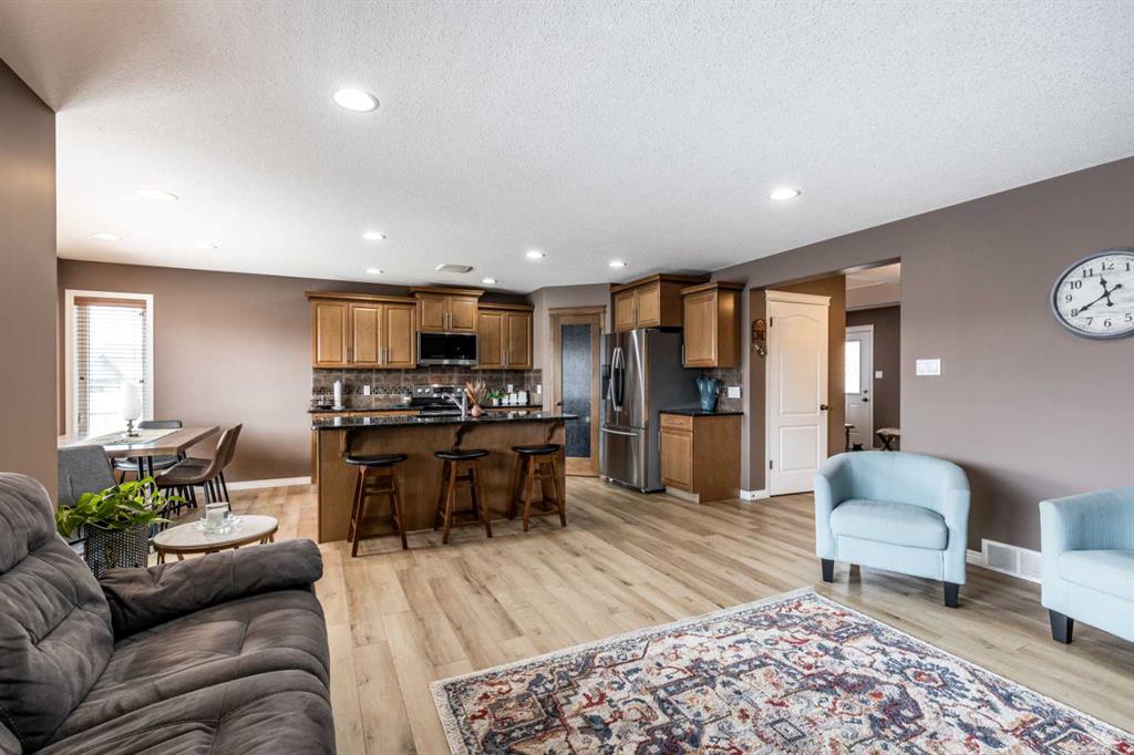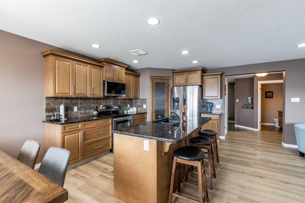 Welcome to this beautiful two-storey home built in 2012, offering five bedrooms and four bathrooms—an ideal setup for a growing family. Located in a highly desirable south-end neighborhood in Medicine Hat, you’ll enjoy close proximity to parks, schools, walking trails, and bike paths. This home boasts fantastic curb appeal and a thoughtfully designed layout. The main floor features open-concept living with updated vinyl plank flooring and an abundance of natural light. The kitchen is both stylish and functional, complete with granite countertops, stainless steel appliances, and a convenient corner pantry. The adjoining kitchen, dining, and living areas create the perfect space for family gatherings or entertaining, allowing everyone to stay connected. A main floor laundry room and a two-piece powder room add everyday convenience. Upstairs, you’ll find three generously sized bedrooms, including a spacious primary suite with a walk-in closet and a four-piece ensuite. An additional four-piece bathroom completes the upper level. The fully finished basement offers even more living space, with two additional bedrooms, a three-piece bathroom, a large family room, and plenty of storage. Outside, the fully landscaped and fenced yard features a covered deck—perfect for relaxing or entertaining. With alley access, a double attached heated garage, and ample driveway parking, this home checks all the boxes. A perfect family home you won’t want to miss!