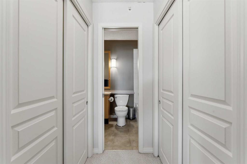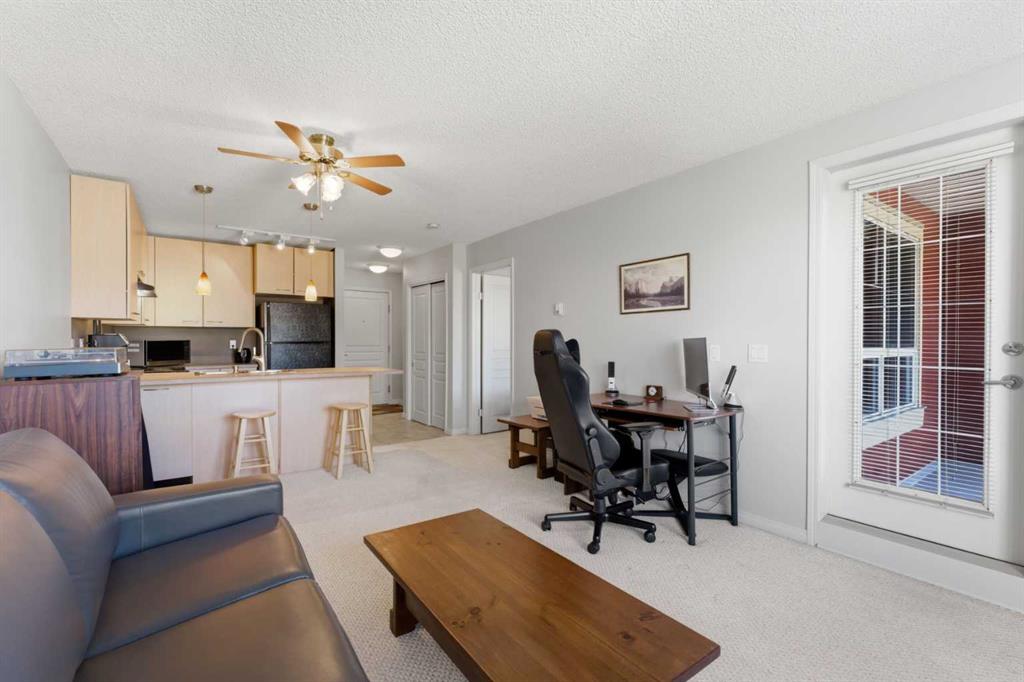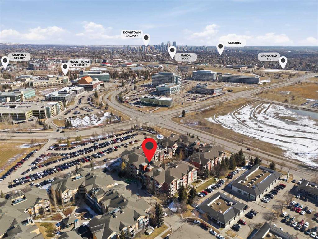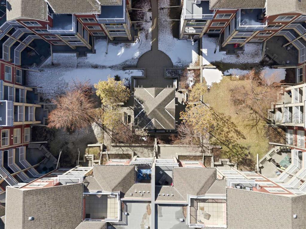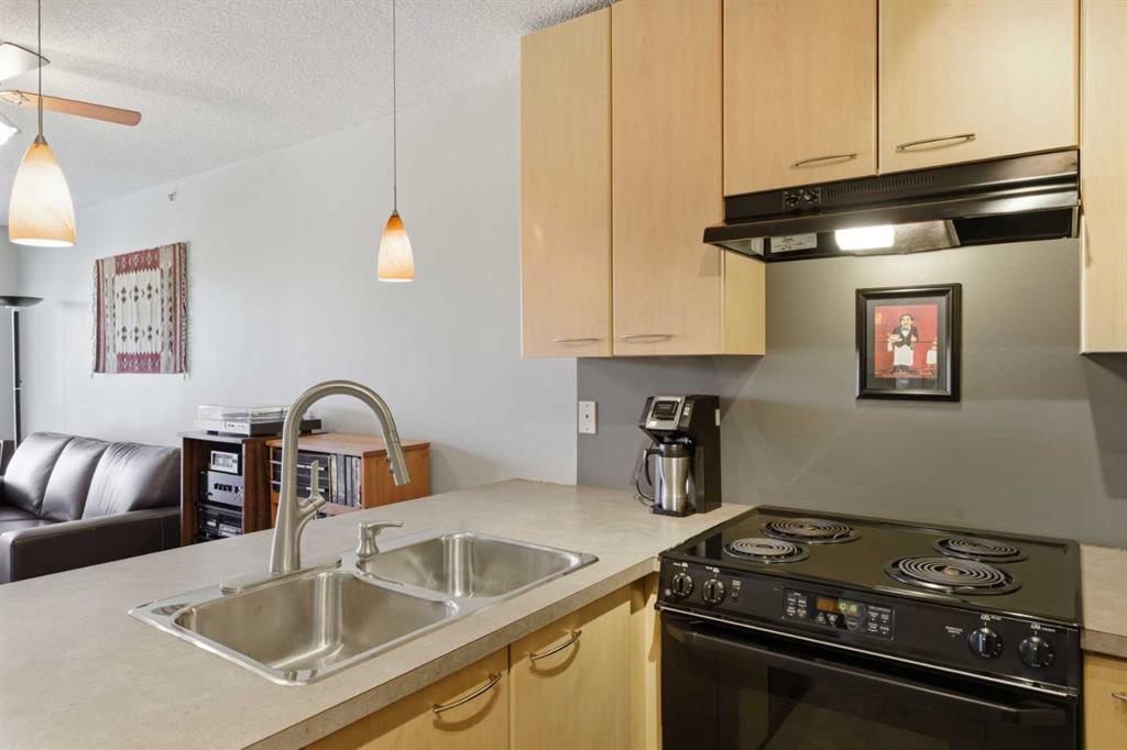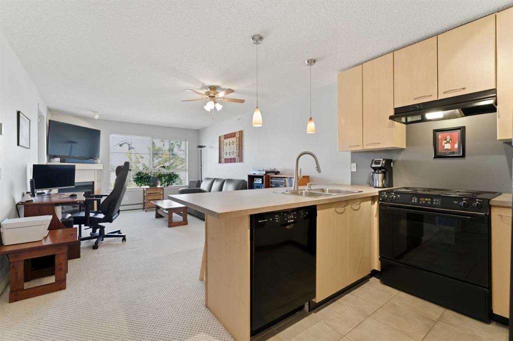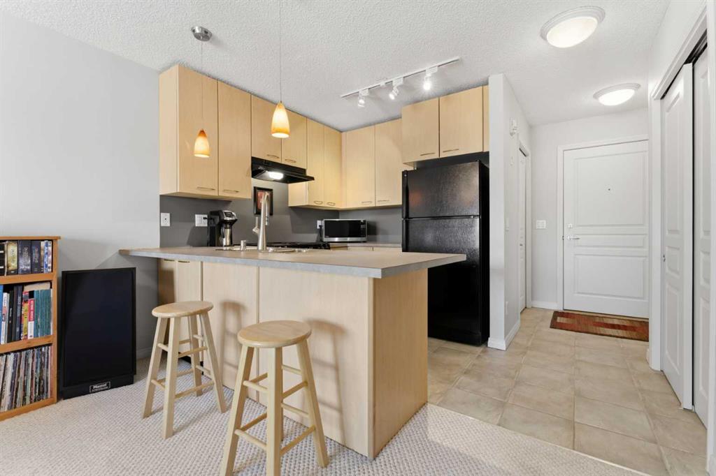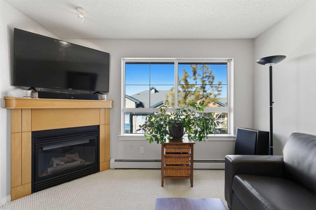 Welcome to Trafalgar House in this beautifully maintained, west-facing top-floor unit. Offering 1 bedroom, 1 bathroom, and a thoughtfully designed open-concept layout, this home is filled with natural light thanks to expansive windows that create an inviting and airy atmosphere. The contemporary kitchen flows seamlessly into a cozy dining nook and a spacious living room, where a charming gas fireplace becomes the perfect focal point—ideal for relaxing evenings or entertaining guests. Step outside to your private west-facing balcony, complete with a gas line, making summer BBQs effortless while enjoying the quiet atmosphere. The bright and generously sized primary bedroom features dual closets and easy access to a well-appointed 4-piece bathroom. Additional conveniences include in-suite laundry with a newer washer & dryer, a titled underground parking stall, and an assigned storage space. As an original Owner of Trafalgar House, the Seller enjoys an impressive array of amenities, including a fully equipped fitness centre, an inviting social/party room, secure bicycle storage, a beautifully landscaped courtyard with gazebo, car wash bay, and ample underground visitor parking—all within a well-managed and desirable complex Ideally located within walking distance to Mount Royal University, close to public transit, and surrounded by an excellent selection of restaurants, cafés, and everyday amenities, this move-in-ready home is perfect for students, young professionals, investors, or anyone seeking a low-maintenance home in a well-managed building.