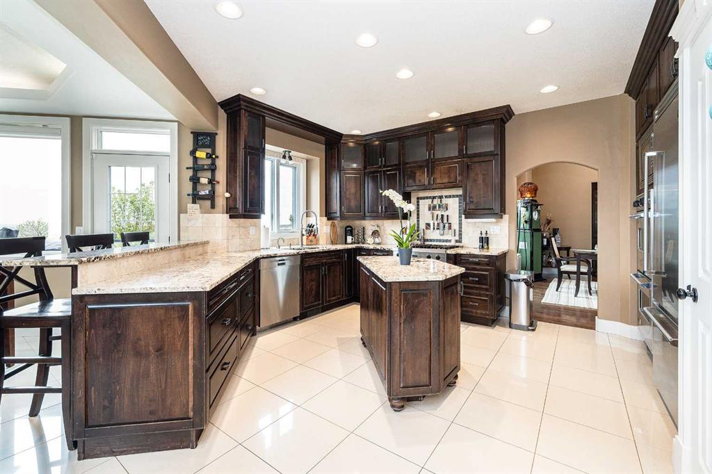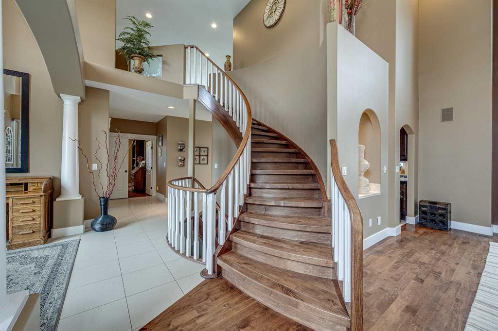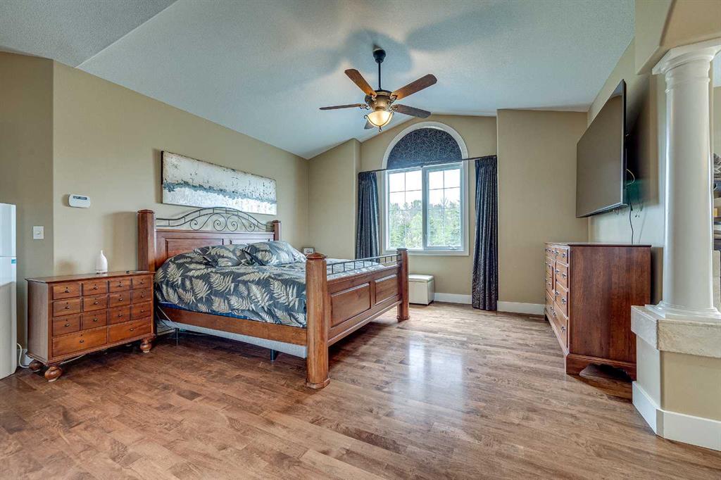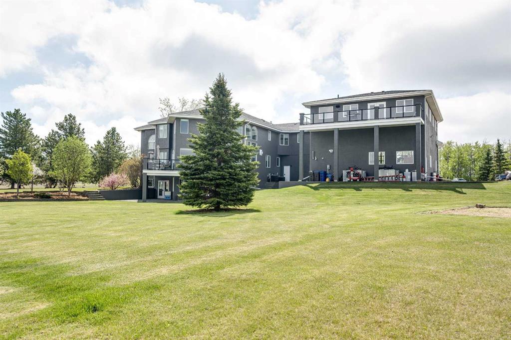 Perched high on the south hill overlooking the charming town of Sylvan Lake, this magnificent property offers unparalleled luxury, breathtaking views and development opportunities. With over 5,000 square feet of living space, this grand estate features dramatic 22-foot cathedral ceilings and a stunning spiral staircase that sets the tone for the opulence within. The main level is a haven for culinary enthusiasts, boasting a chef's kitchen equipped with top-of-the-line appliances. The formal dining and living rooms are ideal for entertaining guests in style, while the cozy family room offers a great space for everyday living. Additionally, there is a main floor office for work or managing the home. Practical amenities abound, with a large back entryway featuring a locker room, laundry room, and a convenient 2-piece bathroom. Upstairs, you'll find four spacious bedrooms, two of which have ensuite bathrooms for added privacy and comfort. The primary suite is your personal sanctuary, featuring a dream ensuite with a soaker tub, steam shower, and walk-in closet. A loft area provides a serene space to relax and enjoy the panoramic views, and a stylish 5-piece bathroom serves the other bedrooms. The walkout basement offers two large bedrooms, one with a walk-in closet, and a full 4-piece bathroom. A kitchenette makes this space perfect for empty-nester parents. The entertainment hub includes a games area and a theatre setting perfect for movie nights. Garages and additional spaces are plentiful. The triple attached garage offers ample space for everyday parking. The detached shop is a massive 46 x 36 structure accommodating vehicles, boats or all your toys, and includes a recently added shop hoist. The shop also features a bonus mezzanine with a full kitchen, 4-piece bath, and a balcony overlooking the lake. There are options to convert the upper part of the detached shop into additional living space with board-in bedrooms, providing even more versatility. An additional 2-piece bathroom and a stackable laundry unit in the main garage area adds even more convenience. The property has had numerous upgrades, ensuring modern comfort and efficiency. The garage floor was upgraded with an epoxy finish. Both the house and shop exteriors were painted and weather-sealed. All interior tiles were sealed and 2.5 bathrooms were recently renovated. Updated custom cabinetry and crown moldings are just a few of the upgrades that have been done. 70 Foot RV parking on west side of the shop with 30 amp plug Beyond the main house, this property offers potential for development with 10 lots or 6 executive lots that can be subdivided, totaling 2.99 acres in lot size on the perimeter of the Vistas.. SUBDIVISION is an option if INVESTMENT is what you seek. This estate offers a perfect blend of luxury, comfort, and functionality, making it a dream home for discerning buyers. Don’t miss the opportunity to own this extraordinary property with its unmatched views and top-of-the-line amenities.