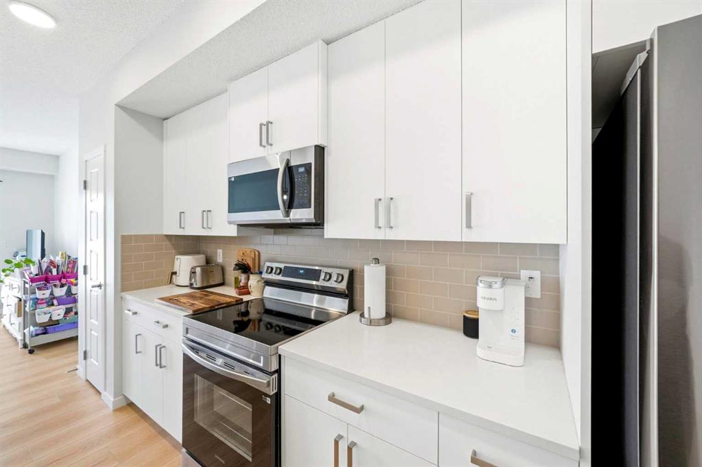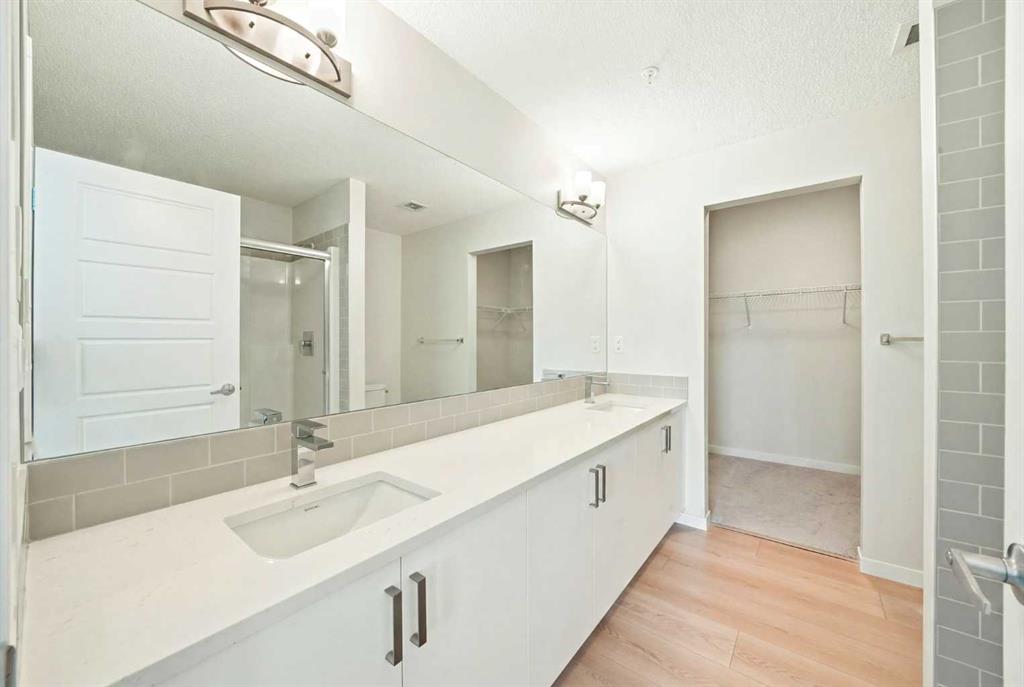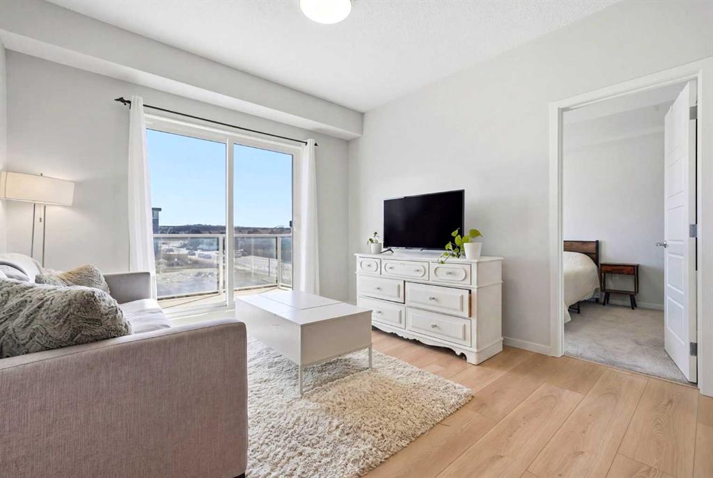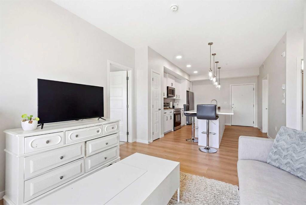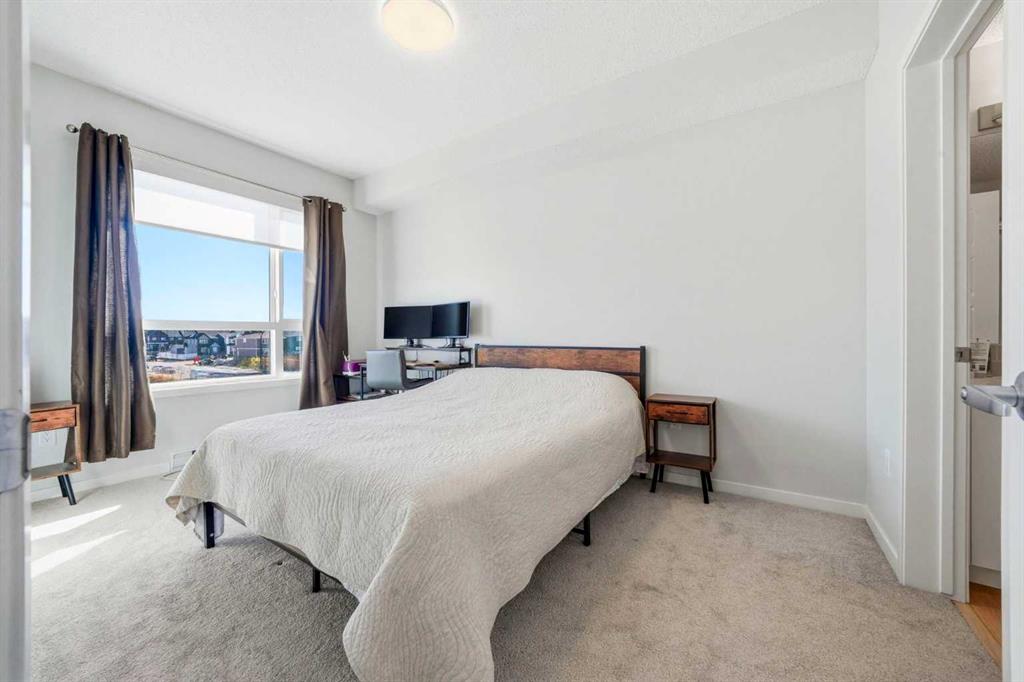 Experience elevated living in this stunning 2-bedroom, 2-bathroom apartment, where modern design meets everyday comfort. Perfectly positioned with south facing exposure, this home is filled with natural light, creating a warm and inviting ambiance throughout. The heart of the home is a beautifully designed open-concept kitchen featuring sleek quartz countertops, premium stainless steel appliances, and an expansive island with an integrated sink, ideal for entertaining, casual dining, or gathering with family and friends. Designer pendant lighting and clean, contemporary cabinetry add a refined touch to the space. The spacious primary bedroom offers a peaceful retreat with plush carpeting, generous windows, and direct access to a private ensuite. A well appointed second bedroom provides flexibility for guests, a home office, or growing families. Enjoy the convenience of a walk-in closet and an oversized laundry room with ample additional storage, perfect for keeping everything organized and out of sight. Additional features include secure underground parking, modern finishes throughout, and a thoughtfully designed layout that maximizes both style and functionality. Located in the vibrant and rapidly expanding community of Belmont, this home offers a walkable lifestyle surrounded by parks, playgrounds, and beautiful green spaces just steps from your door. Enjoy the convenience of nearby shops, restaurants, and everyday essentials, with even more on the horizon.