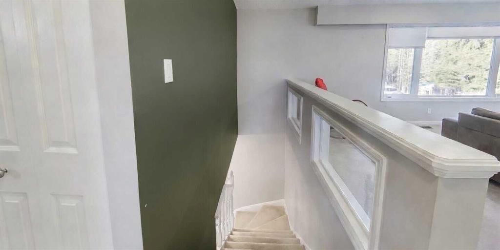 Sought-after east end location! This beautifully updated 2-storey home with grade-level access offers the perfect blend of comfort, style, and functional living space for families of all sizes. The upper level features a bright and expansive living room with a large picture window showcasing views of the Town’s scenic wooded trails. The dining area offers garden door access to the deck—ideal for entertaining—while the completely updated kitchen (2015) boasts stainless steel appliances, modern finishes, and durable vinyl plank flooring. Next to the kitchen you’ll find convenient pantry storage and access to the deck. There’s a stylishly renovated 4-piece bathroom, a spacious primary bedroom with a renovated 2-piece ensuite, and two additional well-sized bedrooms. The grade-level lower floor provides exceptional versatility, perfect for teens, guests, or extended family. This level includes a large family room highlighted by a beautiful stone-faced wood-burning fireplace, a large bedroom, a 3-piece bathroom, laundry room, a utility/storage room, and a practical mudroom entrance from the carport. A separate front entry offers easy access to both levels, enhancing functionality and privacy. Extensive upgrades over the years include vinyl windows, updated flooring (laminate, carpet and vinyl plank), paint, modern light fixtures, stucco, fencing, deck, and shingles (2019). ). 10,400 sq. ft. lot with a fenced backyard and alley access, large shed and there’s a carport and RV parking. Ideally located close to schools, parks, and the Town’s trail system, this move-in ready home offers exceptional value in a family-friendly neighbourhood. Quick possession is available.