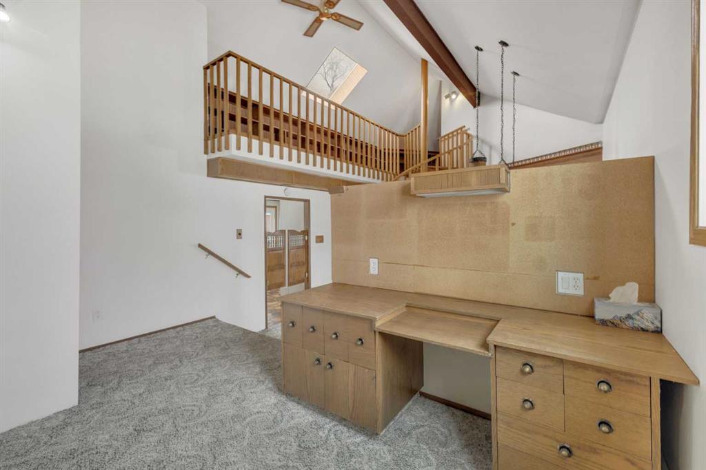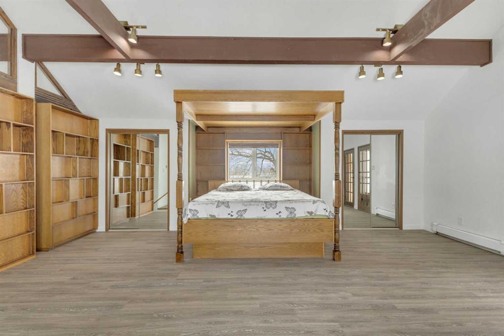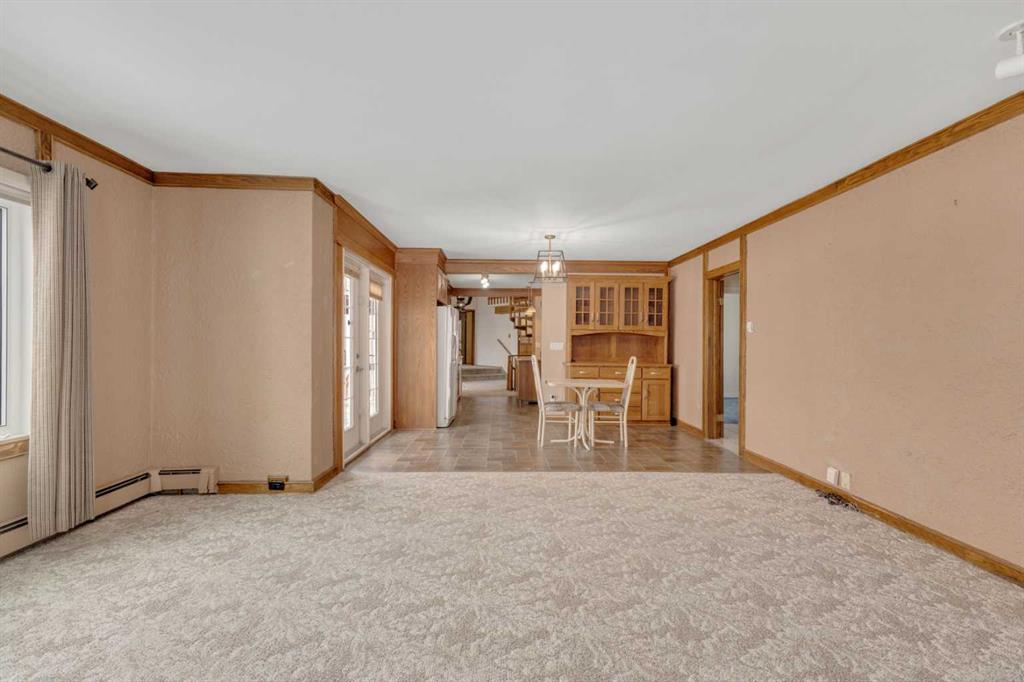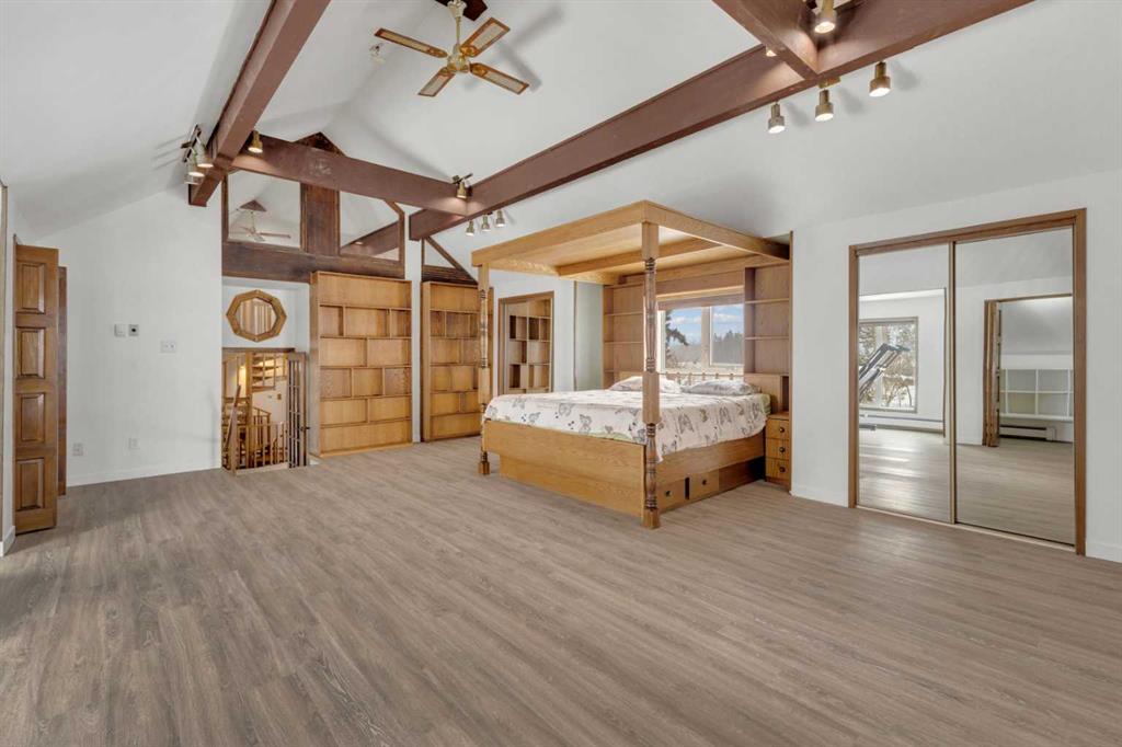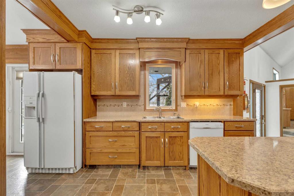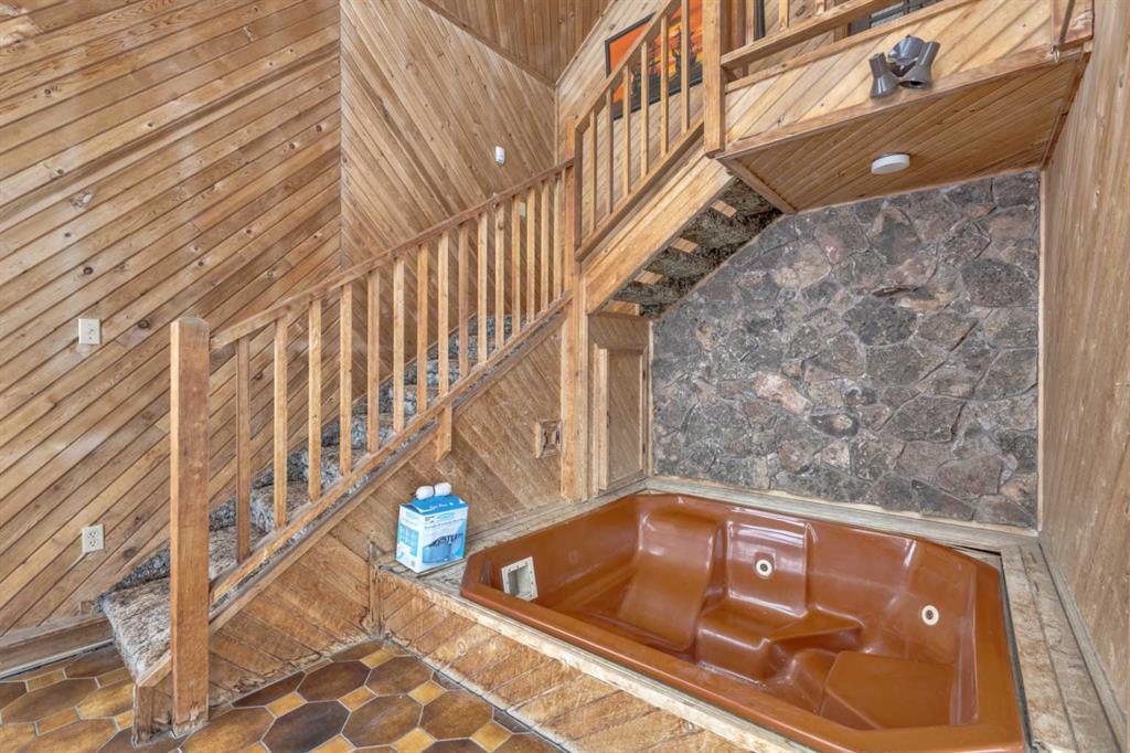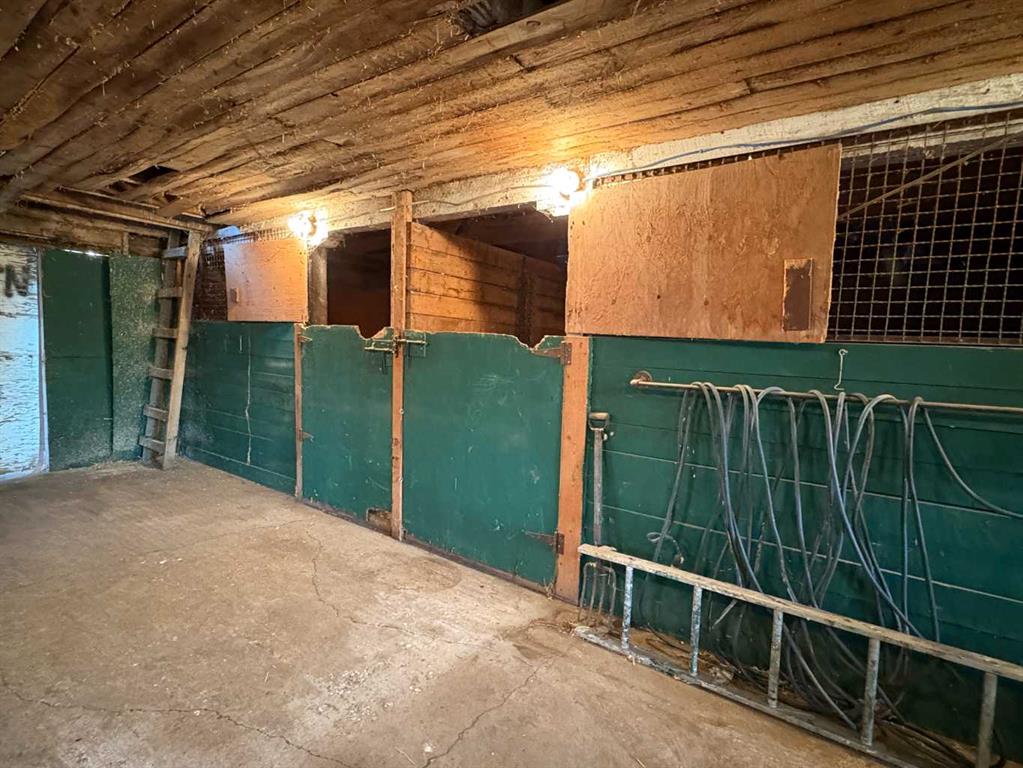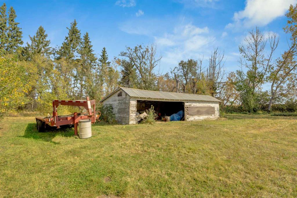 NOT IN a subdivision and NO IMMEDIATE neighbors. An incredible opportunity 30 YEARS in the making!! Just under 7 Acres of flat, usable land with an incredible shelterbelt. This updated character home blends charm and function, featuring stunning oak spiral staircase, Colorado stone fireplace and major upgrades throughout (kitchen-2015, windows & roof-2021, paint, flooring-2024 and more!). Newer front and rear decks on steel screw pile anchors, and everything outside you need for livestock, horses and the mechanic in your life. A hip roof barn that is 30ft W x 44ft L with 5 box stalls and large pens ready for critters. The XL heated farm shop is 43ft W x 50ft L with a 20x14ft high door – so much space for working, welding, mechanic and storage! Peaceful, private and just minutes to Ponoka – this is acreage living at its best!