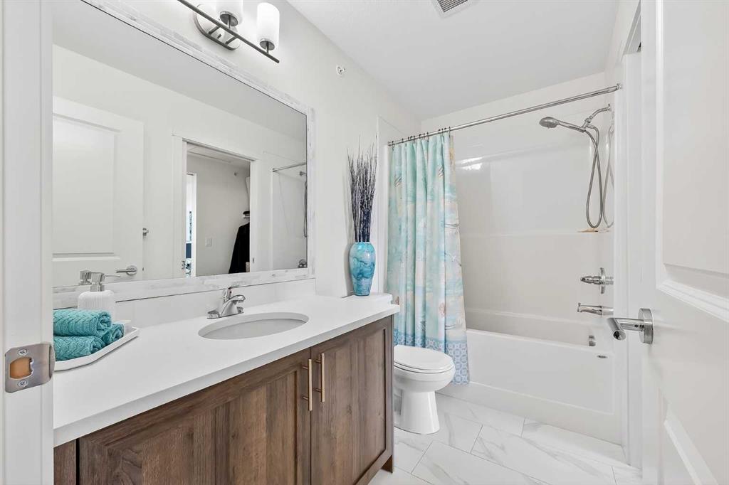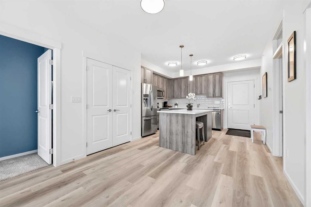 Prepare to be impressed! This stunning 3 bedroom, 2 bathroom, top floor condo offers luxurious living in highly desirable Sage Hill Park II. Step inside and be greeted by the elegance of luxury vinyl plank flooring that flows seamlessly through the bright and open main area. The heart of the home is the stunning kitchen, featuring upgraded stainless steel appliances, sleek quartz countertops, ample stylish cabinetry, double pantry, and a large inviting island- perfect for entertaining! The kitchen effortlessly transitions into the sun drenched living room, creating an ideal space for relaxation and gatherings. The patio is nothing short of amazing, it's huge! Enjoy covered outdoor living with 265 ft2 of private space in sunny south exposure. Retreat to the generously sized primary bedroom, complete with a well organized walk-in closet, and private ensuite bathroom. The thoughtfully separated 2nd bedroom is also a great size, and has a walk through closet leading into the 2nd full bathroom. There is even a 3rd bedroom, lots of space for the whole family! Stay comfortable year round with air conditioning in the summer, and keep your car warm in the winter in the heated underground parking. This unit also comes with an additional outdoor parking stall, convenient! Added bonus of a separate storage locker for your extra and seasonal belongings. Beyond the exceptional features of the unit, this complex is in a prime location that sides onto a picturesque pond and endless walking trails- perfect for enjoying the outdoors. You'll also appreciate the close proximity to a variety of shopping and dining options, public transportation, major roadways, and much more! Don't miss the opportunity to make this exceptional condo your own. Call your favorite realtor to book a showing today, you won't be disappointed!