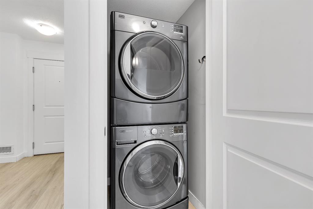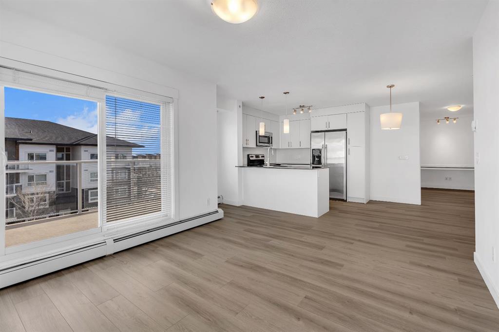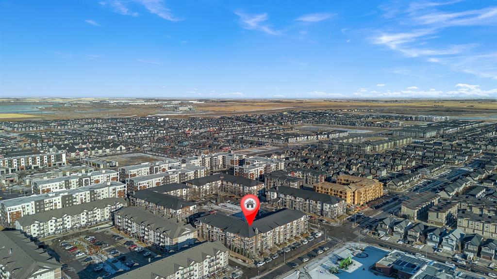 Welcome to this stunning top-floor corner penthouse offering exceptional privacy, natural light, and one of the largest private balconies in the complex. Perfectly designed for both relaxing and entertaining, the expansive 17’ x 7’9” balcony delivers open views and all-day sunshine. Inside, you’ll find a bright and spacious open-concept layout enhanced by oversized windows that flood the home with natural light. The modern kitchen features sleek cabinetry, stone countertops, and stainless steel appliances, seamlessly connecting to the living and dining areas. This well-appointed home offers two large bedrooms and two full 4-piece bathrooms. The primary suite includes a walk-in closet and a private ensuite, while the second bedroom and full bath are ideal for guests, family, or a home office. Additional highlights include in-unit laundry, titled underground parking, and assigned storage for added convenience. Built in 2015, the building showcases contemporary finishes and thoughtful design throughout. Ideally located in the vibrant community of Skyview Ranch, you’re just minutes from parks, schools, shopping, transit, Bus Stop 3 Min Walk and major roadways. This is a rare opportunity to own a penthouse-style unit that truly checks all the boxes. Don’t miss out — welcome home!