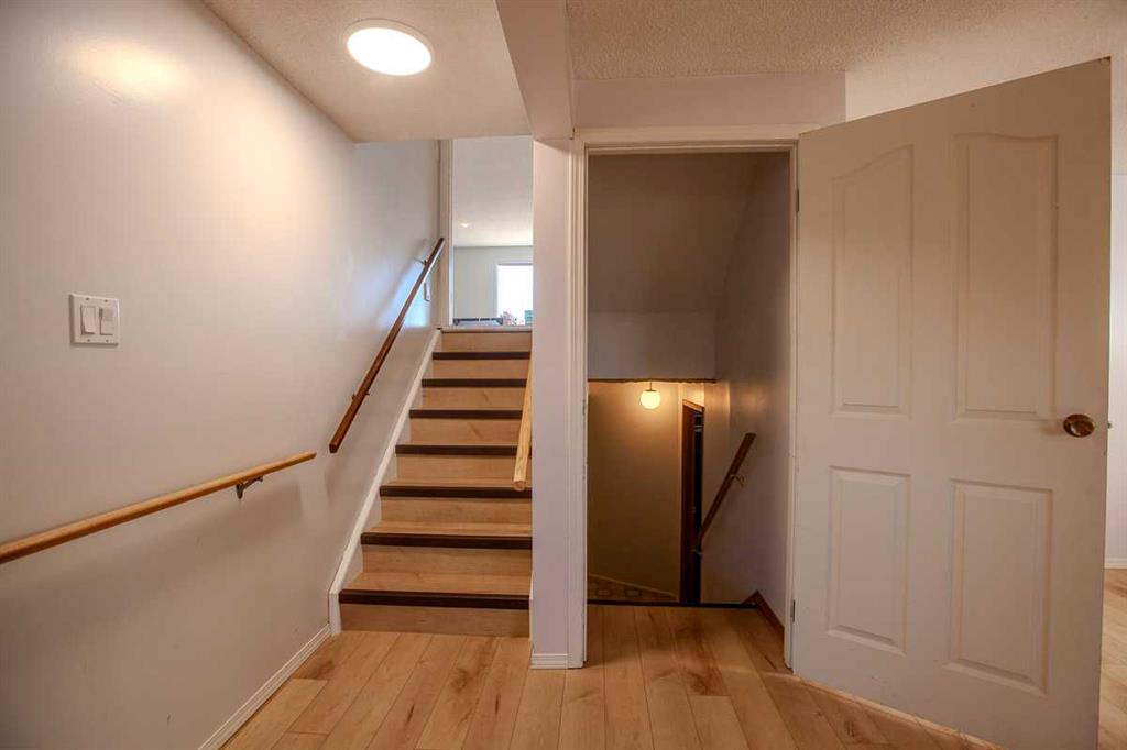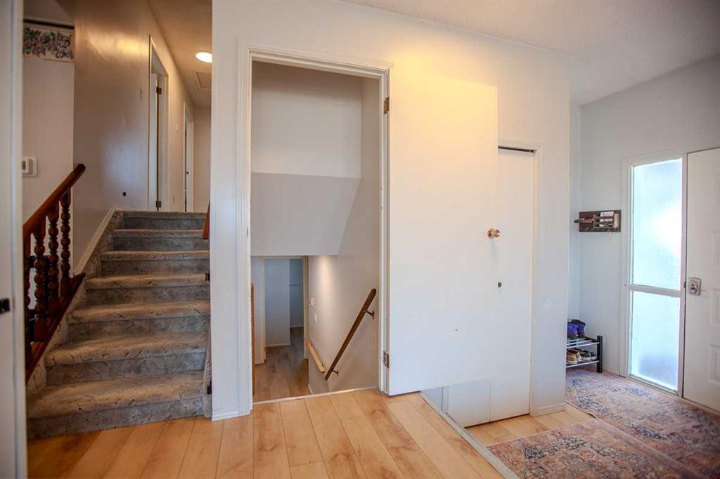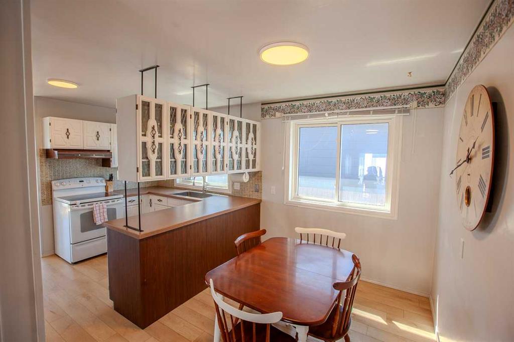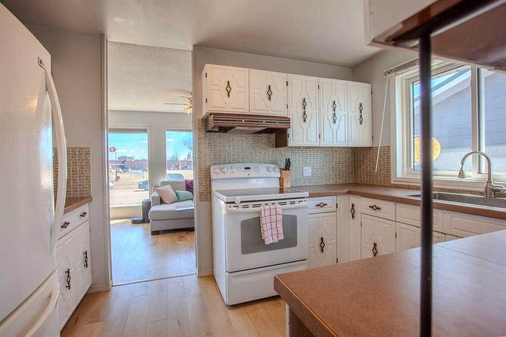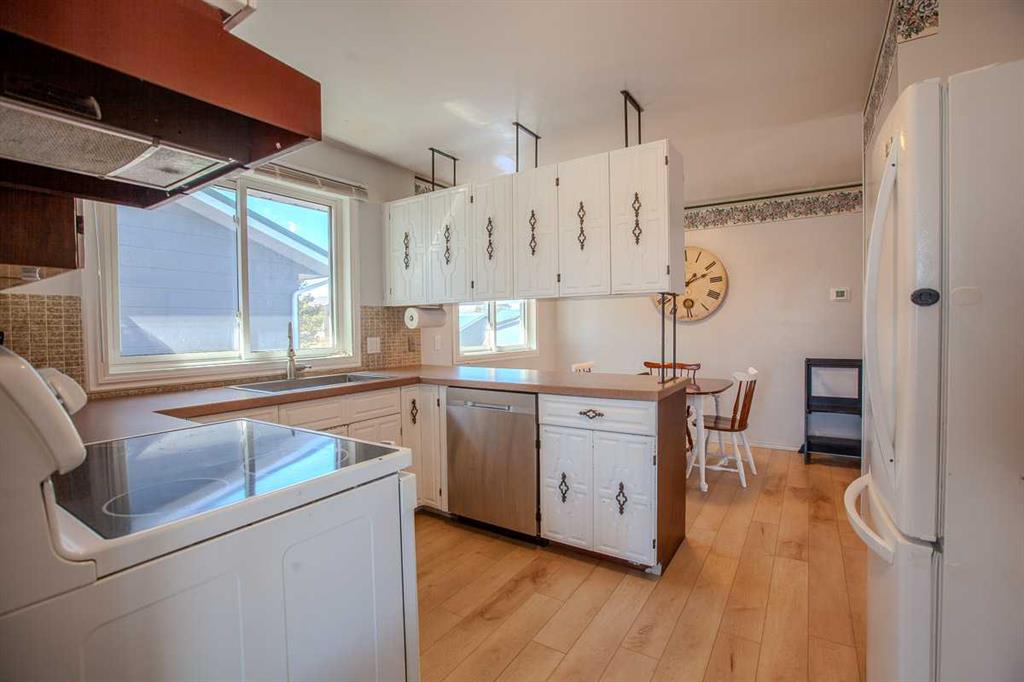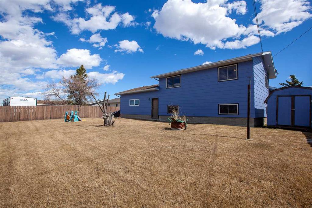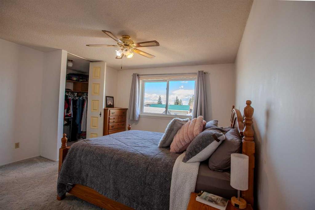 Bright and refreshed four-level split offering 1,340 sq. ft. above grade plus two developed lower levels. This home features new flooring on two levels, fresh exterior paint, an updated bathroom with a new shower/tub combo and fresh paint, plus a new garage door on the 24'x21' double garage. Laundry has been relocated to the basement with new machines for added convenience. The main floor is open and inviting with large windows and a cozy wood-burning fireplace. Upstairs offers three bedrooms including a primary with walk-in closet and 2-piece ensuite. The third level includes a spacious family room, fourth bedroom, full bath, and access to the attached double garage. Situated on a large, fully fenced lot backing onto a lane and located across from the hospital in Mayerthorpe—this bright, airy home offers great space and plenty of potential.