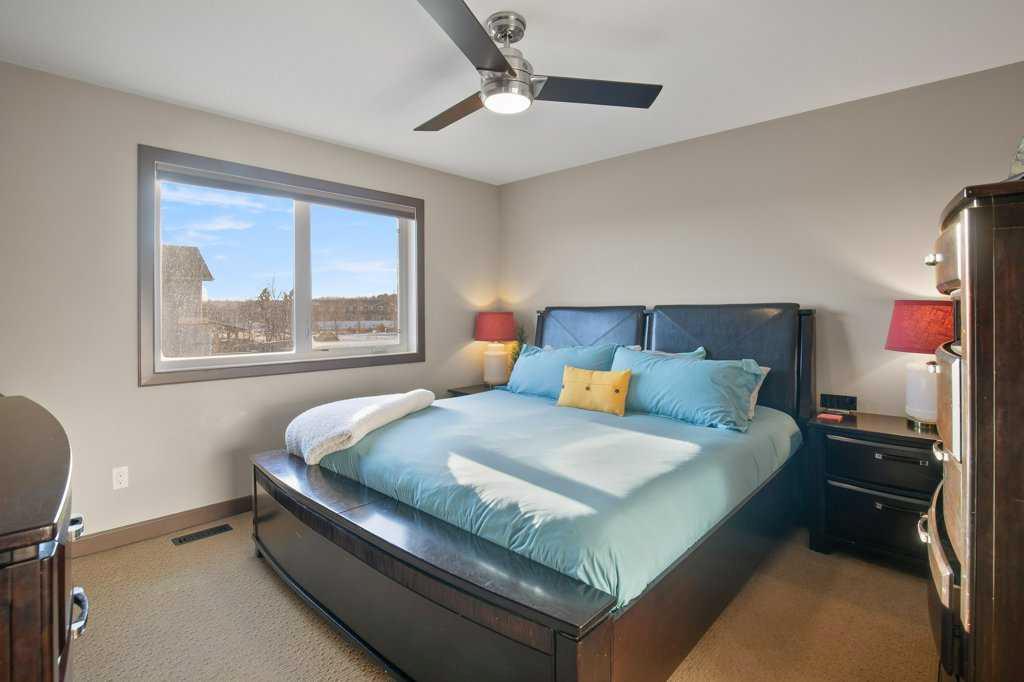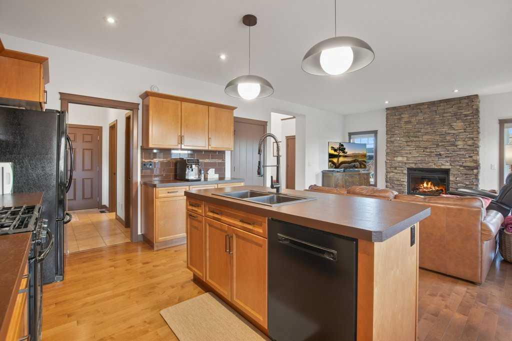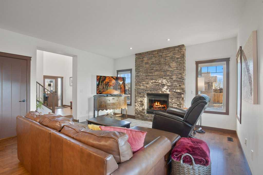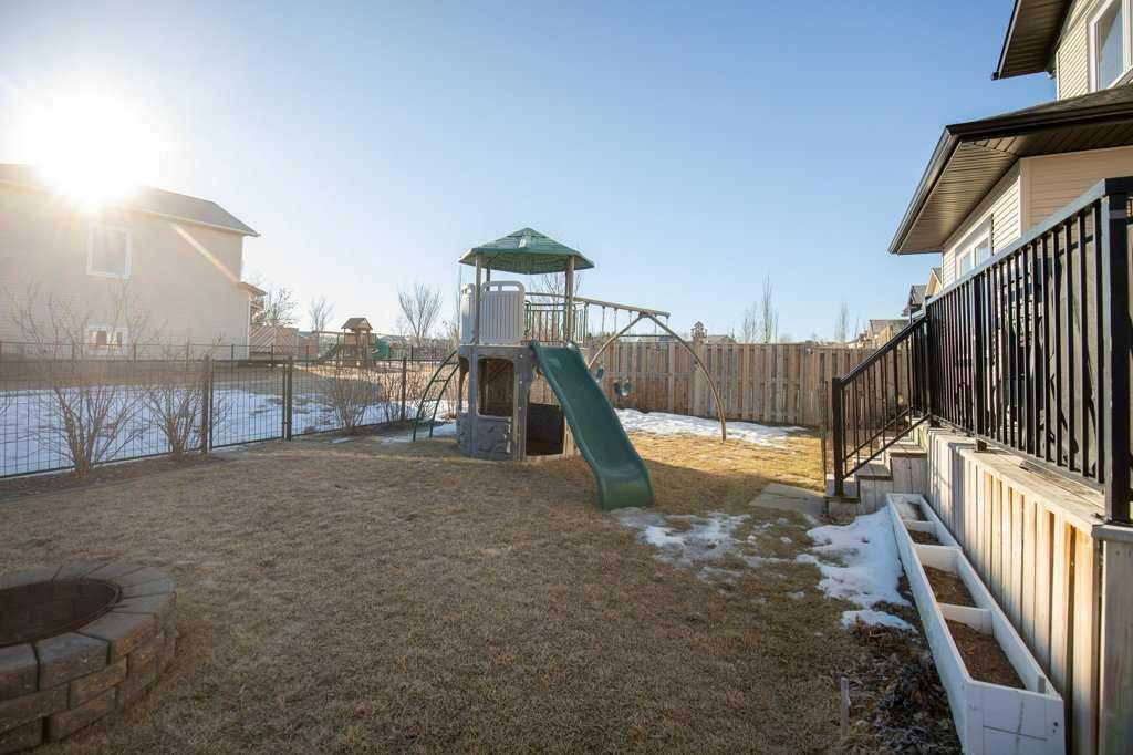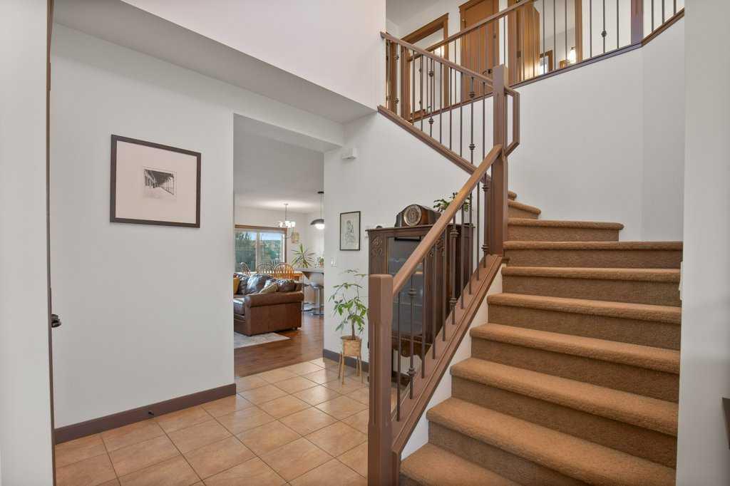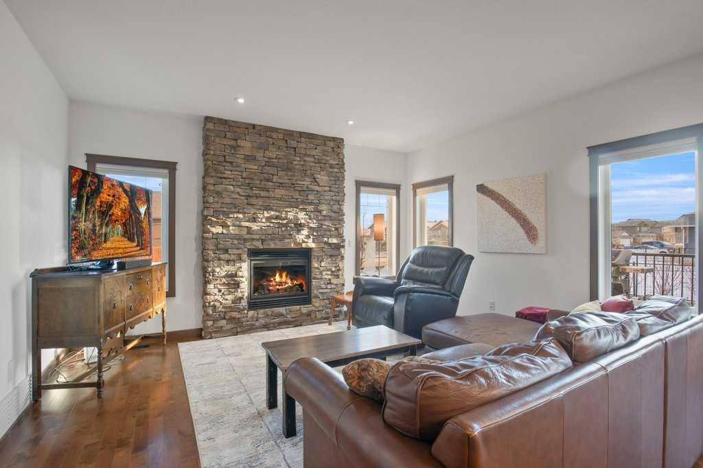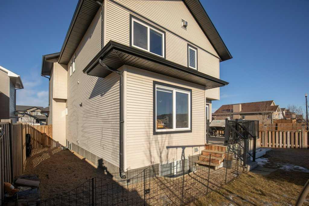 Warm earthy tones compliment this lovely CORNER LOT TWO-STORY. An elegant design that welcomes you with a large tiled entry. Soaring ceilings create a grand first impression, complimented by a striking staircase. Rich hardwood floors lead you to the heart of the home. The living room offers a stunning stone fireplace as it's focal point. The kitchen is beautifully designed with warm wood cabinetry and a convenient walk-thru pantry. The dining room gives you easy access to the large deck, complete with a gas line for grilling. The beautiful backyard is fully fenced and opens up to a gorgeous greenspace and pathway. Mature shrubs boarder the fence and provide additional privacy. Back inside, the second level is thoughtfully designed as a private family retreat. The spacious primary bedroom offers a true sanctuary, complemented by an expansive 5-piece ensuite. Unwind in the oversized soaker tub beside the glow of a gorgeous 2-sided fireplace that connects seamlessly to the bedroom. Two additional bedrooms and a 4-piece ensuite provide the necessities for the entire family. Laundry can also be found on this upper level. The fully finished basement extends the home's living space. The spacious family room is designed for comfort in every season, enhanced by the in-floor heating. Whether it is movie nights, game days, or simply relaxing, there is room for everyone to gather. Two generous bedrooms and a 4-piece bathroom offer accommodations for older children or company. The double attached garage provides plenty of indoor parking. Additional upgrades include the Renai System on Demand, a water softener, and Central Air. An exceptional home in a sought-after neighborhood, schedule your showing before it's gone!