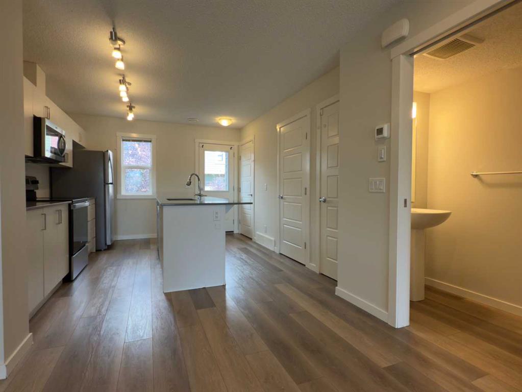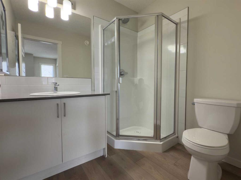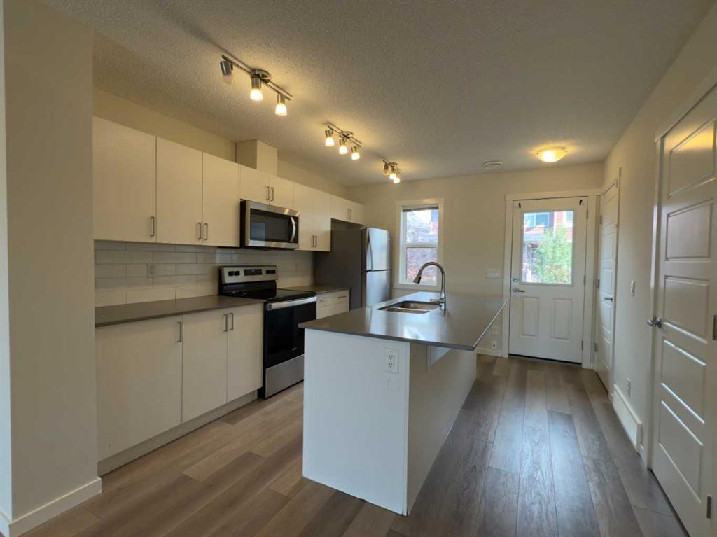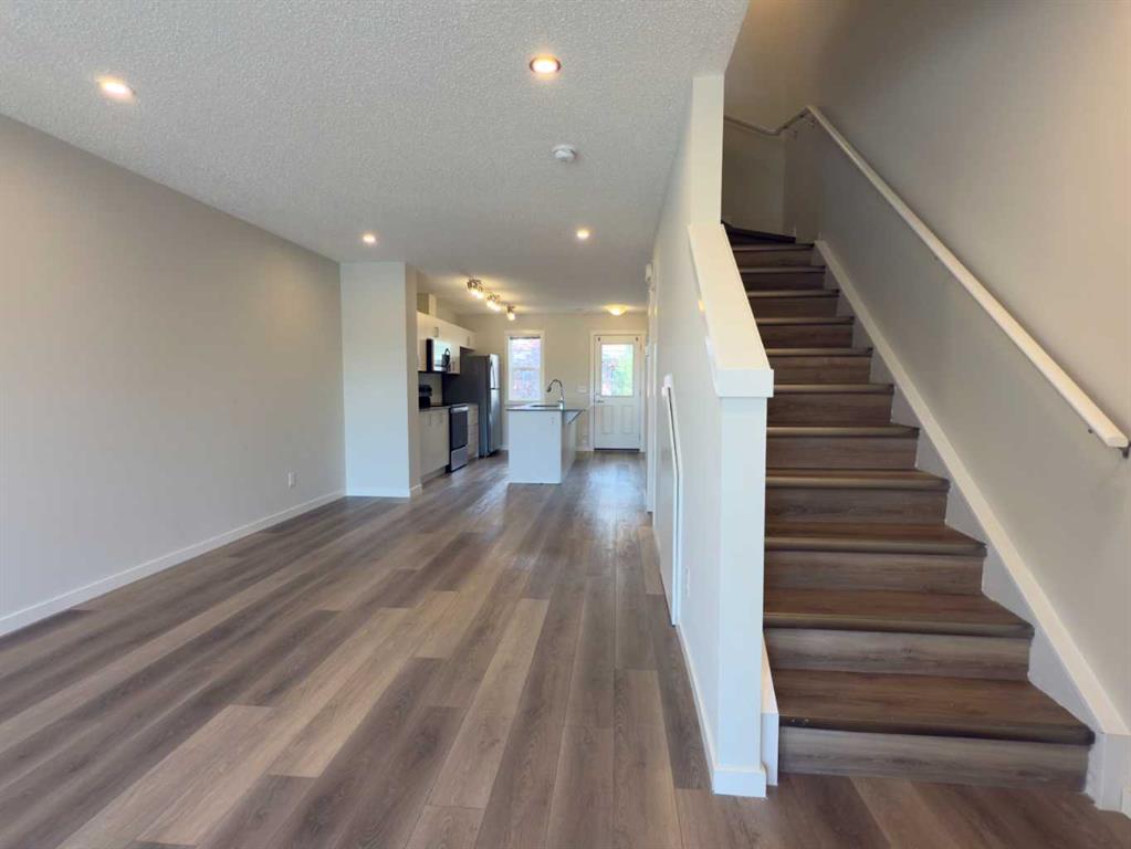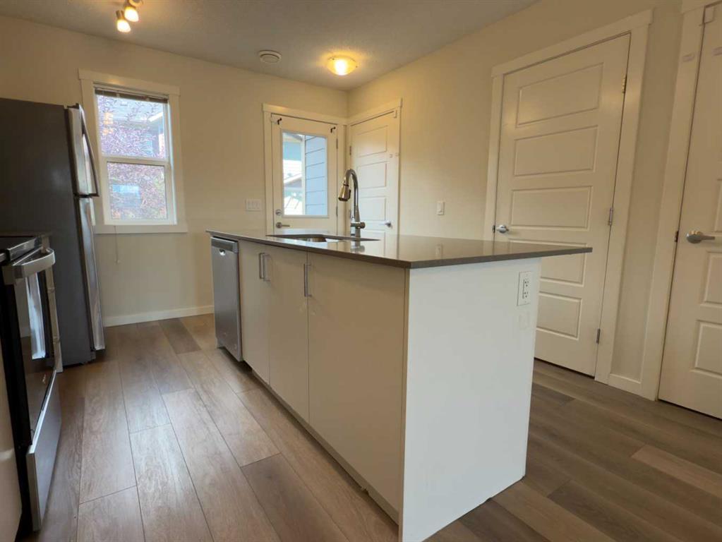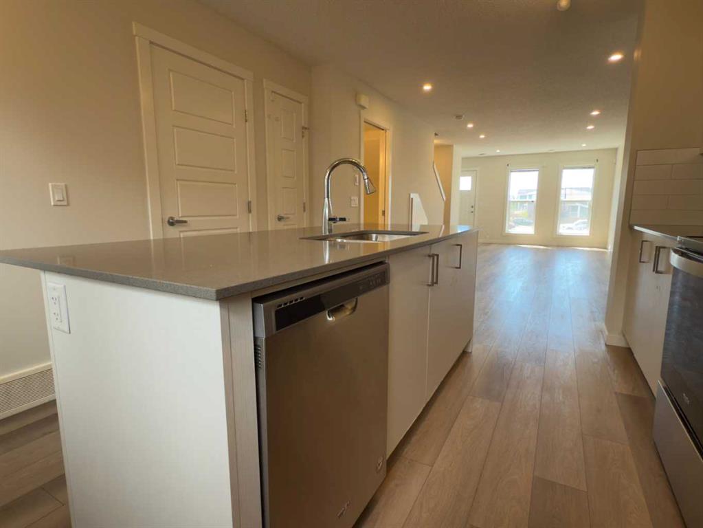 Welcome to 443 Cranbrook Square SE, wonderful 2 storey townhome in the highly sought-after community of Cranston’s Riverstone. Just steps away from Fish Creek Park, Bow River, surrounded with walking paths, this home offers a nature-filled, quiet location with all everyday conveniences close by. Step inside and you will be welcomed with huge open plan living room filled with natural light from large windows. Spacious white kitchen with pantry, central island, quartz counters and stainless-steel appliances offers abundance of space. Back door opens up to your private, fenced back yard with a wooden deck - backing on to a nice walking pathway. Upstairs you will find 2 spacious bedrooms, primary with nice 3 piece en-suite, 4 piece main bath and very convenient laundry room. This condo is equipped with large hot water tank, high efficiency furnace and central air ventilation system. Outdoor parking stall located just in front of the front steps offers easy access. Just minutes to Deerfoot and Stony Trail, Seton’s shopping, restaurants, all levels of schools, surrounded with peaceful nature of the river valley.
