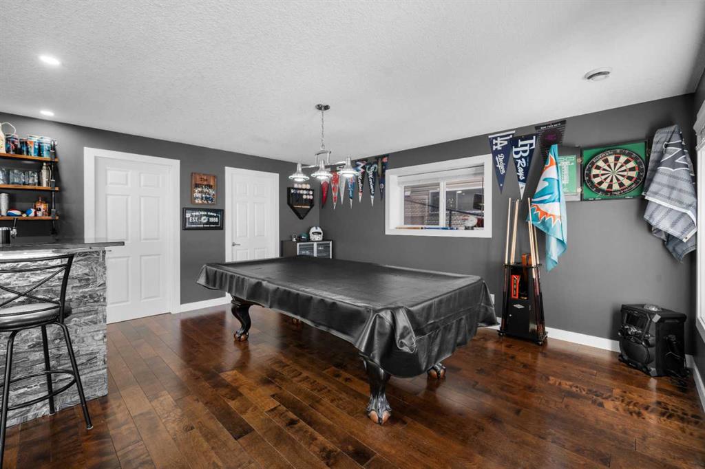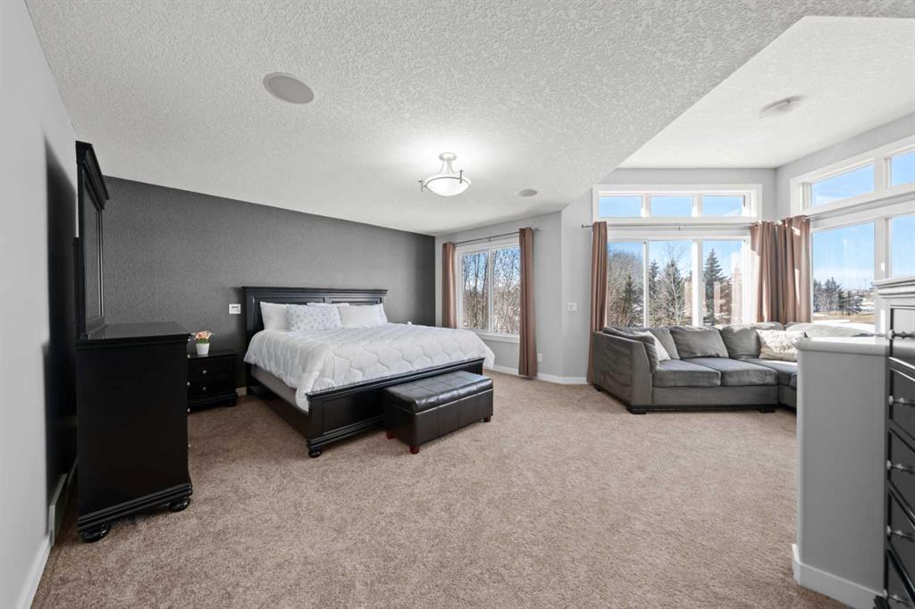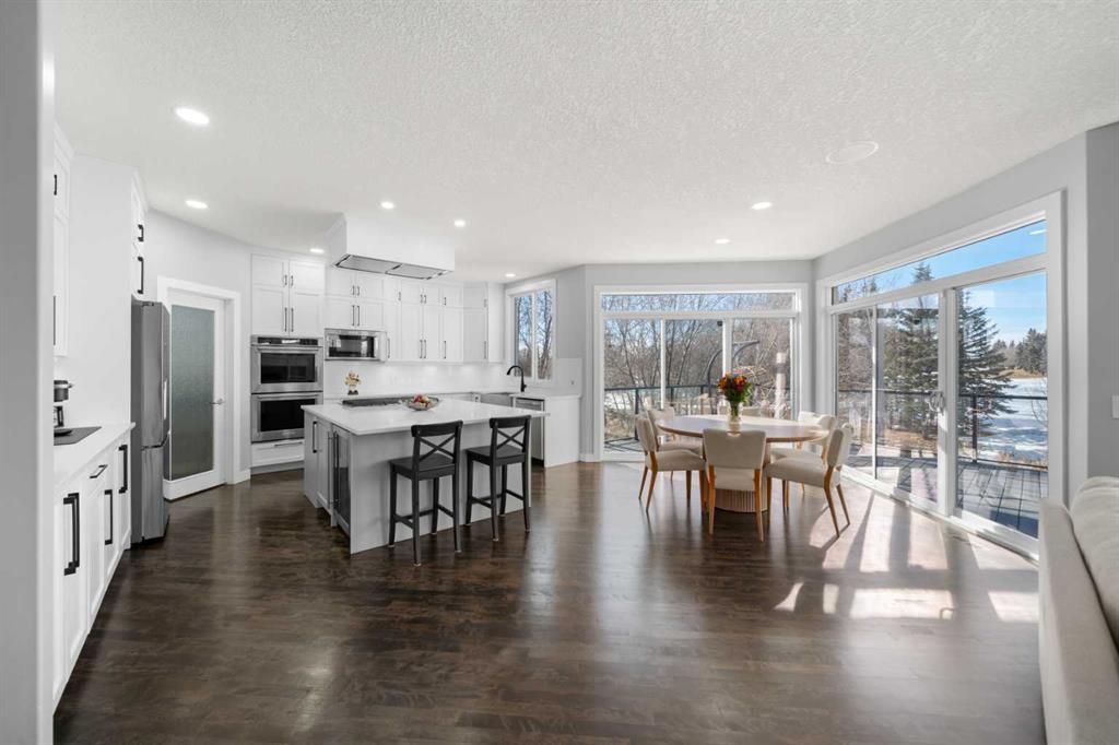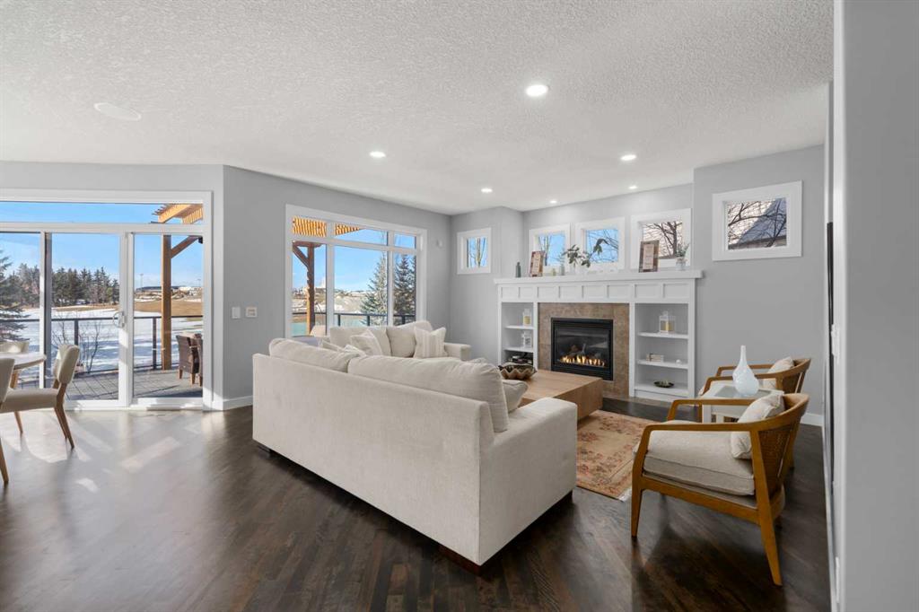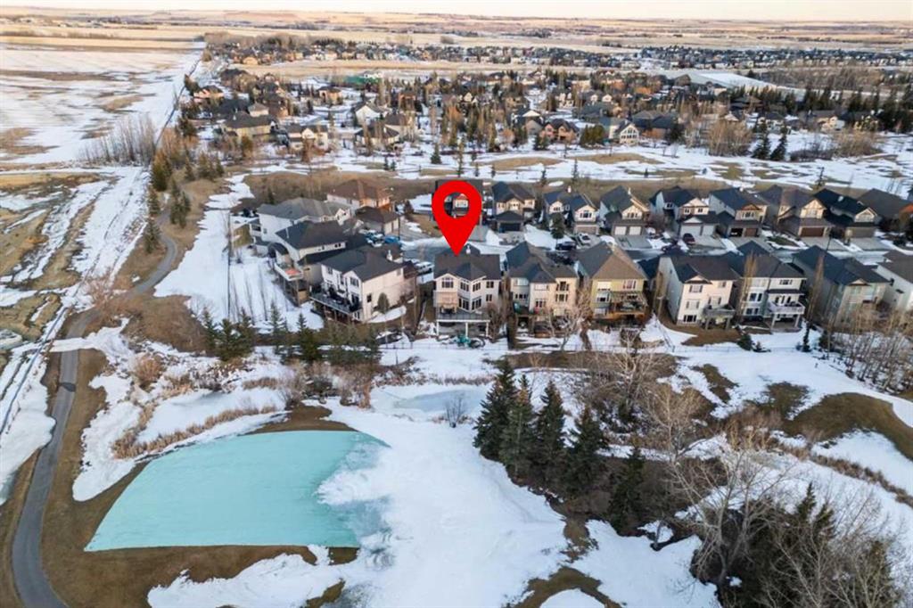 **OPEN HOUSE SUNDAY, MARCH 15 12-2pm** Welcome to this beautifully renovated, high-end walkout home backing west onto trees, a pond, and the 1st hole of Crystal Ridge Golf Club, with breathtaking mountain views and lake access to Crystal Shores. Tucked away in a quiet cul-de-sac, this home offers exceptional privacy and spectacular sunsets. The stunning renovated main floor showcases a showpiece kitchen with full-height white cabinetry, a massive island, 5-burner gas cooktop, double wall oven, smart fridge, quartz counters and walkthrough pantry. The expansive dining area is wrapped in natural light, with double patio doors opening onto the large west-facing deck complete with gazebo—perfect for alfresco dining while taking in unforgettable sunsets over the mountains. The inviting living room features gleaming hardwood floors and a beautiful fireplace. A private main floor office/den with built-in credenza offers the ideal work-from-home space. Completing this level is a well-designed mudroom/laundry room with sink and a stylish powder room. Upstairs you’ll find a vaulted bonus room ideally positioned to capture the views. The primary retreat is truly massive, featuring a generous sitting area to soak in the scenery. The ensuite features heated floors, jetted tub, oversized shower, dual vanities, private water closet and not one—but two—walk-in closets. Completing this floor are two additional generous bedrooms and a 4-piece bath. The renovated walkout basement is designed for entertaining, offering a huge family/games room with stacked stone wet bar, a fourth bedroom, 3-piece bath. Step outside to the expansive patio with hot tub or toast marshmallows over the firepit whilst enjoying the view—an incredible space to relax and host. Additional features include Central A/C, Gemstone lighting, built-in speakers, an oversized garage and lake privileges, this exceptional home combines luxury, location, and lifestyle. View 3D/virtual tour, then book your private showing!