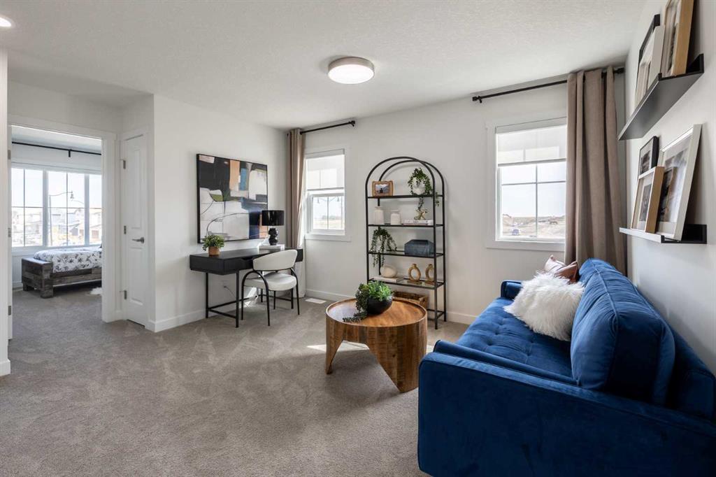 Welcome to the Douglas 22 in Heartland, Cochrane—a thoughtfully designed home offering 1,818 sq ft of stylish, functional living in one of Cochrane’s most family-friendly communities. Surrounded by parks, pathways, and scenic views, Heartland is the perfect place to put down roots. This home features a bright open-concept main floor with 9’ ceilings and beautiful French-imported laminate flooring, creating a warm and cohesive living space. The modern kitchen is finished with quartz countertops, ample cabinetry, and seamless flow into the dining and living areas—ideal for everyday living and entertaining alike. Vinyl tile flooring in all wet bathrooms adds durability and practicality where it matters most. Upstairs, you’ll find three spacious bedrooms, a versatile bonus room perfect for family time or a home office, and the convenience of second-floor laundry. The layout is designed to grow with you, offering both comfort and flexibility for busy households. Additional highlights include a separate side entrance for future potential and a rear parking pad, providing convenient off-street parking. A well-balanced home that blends modern finishes, smart design, and a welcoming community—this is Heartland living at its best. **PICTURES ARE OF SHOW HOME; ACTUAL HOME, FIXTURES, FINISHES, ETC. MAY VARY AND ARE SUBJECT TO AVAILABILITY/CHANGE WITHOUT NOTICE**