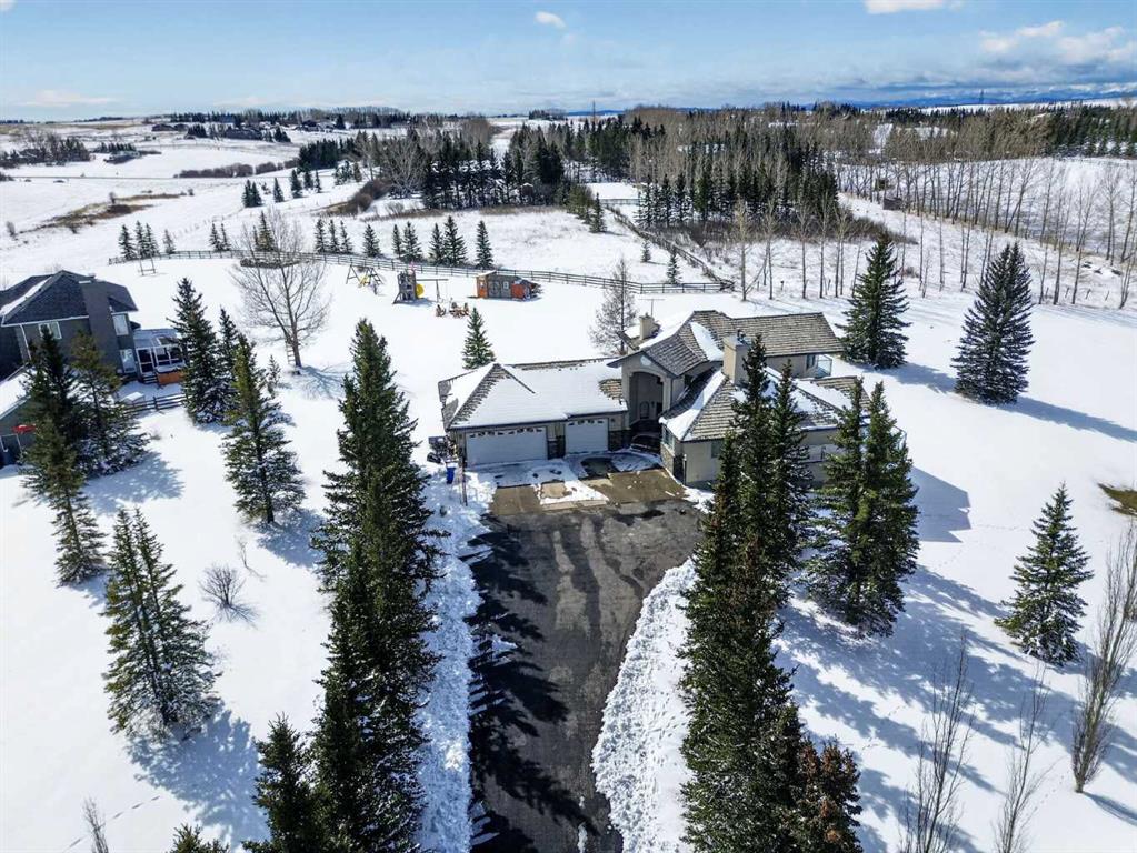 4 BEDROOMS | 3 BATHROOMS | 3-CAR GARAGE | 2 ACRES | MINUTES TO CALGARY | MOUNTAIN VIEWS| OPEN HOUSE ON MAY 2 (1PM - 3PM) - Welcome to this spectacular acreage property at 45 Country Lane Drive — 2 acres of breathtaking country living, just 20 minutes from downtown Calgary. From the moment you arrive, pride of ownership and exceptional craftsmanship are evident throughout. The thoughtfully designed kitchen features an octagonal breakfast nook perfectly positioned to frame stunning mountain views — a daily reminder of why you chose this lifestyle. The classic formal dining room flows seamlessly to a walk-out wrap-around deck, ideal for entertaining or simply soaking in the tranquil surroundings. With 2,175 sq. ft. of RMS living space spread across three levels, this home offers both grandeur and warmth. Three fireplaces — one on each level — create an inviting atmosphere that makes every corner of this home feel like a retreat. The house is fully air-conditioned. The lower level adds even more versatility with a games room and spa, perfect for relaxation or hosting guests. The oversized 3-car garage provides exceptional storage and functionality, while acreage offer incredible future potential. Whether you're dreaming of space to breathe, room to grow, or the serenity of rural Rocky View County living — this property delivers it all. A rare opportunity to own a truly one-of-a-kind acreage property with the convenience of city proximity. Don't miss it.