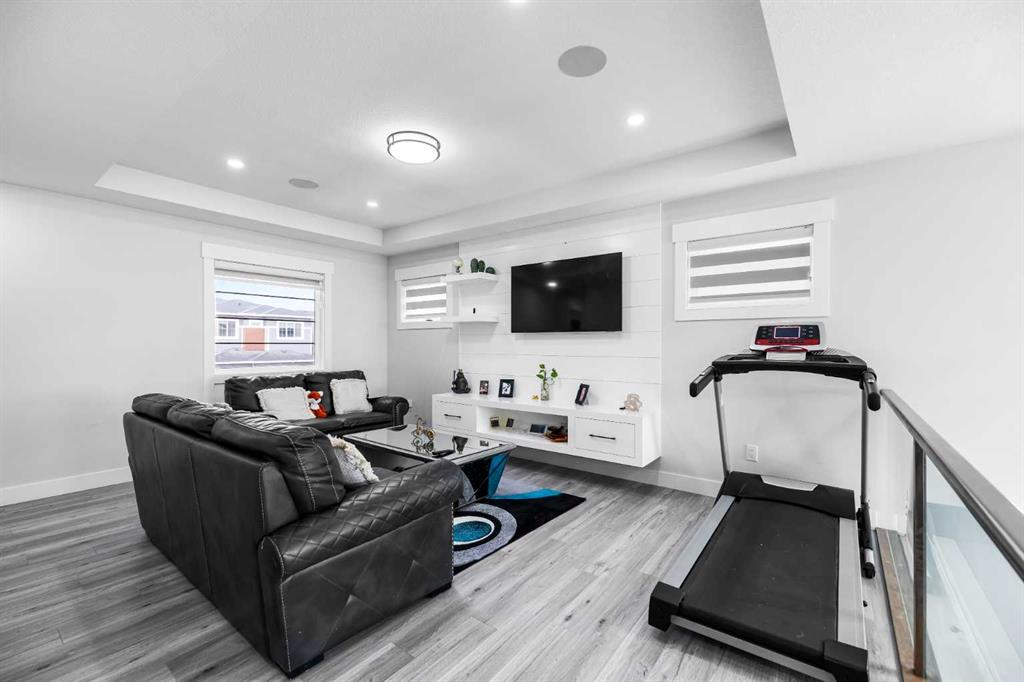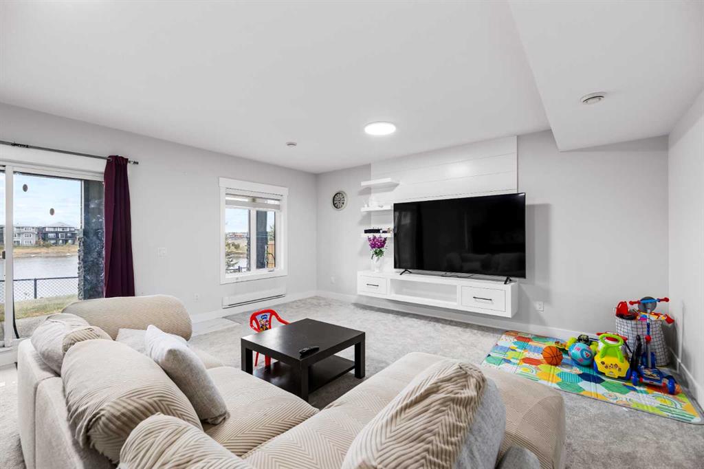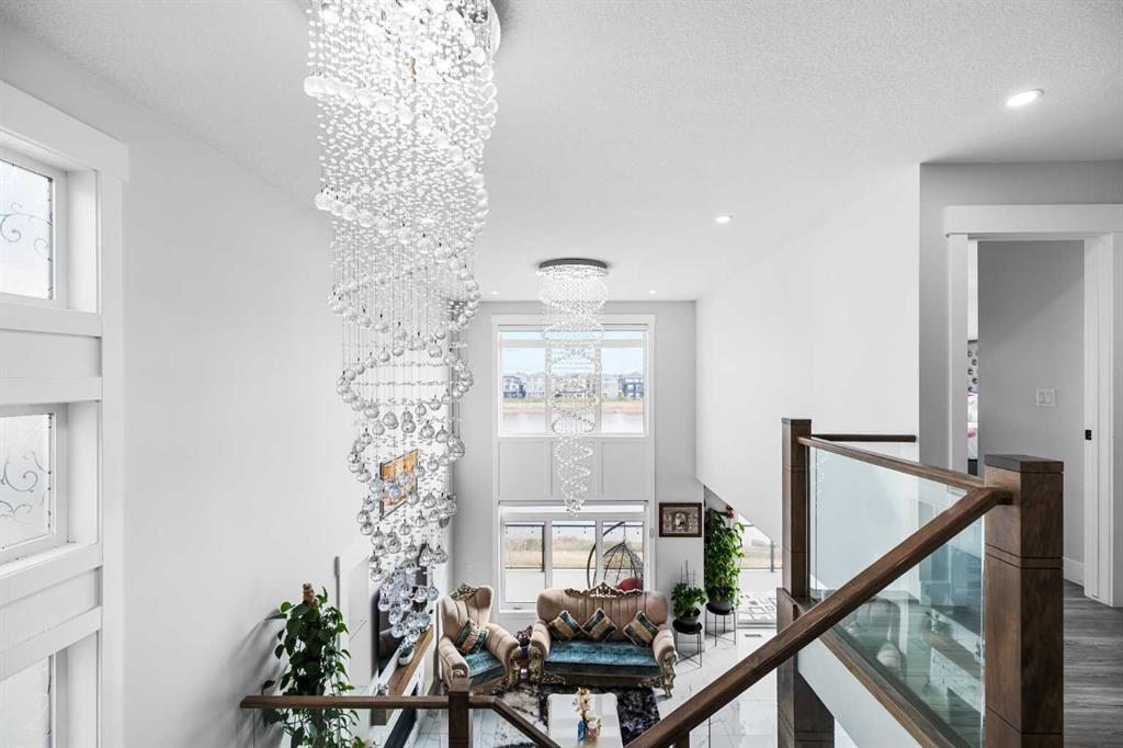 Experience waterfront luxury in this recently completed custom build on a premium, extra large 50-ft walkout lot. Backing onto tranquil waterfront and scenic pathways in Chestermere’s Waterford community, this home showcases over 4,500 sq ft of living space, and $150K in premium builder upgrades. The main level features large format polished marble tile, a chef’s kitchen with maple cabinetry, marble countertops, and a spice kitchen fully equipped with upgraded appliances. An elegant living area with gas fireplace, beautiful open-tread staircase, and a full width glass-railed deck overlooking the water. Upstairs includes a family room overlooking the open-to-below great room, four bedrooms, a spa-inspired primary ensuite, a junior primary with ensuite, and large laundry with a sink and extra storage. The walkout basement is an illegal suite, fully developed by the builder to match the professional craftsmanship of the upper levels—perfect for multi-generational living or rental income. Complete with a triple car garage, dramatically impressive lighting upgrades, and extensive maple millwork and custom feature walls, this home defines modern waterfront living in Chestermere.