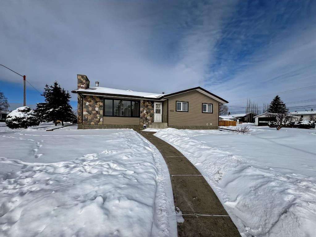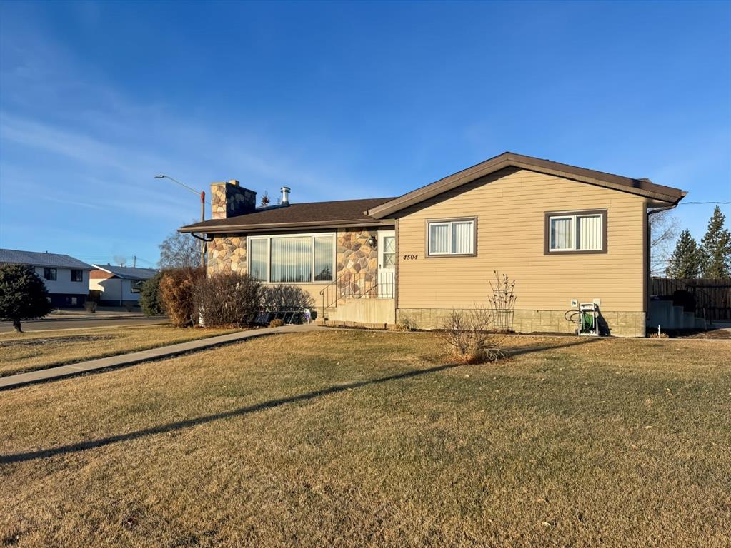 Welcome to this beautifully maintained, one-owner home in the heart of Mayerthorpe — proudly offered for sale for the very first time. Ideally located directly across from the hospital and just minutes from schools and shopping, this property combines convenience with timeless charm. You’re welcomed by a spacious front entry featuring a convenient 2-piece bath — perfect for guests or a quick clean-up after enjoying the outdoors. The vintage kitchen is full of character and comes equipped with newer appliances (updated within the last five years). The adjoining dining area is ideal for family dinners and entertaining, complete with fantastic built-ins that provide both additional storage and the perfect place to showcase decorative pieces. The bright front living room is flooded with natural light and centered around a beautiful fireplace, creating a warm and inviting focal point for gathering with family and friends. The main level offers three comfortable bedrooms, a large 4-piece bathroom, and plenty of storage throughout. Downstairs, the basement has long been the hub of family gatherings. This expansive space is perfect for movie nights, games, or even adding a pool table. A second wood-burning fireplace adds warmth and ambiance to the lower level. You’ll also find an additional 2-piece bath, utility room, and extra storage including cold storage. This home has seen numerous updates over the years, including exterior improvements such as siding, roof, eavestroughs, and main-level windows. Inside, the basement features new laminate flooring and a brand-new hot water tank for added peace of mind. Situated on a generous 9,000 sq. ft. corner lot, there’s ample room for extra parking and the potential to build a garage. The yard is landscaped with mature trees and shrubs, complemented by concrete walkways that add both charm and functionality. A rare opportunity to own a solid, lovingly cared-for home in an unbeatable location — ready to welcome its next family.