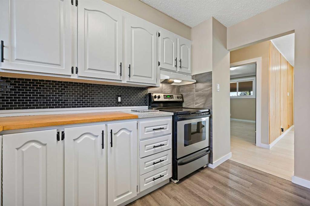 Welcome to 4524 Fordham Crescent – a beautifully updated bungalow offering the perfect blend of mid-century charm and modern upgrades. Built in 1962, this home has been thoughtfully refreshed with brand new vinyl plank flooring and fresh paint throughout, creating a warm and welcoming space for your family. The open-concept living and dining area is flooded with natural light through a large front window, making it the ideal space to relax or entertain. With 3 bedrooms and a full 4-piece bathroom featuring a jetted bathtub, comfort and functionality meet style in every corner. The kitchen has been recently upgraded, showcasing granite countertops, a wood butcher block accent, stainless steel appliances, and ample cabinetry—perfect for any home chef. Enjoy additional updates like new baseboards and touches of wood paneling that bring texture and charm. The primary bedroom features a generous closet, and the full undeveloped basement provides endless possibilities for future development—whether you envision a recreation space, home gym, or more. The basement also features a brand new electrical panel and new furnace, offering modern efficiency and peace of mind for years to come. The oversized garage is a true bonus, complete with stone siding, a wood-burning stove (as-is), and a gas line, making it a dream setup for car hobbyists or workshop lovers. There’s also RV parking and plenty of driveway space for all your toys. The private backyard is a peaceful retreat, framed by mature pine trees that bring timeless character and beauty. Stone siding carries through the exterior for a cohesive look that stands out in the neighborhood. This is an excellent family home offering space, comfort, and flexibility in a quiet, established area. With exceptional value and quality upgrades throughout, 4524 Fordham Crescent is ready to welcome its next chapter.