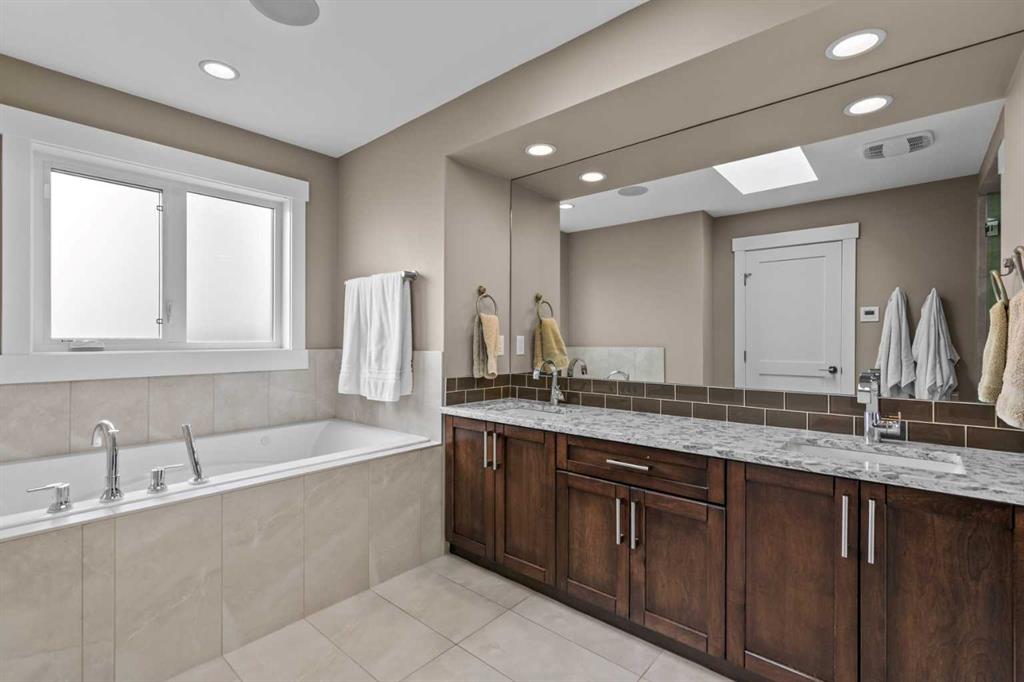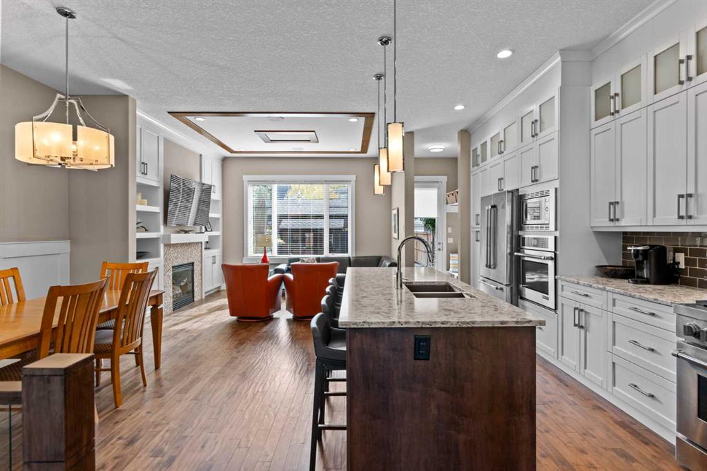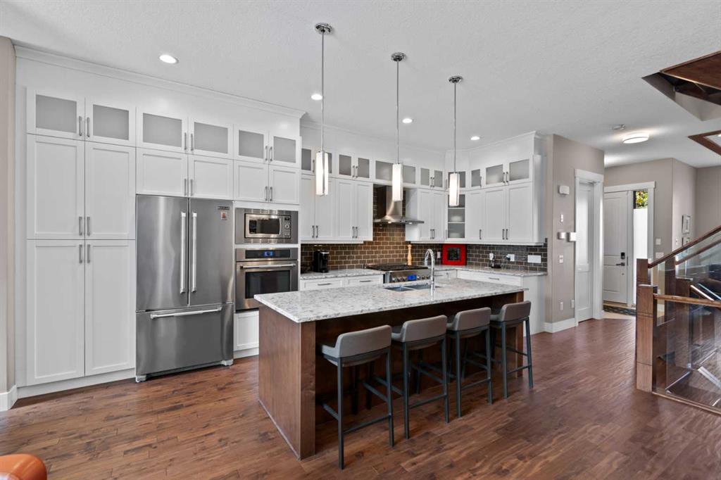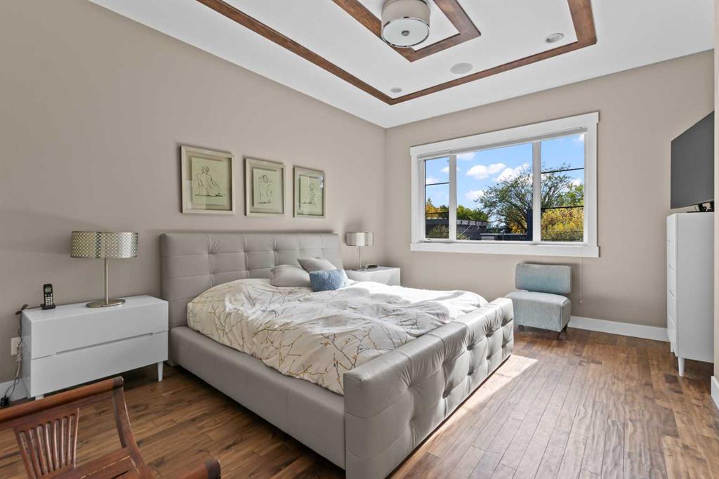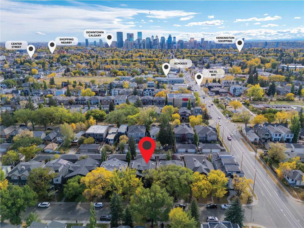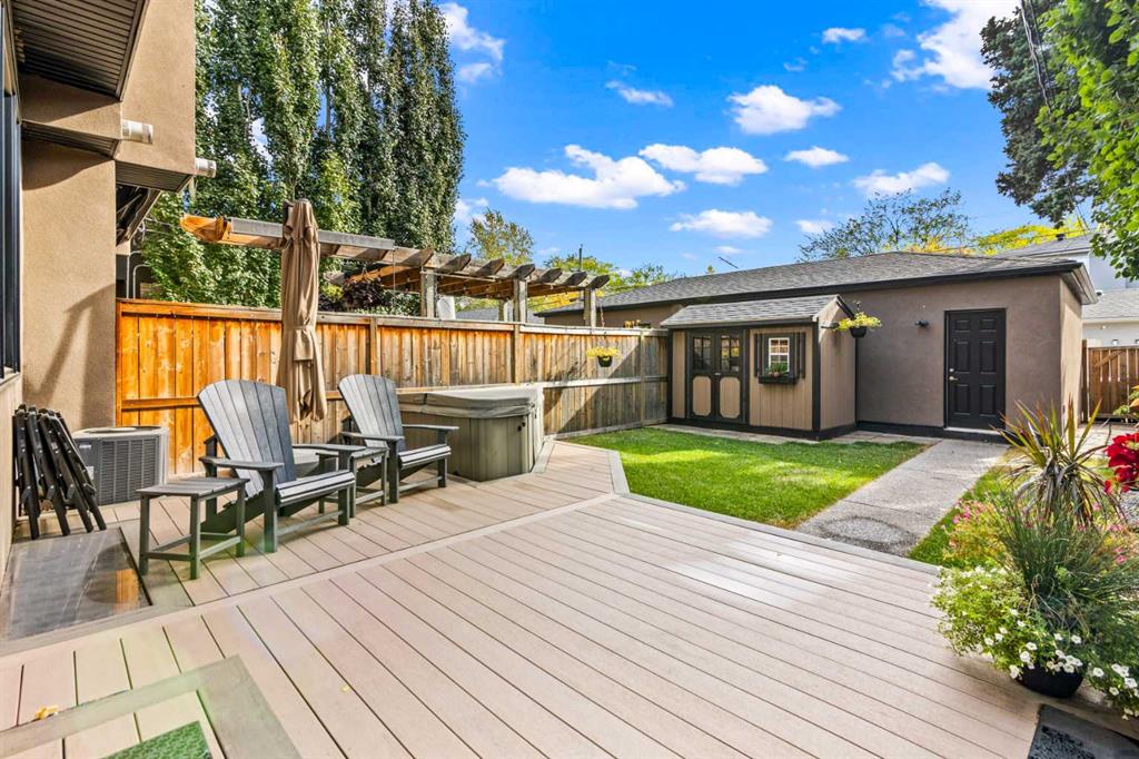 Welcome to this exceptional home in the highly sought-after community of Mount Pleasant, offering more than 2,800 sq. ft. of beautifully finished living space crafted for both comfort and style. Main Level -- Step inside to an inviting open-concept main floor with oversized windows that flood the home with natural light. The space features gleaming hardwood floors, a striking open-rise staircase, family room/office space and a sophisticated dining area. The spacious living room is anchored by a stone-faced fireplace with a built-in Rus sound system, creating a warm and elegant gathering space. The gourmet kitchen is a chef’s dream, equipped with a 6-burner gas stove, built-in convection wall oven, quartz countertops, abundant cabinetry, and a large central island—perfect for entertaining and everyday living. Upper Level -- Retreat to the luxurious primary suite, complete with a tailored walk-in closet, built-in speakers, and a luxury 5-piece ensuite with skylight, featuring dual vanities, a jetted tub, a large steam shower, and in-floor heating. Two sizable additional bedrooms, a full bath, and a convenient upper-level laundry room with built-in storage complete this level. Lower Level -- The fully developed basement extends your living space with in-floor heating, a large rec room with a built-in, a wet bar with beverage fridge and built-in wine holder, plus a fourth spacious bedroom, full bath with large shower, and ample storage. The home is equipped with central air conditioning, a large water heater, and a new roof (2022) with upgraded attic vents. Outdoor Oasis -- Step outside to your private backyard retreat, featuring a large composite deck, built-in hot tub, professional landscaping, and a 10' x 6' shed with skylight designed by Shed Solutions. The double detached garage is insulated, drywalled, painted, and finished with an epoxy floor and 8-ft door. Prime Location -- This exceptional property is ideally located just minutes from Confederation Park, Mount Pleasant Art Centre, University of Calgary, Nose Hill Park, golf courses, the Winter Club, and an array of local shops and cafes. Families will love being within walking distance of schools, parks, and playgrounds, with an easy commute to downtown. This beautiful Mount Pleasant home has it all—modern design, thoughtful upgrades, and an unbeatable location. Don’t miss your chance to make it yours!