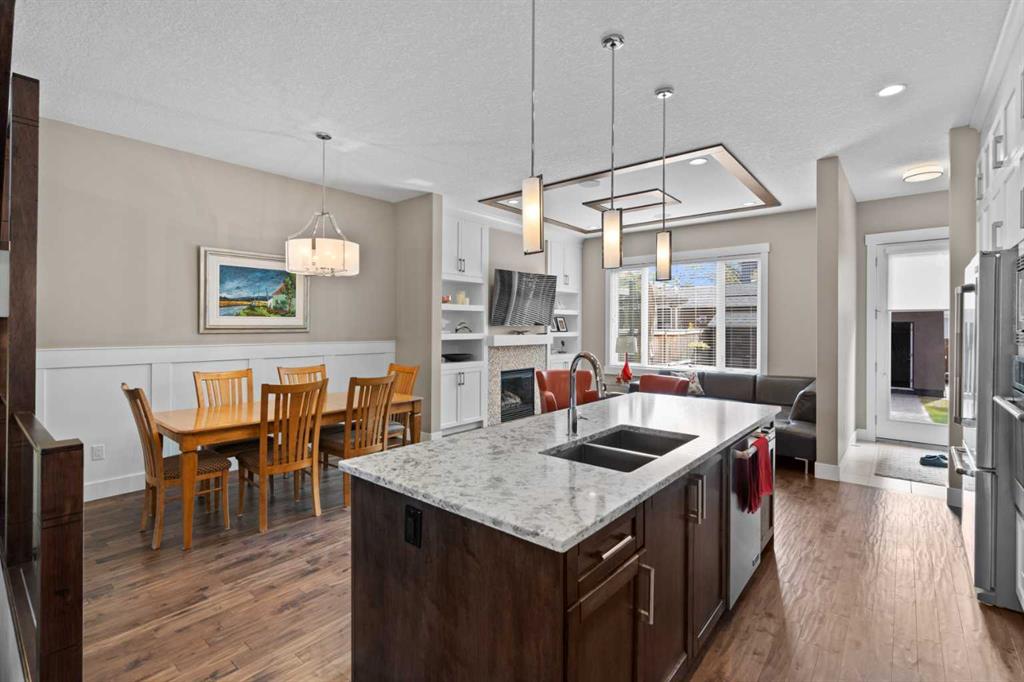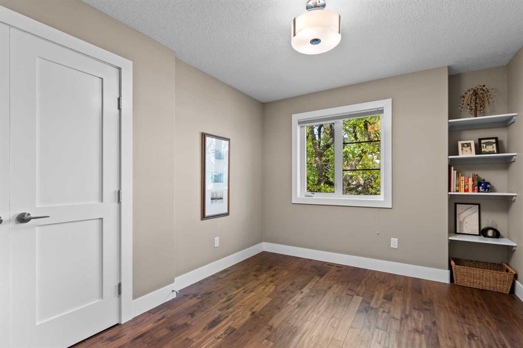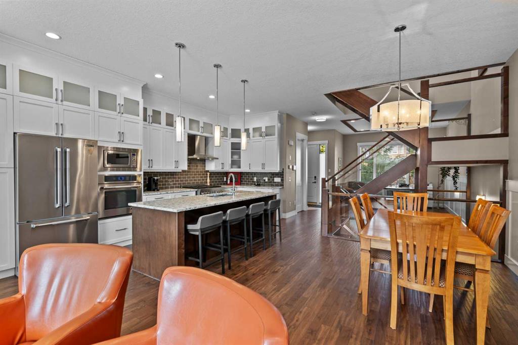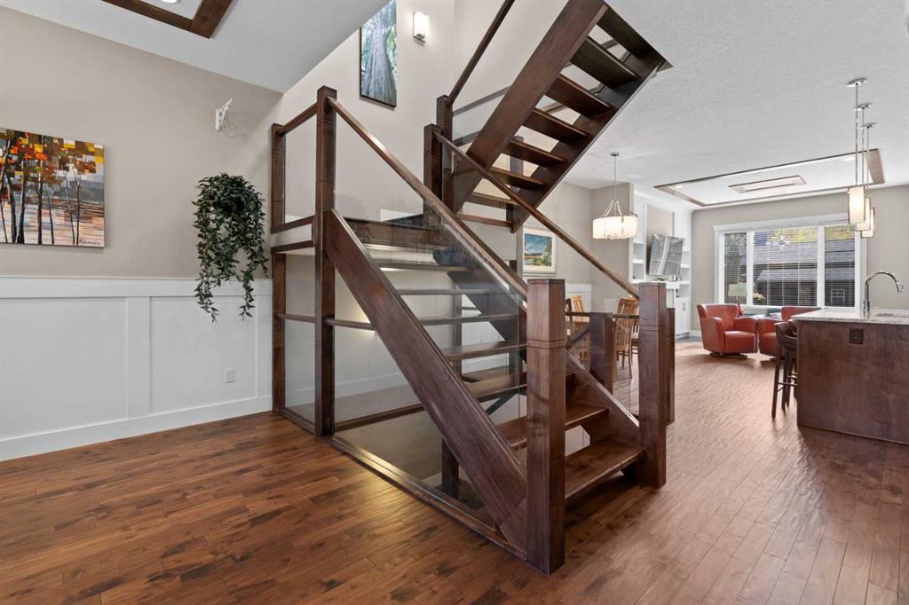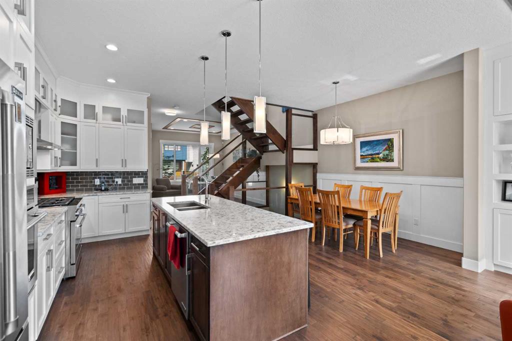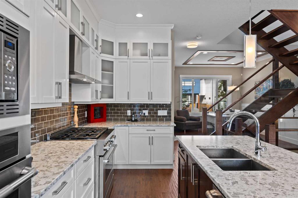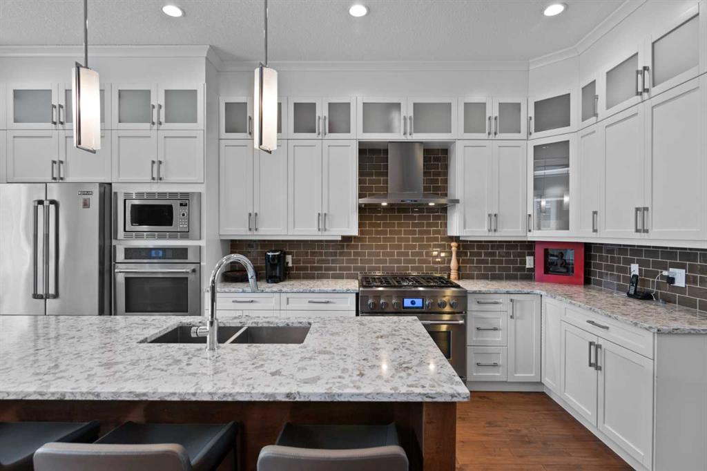 Welcome to this exceptional home in the highly sought-after community of Mount Pleasant, offering more than 2,800 sq. ft. of beautifully finished living space crafted for both comfort and style. Main Level -- Step inside to an inviting open-concept main floor with oversized windows that flood the home with natural light. The space features gleaming hardwood floors, a striking open-rise staircase, family room/office space and a sophisticated dining area. The spacious living room is anchored by a stone-faced fireplace with a built-in Rus sound system, creating a warm and elegant gathering space. The gourmet kitchen is a chef’s dream, equipped with a 6-burner gas stove, built-in convection wall oven, quartz countertops, abundant cabinetry, and a large central island—perfect for entertaining and everyday living. Upper Level -- Retreat to the luxurious primary suite, complete with a tailored walk-in closet, built-in speakers, and a luxury 5-piece ensuite with skylight, featuring dual vanities, a jetted tub, a large steam shower, and in-floor heating. Two sizable additional bedrooms, a full bath, and a convenient upper-level laundry room with built-in storage complete this level. Lower Level -- The fully developed basement extends your living space with in-floor heating, a large rec room with a built-in, a wet bar with beverage fridge and built-in wine holder, plus a fourth spacious bedroom, full bath with large shower, and ample storage. The home is equipped with central air conditioning, a large water heater, and a new roof (2022) with upgraded attic vents. Outdoor Oasis -- Step outside to your private backyard retreat, featuring a large composite deck, built-in hot tub, professional landscaping, and a 10' x 6' shed with skylight designed by Shed Solutions. The double detached garage is insulated, drywalled, painted, and finished with an epoxy floor and 8-ft door. Prime Location -- This exceptional property is ideally located just minutes from Confederation Park, Mount Pleasant Art Centre, University of Calgary, Nose Hill Park, golf courses, the Winter Club, and an array of local shops and cafes. Families will love being within walking distance of schools, parks, and playgrounds, with an easy commute to downtown. This beautiful Mount Pleasant home has it all—modern design, thoughtful upgrades, and an unbeatable location. Don’t miss your chance to make it yours!