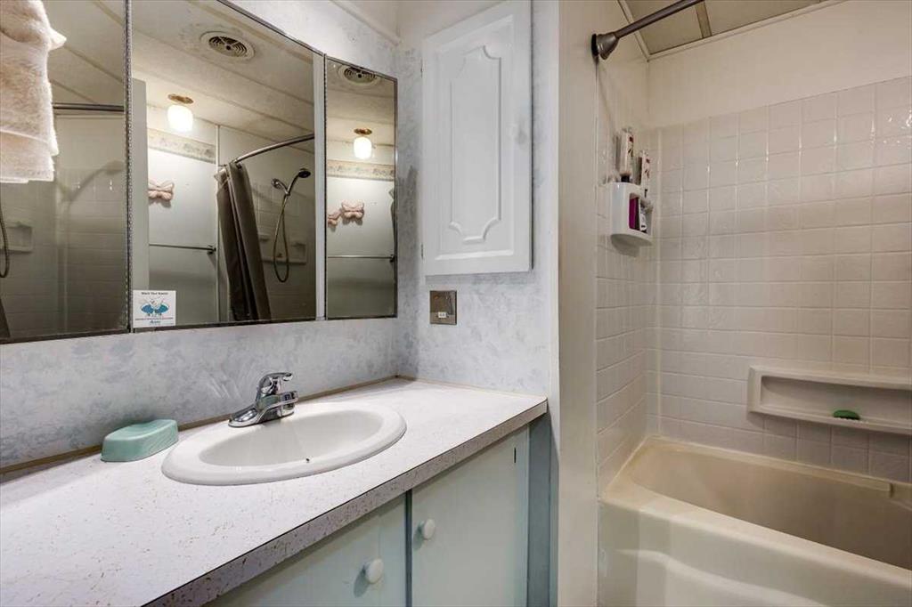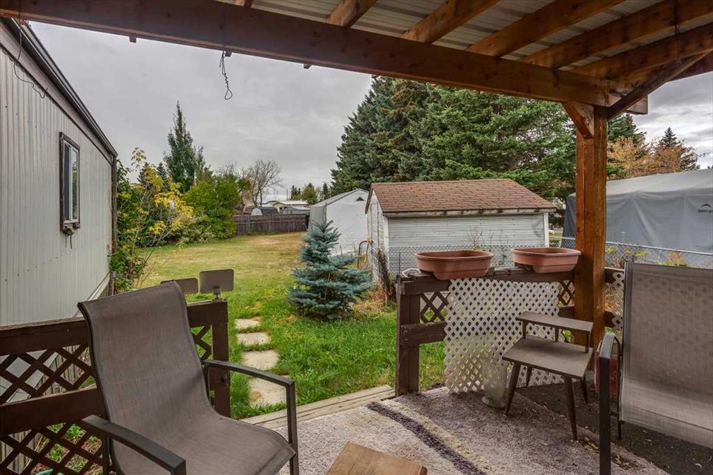 Affordable Living with an Oversized Lot! Check out this 3 Bedroom, 2 Bathroom Mobile with covered decks on each side of the home. Back yard has back alley access to the more than full sized lot that includes a Fire-pit, Tarp Shed, Shed, and plenty of trees throughout the fully fenced yard. Inside you'll find a functional open layout, including a large living room area, large kitchen with pantry, and plenty of white cabinets. There's also a 3 piece ensuite in the Primary Bedroom, full laundry closet, along with a 4 piece bathroom, and two more bedrooms (one is currently being used as an office). Additional features include a 50 Amp RV plug in, power to the shed & tarp shed (garage).