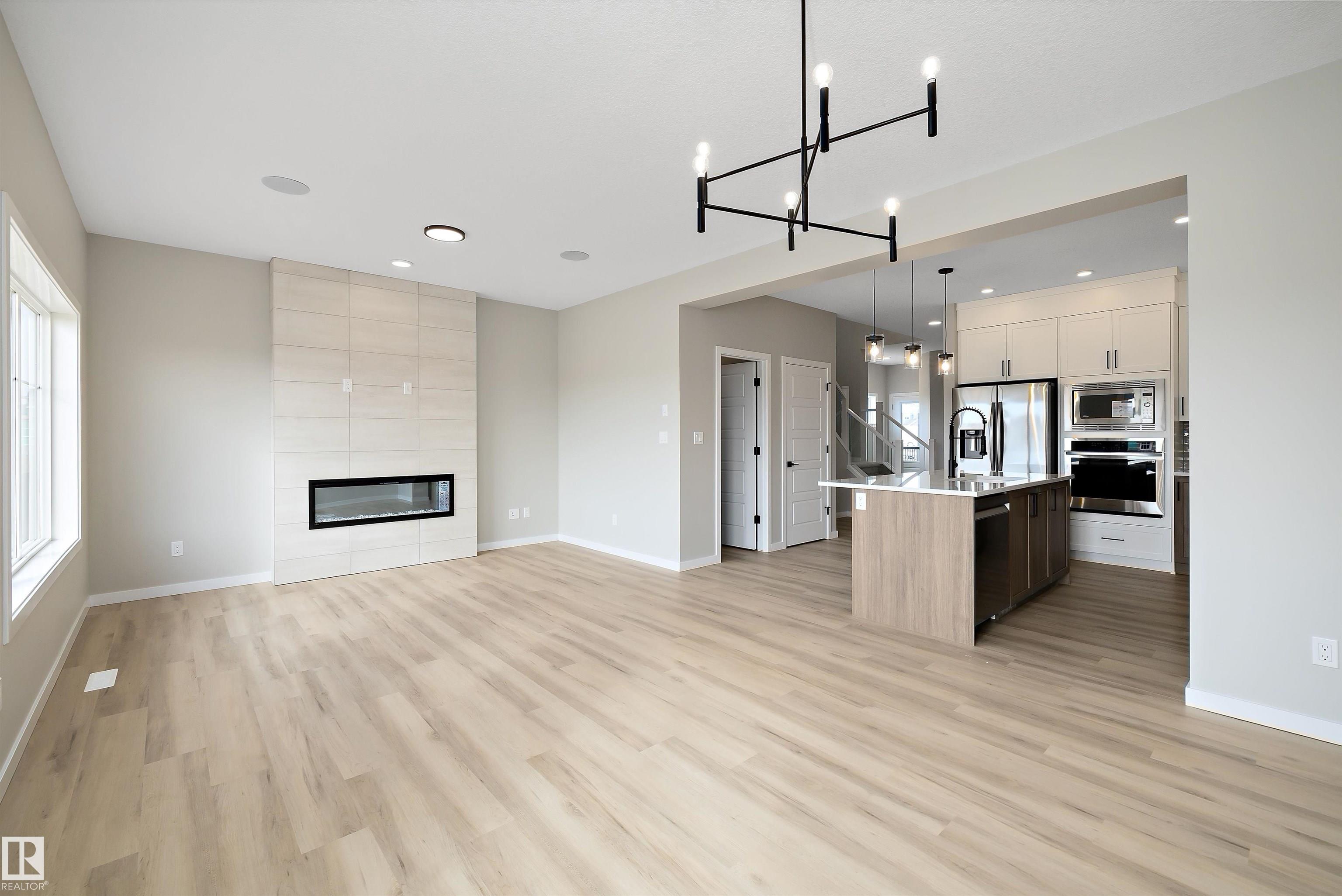 Welcome to 4544 Kinsella Link SW in Keswick Landing! This brand-new 2-storey walkout home backs onto a lake and offers over 2,200 sq ft of modern living with 3 bedrooms, 3 full baths, and a separate side entrance for future suite potential. The main floor boasts an open-concept design with wide plank flooring, a bright great room with fireplace, dining area, and chef’s kitchen featuring upgraded level 3 finishes, quartz countertops, oversized island, premium appliances, and abundant storage. A full bath and glass railing enhance the main level. Upstairs, the spacious primary suite includes a luxurious ensuite and walk-in closet, with two additional bedrooms, a bonus room, laundry, and another full bath. Added features include a 9ft foundation, 2’ wider garage, upgraded lighting and plumbing, and a full-width deck with glass railing to take in lake views. Located near parks, trails, schools, and shopping, with easy access to Henday and Windermere amenities. Don't miss this opportunity!
