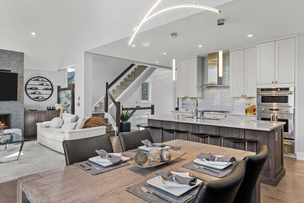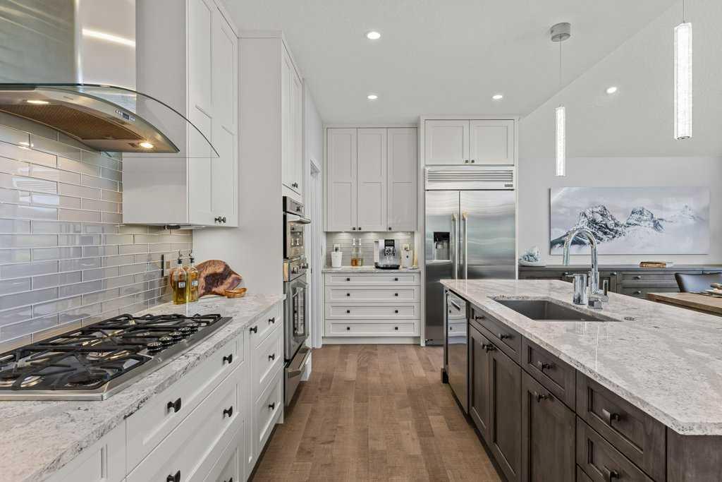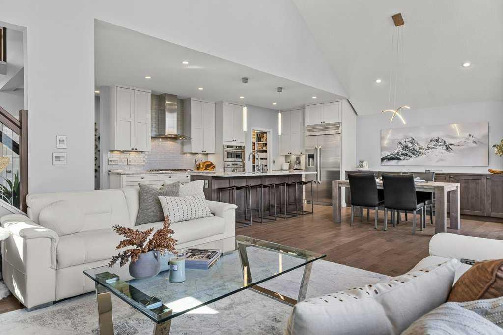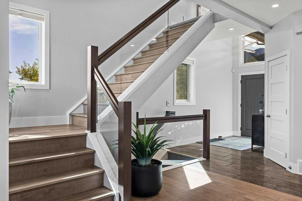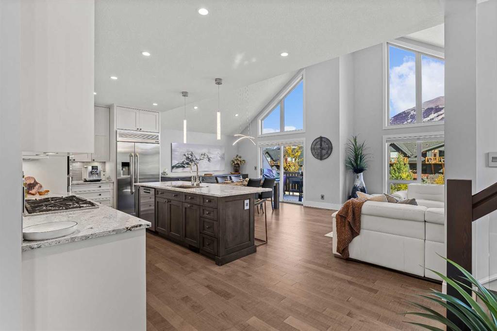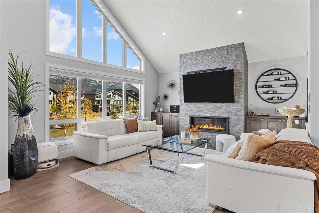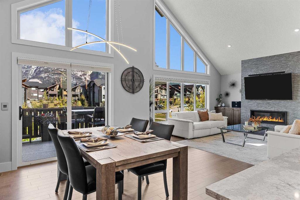Sitting on one of the largest lots in the neighborhood, this home offers 4 bedrooms, 4 bathrooms and over 3000SF. With 360° panoramic views, no expense was spared bringing the backyard retreat to life! Enjoy a blend of low-maintenance hardscaping and lush, vibrant greenspace (complete with 3 zone irrigation and LED lighting). From the sunken firepit with seating for 16 and private hot tub to the BBQ deck off the dining room and seating area with a built in umbrella. Whether it’s BBQs, dinners under the stars, or late-night card games, this backyard is built for every occasion. With vaulted ceilings and wall to wall windows every room was designed to maximize natural light and capture the beauty of the surrounding peaks. The open-concept living/kitchen/dining area is perfect for gathering with Monogram appliances, ample custom cabinetry, a generous walk in pantry and cozy gas fireplace. The walkout basement features a tall ceilings, a thoughtfully designed family room with custom built-ins and a practical fitness or games area, with a heated double car garage ensures parking and storage are never a concern. Set within one of Canmore’s newest and most thoughtfully designed neighborhoods the community places a strong emphasis on walkability and connection to the outdoors. Explore nearby walking and biking trails, playgrounds, parks, and even a disc golf course. Tee off at the world-renowned Stewart Creek Golf Course, just minutes away, or stroll/bike into Downtown Canmore for shops, dining, and events. For added convenience, the Roam Bus provides effortless connections throughout the Bow Valley.