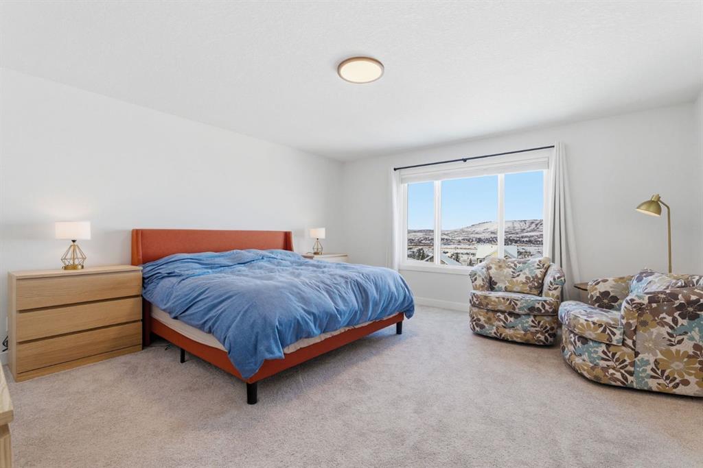 Welcome to this exceptional Sterling Homes-built residence offering 2,726 sqft of refined living space in the desirable community of Rivercrest. This home shows and feels new, thoughtfully designed and meticulously maintained. It showcases quality craftsmanship, elevated finishes, and a level of care that is evident throughout. It is situated at the top of Rivercrest on an extra-large pie-shaped lot with incredible views. A striking open-to-above foyer creates an exceptional first impression, leading into a beautifully appointed and expansive open concept main floor. At the heart of the home is Sterling’s Executive Chef’s kitchen, expertly designed with full-height cabinetry, extensive drawer and cabinet storage, a waterfall island, premium appliances (including an induction cooktop and LG Smart refrigerator), a Silgranit sink, and a walk-in pantry—blending everyday function with upscale design. The open-concept living and dining areas are ideal for entertaining, with extra large windows and 8’ sliding patio doors that invite in natural light and connect seamlessly to the views of Cochrane. The main floor is complete with a private office and a highly functional mudroom featuring custom built-ins, a walk-through pantry, and an extra-large walk-in closet. Upstairs, a very generous vaulted bonus room provides an elegant retreat, while 4 spacious bedrooms offer flexibility for families of all sizes. The primary suite is a true sanctuary, capturing stunning views of Cochrane. It is complemented by a luxurious 5-piece ensuite with dual vanities and extra drawer space for storage, a tiled walk-in shower with dual shower heads, soaker tub, a private water closet, and a generous walk-in closet. A 4-piece bathroom and a full-size laundry room with Samsung SmartThings Washer and Dryer, upgraded with risers finish off the 2nd level. This home is rich in upgrades, including smart home lighting controls, a dual-zone furnace system, air conditioning, tankless hot water, custom up/down blinds, upgraded lighting fixtures, and an extra-wide staircase, all contributing to enhanced comfort and efficiency. The walk-out basement presents excellent future development potential. Built by a reputable and trusted builder known for quality and energy efficiency, this home offers not only beautiful design but lasting value. This is an outstanding opportunity to own a high-quality, move-in-ready home that is next to new in the up and coming community of Rivercrest. This community will be getting a new elementary school in the next year and is a short commute to Calgary or quick escape to the mountains.