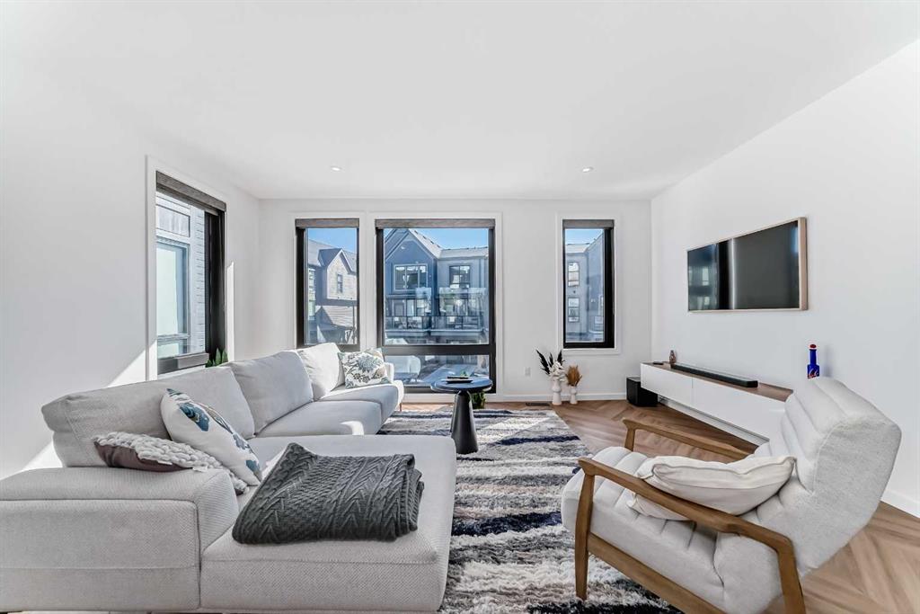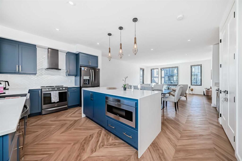 Welcome to Pivot at Rutherford, Averton’s award-winning townhouse community offering the perfect balance of modern design and low-maintenance living. This beautifully upgraded End unit has 3-bedroom home features 1,861 sq. ft. of thoughtfully designed space, along with a rare tandem 4-car garage 19 feet wide by 31.5 feet deep —ideal for vehicles, motorcycles ,storage, or a home gym. The main level impresses with floor-to-ceiling windows, front facing East for early morning sun and West facing back for sunsets. An open-concept layout, and a stunning kitchen complete with Quartz countertops, oversized island, and premium stainless steel appliances. Very spacious living and dining areas, vinyl flooring, and contemporary finishes throughout, creating a bright and inviting atmosphere. Upstairs, you’ll find a well-appointed primary retreat with a 4-piece ensuite, along with two additional bedrooms and another 4 piece bath convenient upper-level laundry. Thoughtful upgrades include blackout blinds on the main and upgraded blinds in all bedrooms, upgraded lighting, mirrors, and designer feature walls. One of the home’s standout features is the expansive rooftop patio, offering over 650 sq. ft. of outdoor space across the top levels—perfect for entertaining or enjoying some of Edmonton’s most beautiful sunsets. Backing onto a forested area with walking trails, this home provides a rare sense of privacy and connection to nature. This one of only 3 units that running path accessibility. Located just minutes from schools, parks, shopping, and transit, and within walking distance to a newly developed hockey rink, this property combines urban convenience with a serene setting. Don’t miss your opportunity to own this exceptional home in one of Edmonton’s most stylish and sought-after communities.