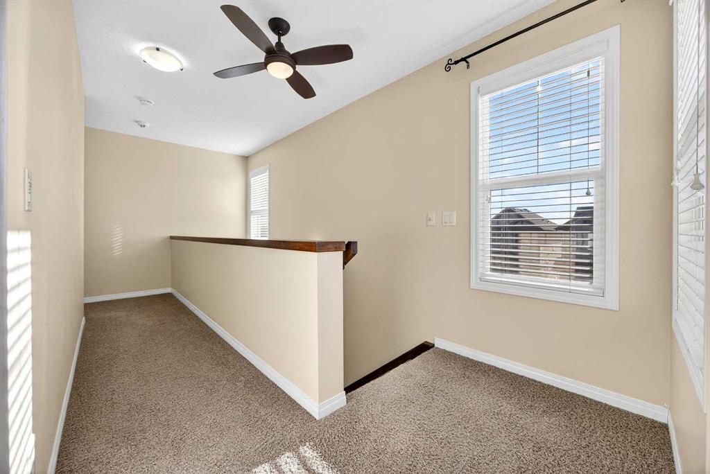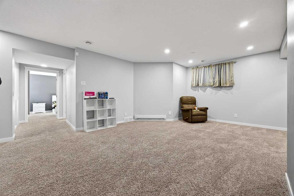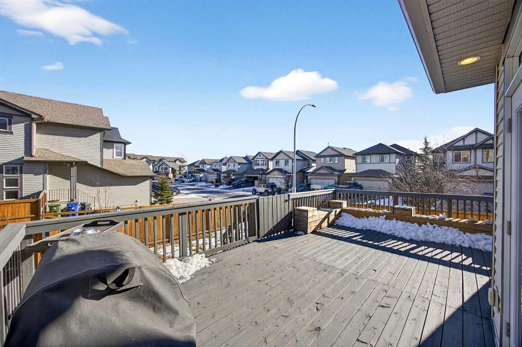 Nicely situated on an interior corner lot (i.e. loads of parking) within a no-through cul-de-sac, this pristine 4-bedroom + main floor den home offers unbeatable value in Heritage Hills. Main floor features a bright/welcoming front foyer, large functional kitchen with stainless steel appliances/granite counters/island/breakfast bar/pantry, spacious living room with feature gas fireplace/tasteful built-ins, den, 2-piece powder room and large mudroom off double attached garage. Upper level houses a substantial primary bedroom (13' X 18') with walk-in closet/full ensuite, 2 additional bedrooms, main bathroom and oversized laundry room. Lower level is fully developed to include a spacious family room, bedroom and bathroom. Upgrades include richly stained millwork, wrought-iron rails & nine-foot ceilings on main. Gargantuan 14' X 23' freshly painted deck to fully landscaped/fenced yard; complete with an interlocking firepit pad and walkway. Steps to amenities (i.e. Anytime Fitness, Coop liquor, pharmacy, Pizza 73 and dentist), public transportation and parks.