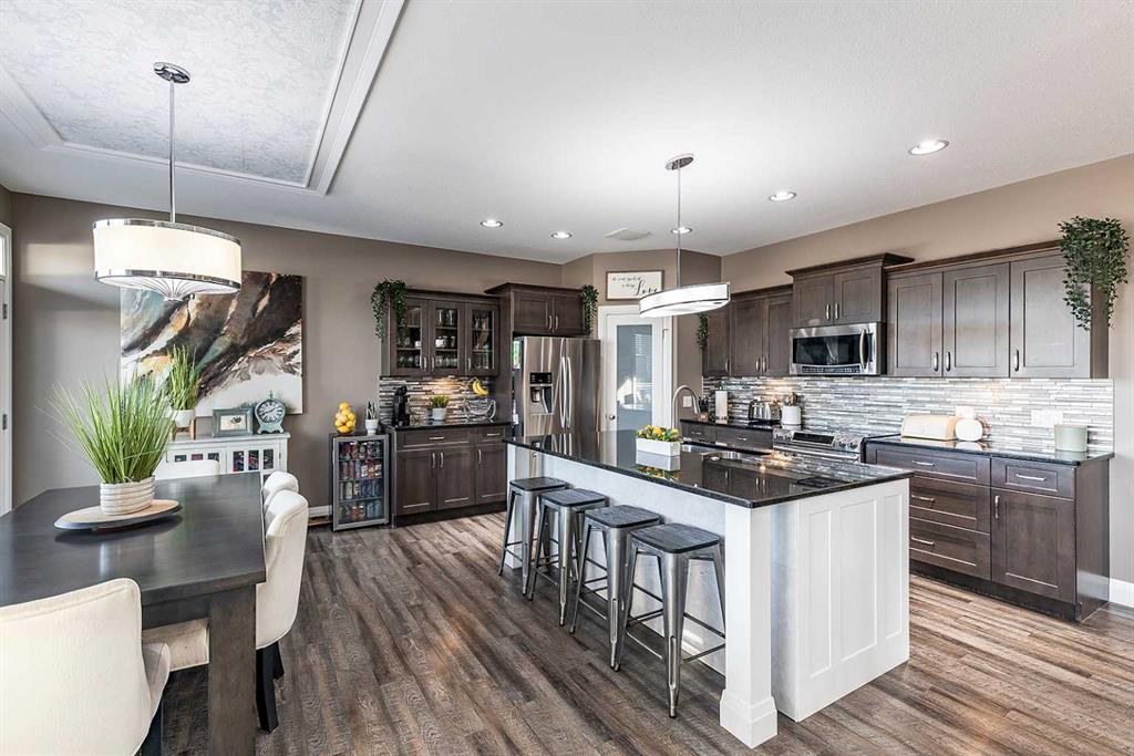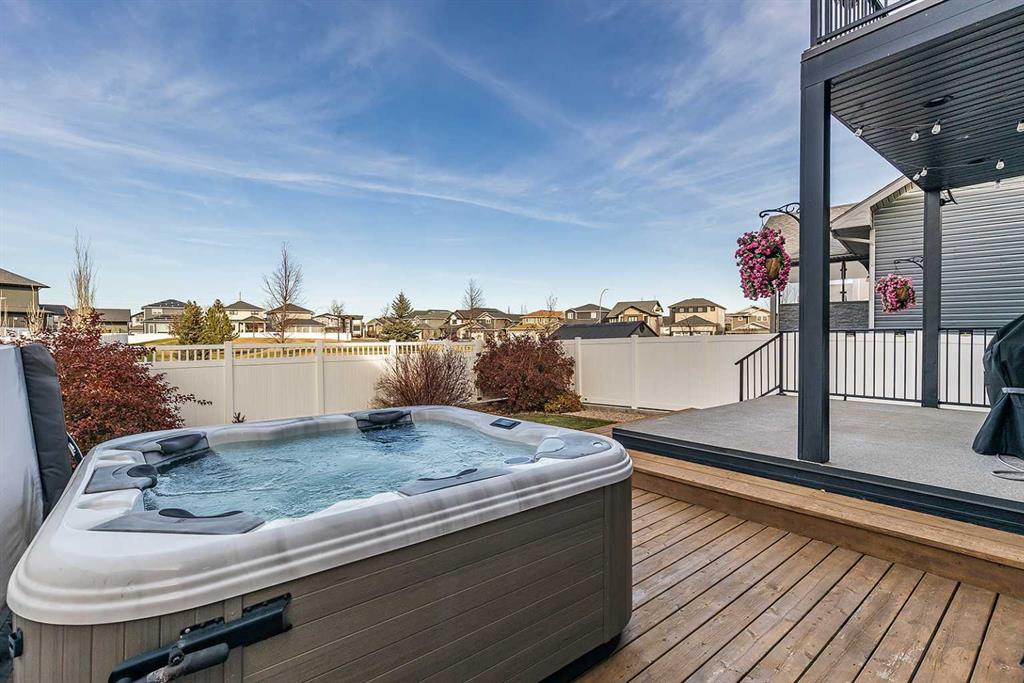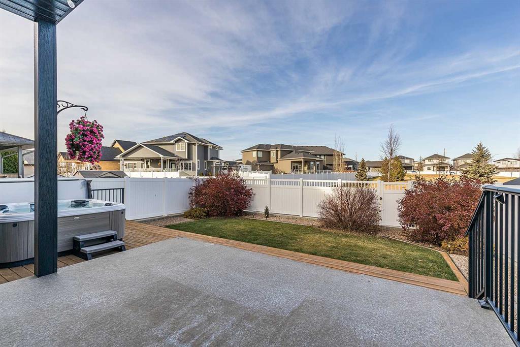 Perfectly positioned in a great neighbourhood, 46 Sterling Link combines refined design with the warmth of a true family home. From the moment you arrive, the curb appeal stands out with stone accents, a triple attached heated garage, and a spacious driveway. Inside, you’re greeted by a bright, open-concept layout that balances everyday comfort with thoughtful design. The entry leads into a custom maple kitchen featuring granite countertops, a large island with bar seating, stainless steel appliances, and a walk-through pantry that connects to a practical mudroom with built-in lockers and main floor laundry. The dining and living areas are filled with natural light from large windows overlooking the professionally landscaped yard, complete with a tiered deck, hot tub, and both covered and open areas to relax or entertain. Upstairs, an open staircase leads to a generous bonus room — the perfect spot for family movie nights or a cozy retreat. Double French doors open to a beautiful primary suite with a private balcony overlooking a green space, a large walk-in closet with built-in vanity, and a luxurious 5 pc ensuite. Two additional spacious bedrooms and a full bath complete the upper level. The fully finished basement adds even more living space, with a rec room, wet bar with dishwasher and bar fridge, a fourth bedroom, a full bathroom and plenty of storage space. This home’s details make it truly stand out: high-end finishes, dual-zone heating, built-in features that add both function and beauty. Located close to parks, schools, walking paths, and shopping, this home offers an exceptional lifestyle in a family-friendly community.