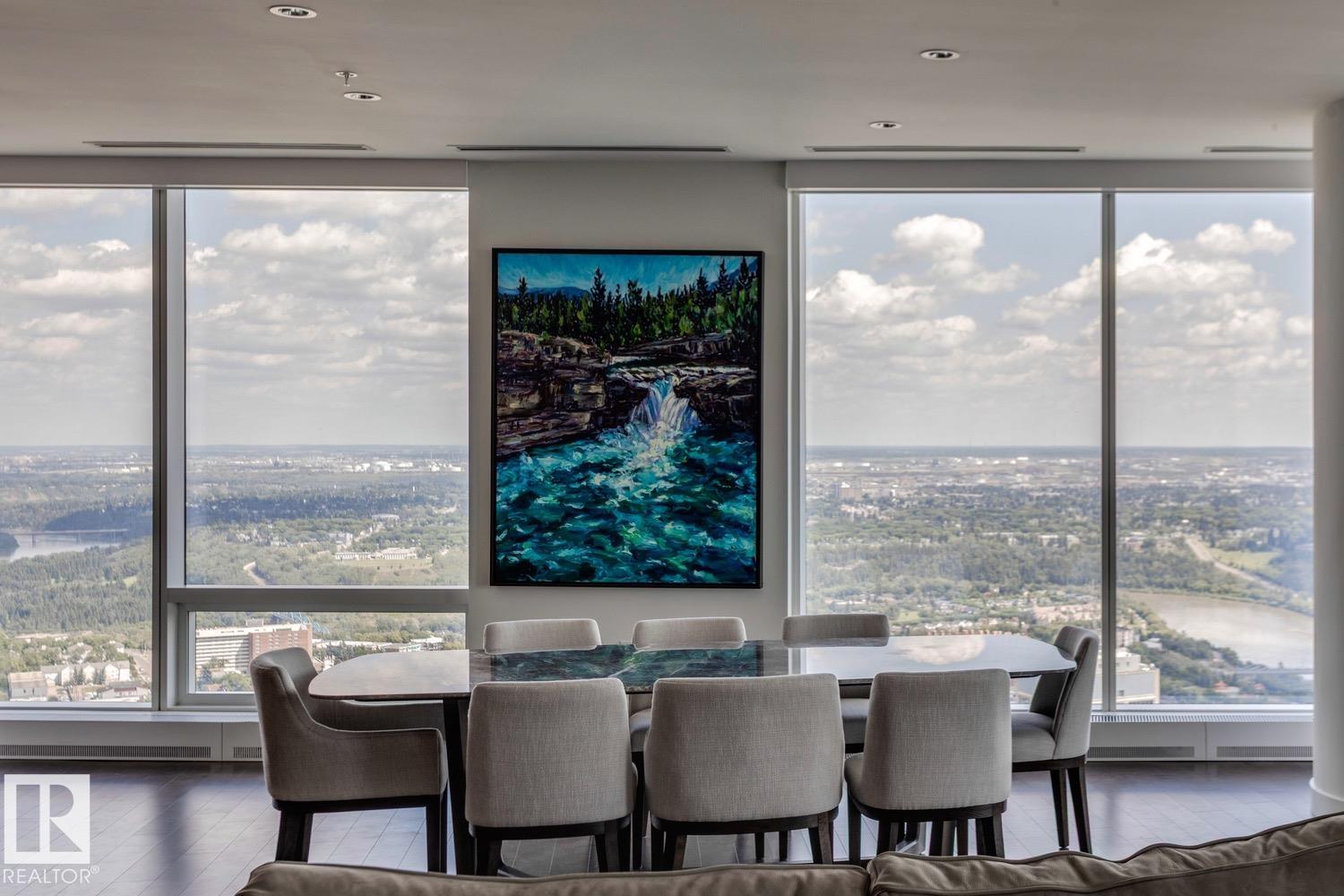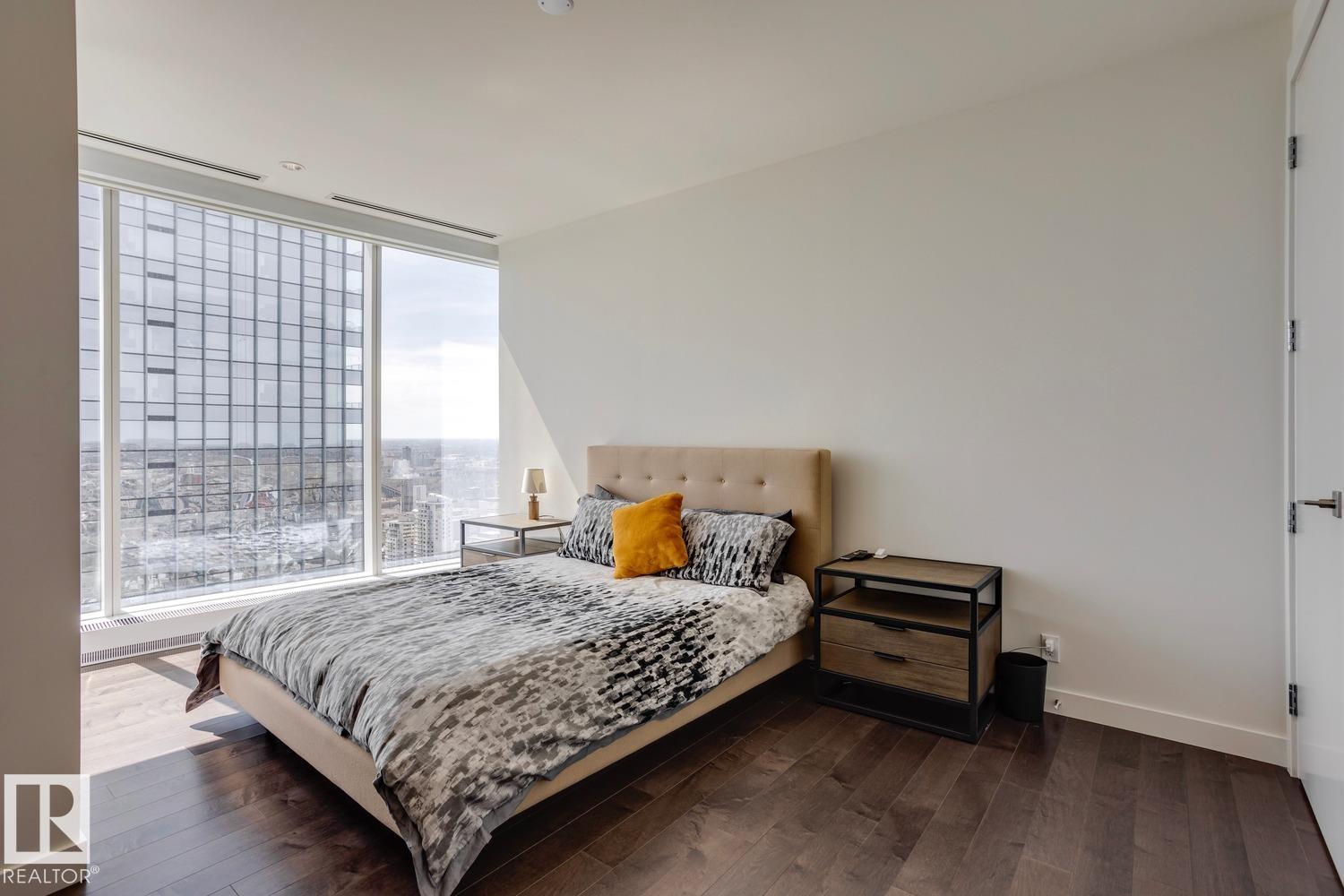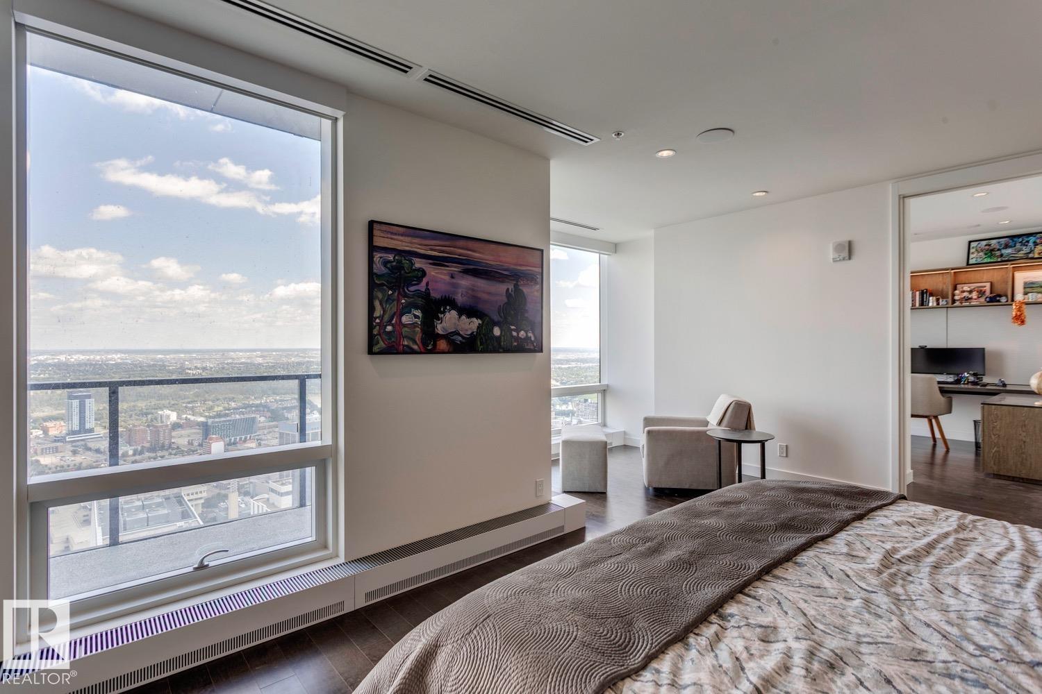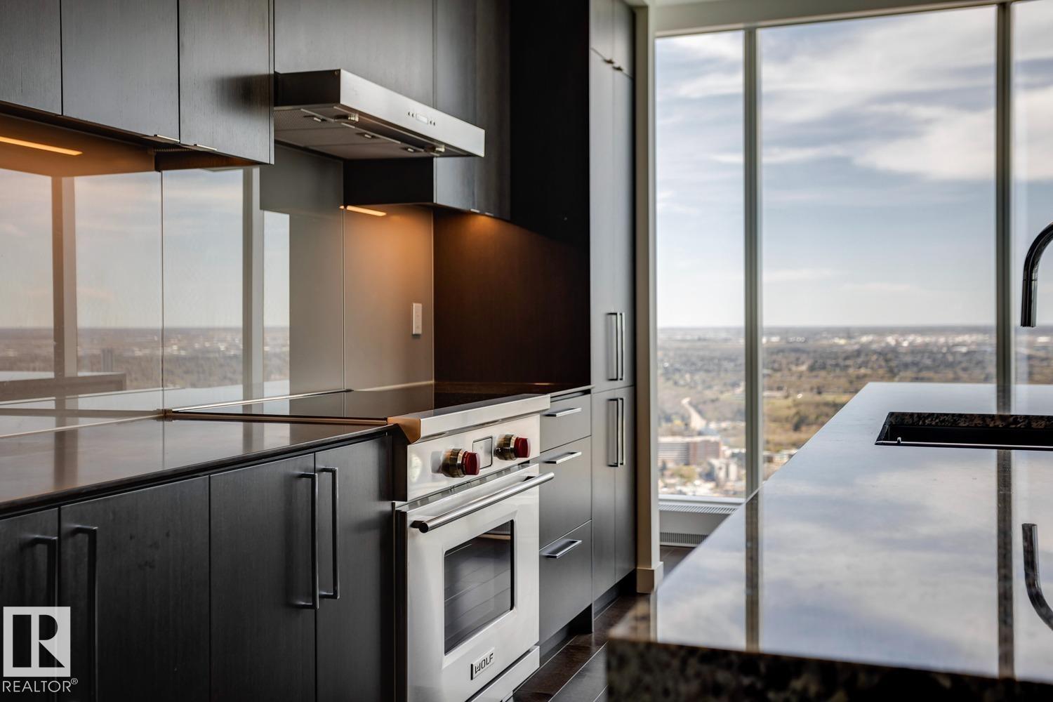 Welcome to Legends Private Residence, Suite 4602 – an ultra-luxurious 3-Bedroom + 4 Bathroom design, over 2,600 sq.ft! An exciting opportunity at the tower’s largest South-East footprint, which offers panoramic river + city views and 3 private balconies. The modern kitchen offers an oversize island, walk-in butler’s pantry, wet-bar, wine fridge, integrated appliances, and induction cook-top. Favorite features include extensive millwork throughout: an expansive media wall, high-grade built-in furnishings, a ‘grand office' with console, custom closets and spacious laundry room, each with quartz surfaces. In-suite automation includes motorized shades, built-in speakers with SONOS system and lighting controls. Residents enjoy exceptional amenities: indoor pool, hot tub, ARCHETYPE Fitness Facility, 24/7 concierge service, roof patio access with BBQs, comfortable seating and pet walk area. Plus the convenience of ICE District's central location, with pedway access to Rogers Place, the financial core, + more!