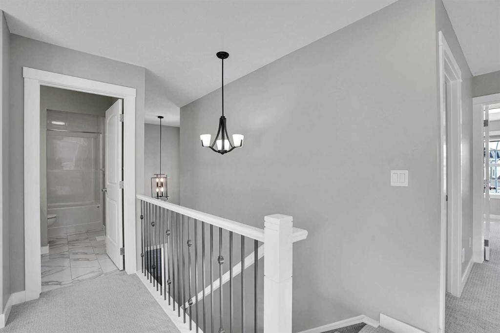 Two-story house BACKS ONTO A POND AND WALKWAYS. WALK OUT BASEMENT. SIX bedrooms. THREE kitchens. On the main floor, you’ll find a spacious living room complete with an electric fireplace. The living and dining areas offer tranquil views of the pond and green space at the rear. The open kitchen is equipped with a large breakfast countertop, an electric cooktop, a built-in oven and microwave, as well as cabinets that extend to the ceiling. This level also has a half bath, an office and a NICE ADDITIONAL SPICE kitchen. On the upper floor, the master bedroom boasts a five-piece ensuite bathroom, along with three additional bedrooms and another full bath. A study area with a long table is conveniently located between two of the bedrooms. Laundry facilities are also on this level. For family gatherings, there is a generously sized bonus room that with built-in shelves for entertainment equipment. The walk-out basement has an ENCLOSED SUITE (illegal) which includes two bedrooms, a full bath, a BRAND NEW KITCHEN, a spacious family room and a SEPARATE LAUNDRY area. 9’ CEILINGS on main floor and basement. Outside, there is a patio located underneath the deck, and concrete steps on both sides of the house. The pond at the rear offers walking paths where you can enjoy peaceful strolls. This home is also equipped with CENTRAL AIR, KINETICO water softener & water filters. Easy access to Stony Trail and Deerfoot Trail, being just eight minutes from the airport. Spacious, well designed with nature behind, this property offers a convenient and relaxing home for the next owners!