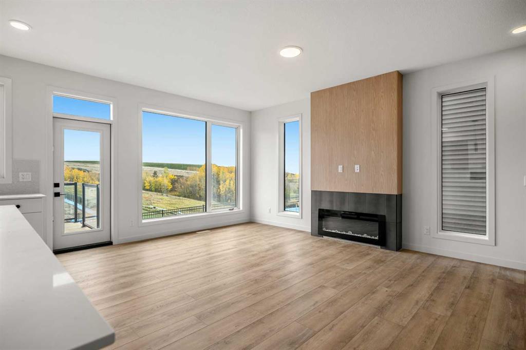 Cantiro Showhomes open Saturday & Sunday, noon to 5 PM. Welcome to this Beautifully Designed Home created for modern family living. The spacious dining area comfortably seats 12 OR MORE PEOPLE, providing the perfect setting for both intimate dinners and large family gatherings. The thoughtfully designed kitchen invites shared meal preparation, turning everyday cooking into an enjoyable experience at the heart of the home. A versatile MAIN-FLOOR DEN offers flexibility and can be easily transformed into a dedicated homework area or a welcoming guest room. Upstairs, two generously sized bedrooms provide quiet retreats ideal for study or relaxation. The expansive PRIMARY SUITE serves as a private sanctuary, offering a peaceful escape where self-care takes center stage. This home is filled with impressive details, including sleek HORIZONTAL ALUMINUM RAILINGS WITH CLEAR GLASS, an elegant ELECTRIC FIREPLACE that anchors the living space, SOARING 9FT FOUNDATIONS, and a desirable location BACKING ONTO THE ENVIRONMENTAL RESERVE. Every Cantiro Home is equipped with modern comfort and efficiency in mind, featuring a TANKLESS WATER HEATER, TRIPLE PANE WINDOWS, and SMART HOME FEATURES such as a SMART THERMOSTAT, DOORBELL CAMERA, KEYLESS DOOR LOCK, and WIFI-CONNECTED GARAGE DOOR OPENER. There is still time to make this home uniquely your own. CHOOSE FROM A SELECTION of designer-curated interior color collections to perfectly match your personal style and vision. The West Hawk community is thoughtfully designed around 27 ACRES OF SLOPING ENVIRONMENTAL RESERVE, preserving native wildlife habitats while offering residents scenic viewpoints, rest areas, and a network of WALKING TRAILS AND RAVINE CROSSINGS. These natural features are integrated into Bike Cochrane’s exclusive bike network, providing residents with seamless access to the outdoors. Future community enhancements in Phases 2 and 3 include an OFF-LEASH DOG PARK and a PLAYGROUND, both expected to be completed by early fall 2025. Over 50% of the homes in West Hawk are strategically positioned to back onto key amenities such as the Environmental Reserve Ridge, the future dog park in the northeastern corner, and the planned Tot Lot along Heritage Boulevard. A FUTURE K–9 SCHOOL SITE will further enhance the family-friendly atmosphere and contribute to the exceptional quality of life for residents. Don't miss your chance to view this beauty today!
