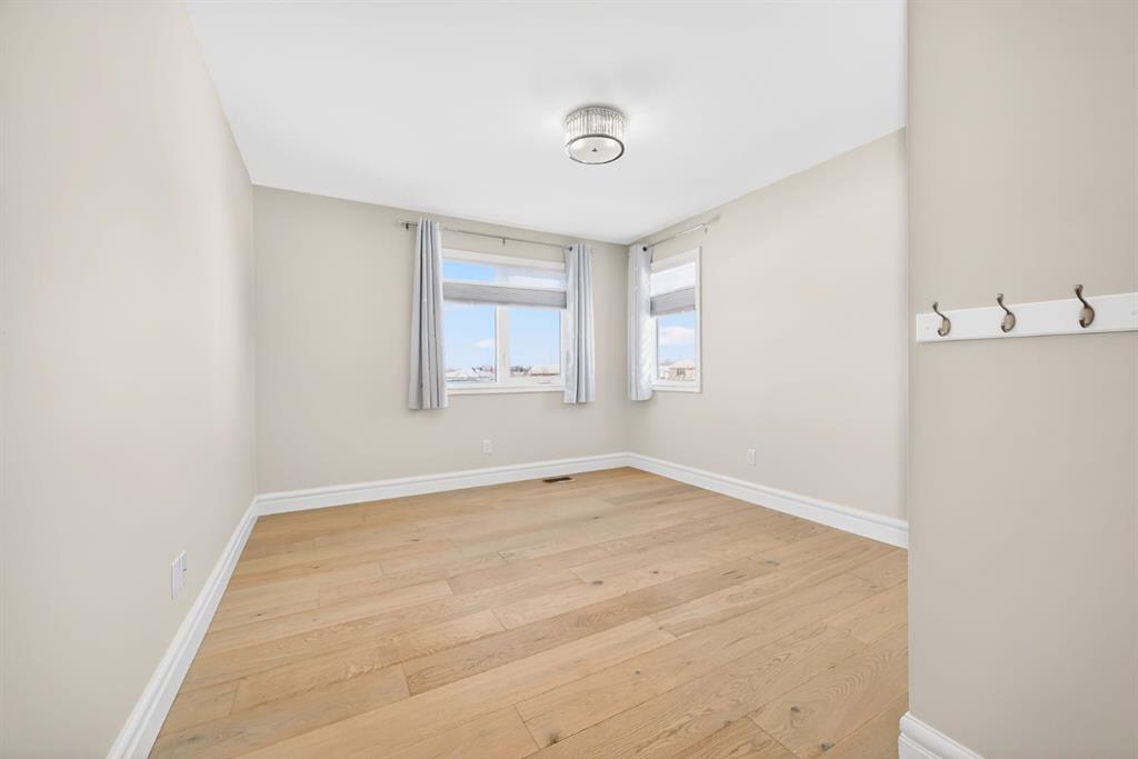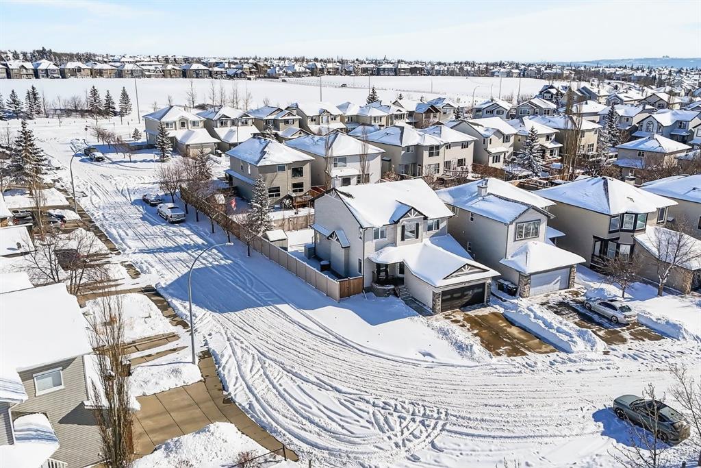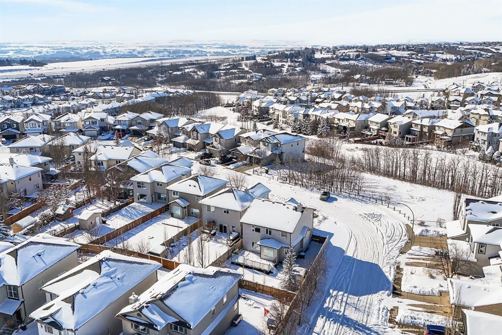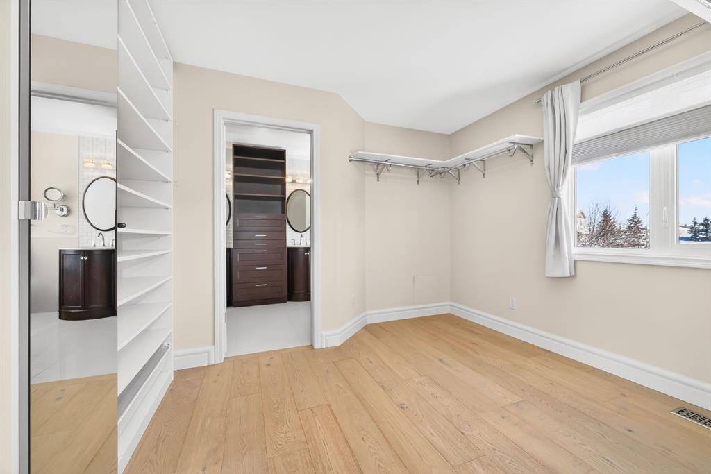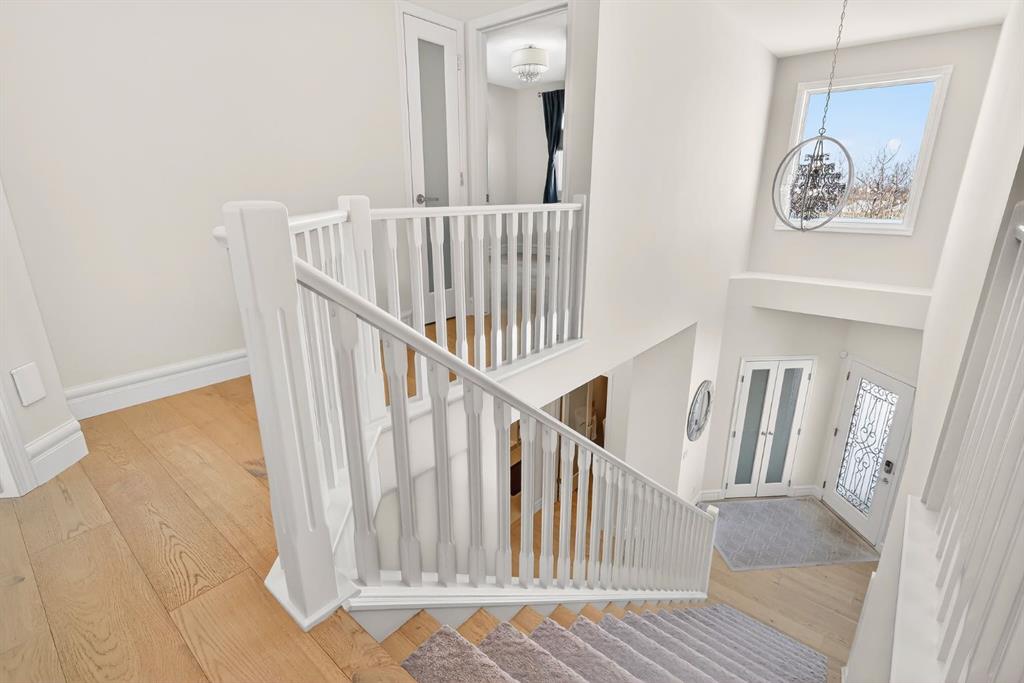 Welcome to 47 Rockywood Park NW — a beautifully upgraded family residence positioned on a desirable corner lot with green space and walking paths directly across the street. Offering mountain views from the upper level and 3 fully developed levels of refined living space, this home blends thoughtful design with extensive modern upgrades. The main level features 9’ ceilings, engineered hardwood flooring, crown mouldings, upgraded doors and hardware, and a stunning gas fireplace with full-height vertical stone facing. The kitchen is both elegant and functional, showcasing full-height cabinetry, granite countertops, a substantial island with built-in table, stainless steel appliances including a Bosch dishwasher, built-in Miele espresso machine, beverage cooler, filtered water outlet, corner pantry, and under-cabinet lighting. Upstairs, the primary retreat impresses with French doors, a walk-in closet, and an expansive custom walk-through dressing area with built-ins. The luxurious 5-piece ensuite offers heated tile flooring, dual vanities, central storage island, soaker tub, and a multi-jet shower tower. Two additional generously sized bedrooms, an updated 4-piece bath, and mountain views complete the upper level. The fully developed lower level provides exceptional versatility with a large recreation area, wet bar with filtered water and full-size bar fridge, wine storage space, fourth bedroom, hobby/play room, and spacious heated 4-piece bathroom. Significant upgrades include brand new triple-pane windows with transferable 25-year warranty, central air conditioning, high-efficiency furnace, 2022 hot water tank, drip humidifier, central vacuum rough-in, WiFi-enabled thermostat and keypad locks, security system, and doorbell cameras. The finished & insulated double attached garage features epoxy flooring, storage solutions, newer garage door and opener, and 240V EV charging capability. A fully fenced and landscaped yard, large deck with privacy glass and gas line, and inviting front porch complete this exceptional offering.